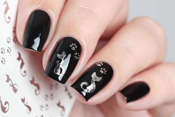 Черная кошка сулит несчастья. . . Одно сложно отрицать: миниатюрная кошечка угольной расцветки однозначно привлечет всеобщее внимание к вашему необычному маникюру!