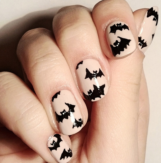 Маленькая летучая мышка украсит ваш маникюр и добавит вампирской нотки в образ. Такой рисунок можно использовать и на нейтральный базовый фоновый цвет.