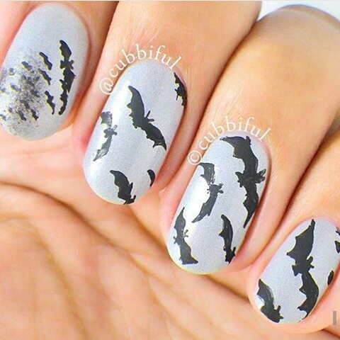 Летучая мышь-обязательный атрибут вампирской тематики. Включите ее в сюжет о графе Дракуле, изображенном на вашем маникюре.