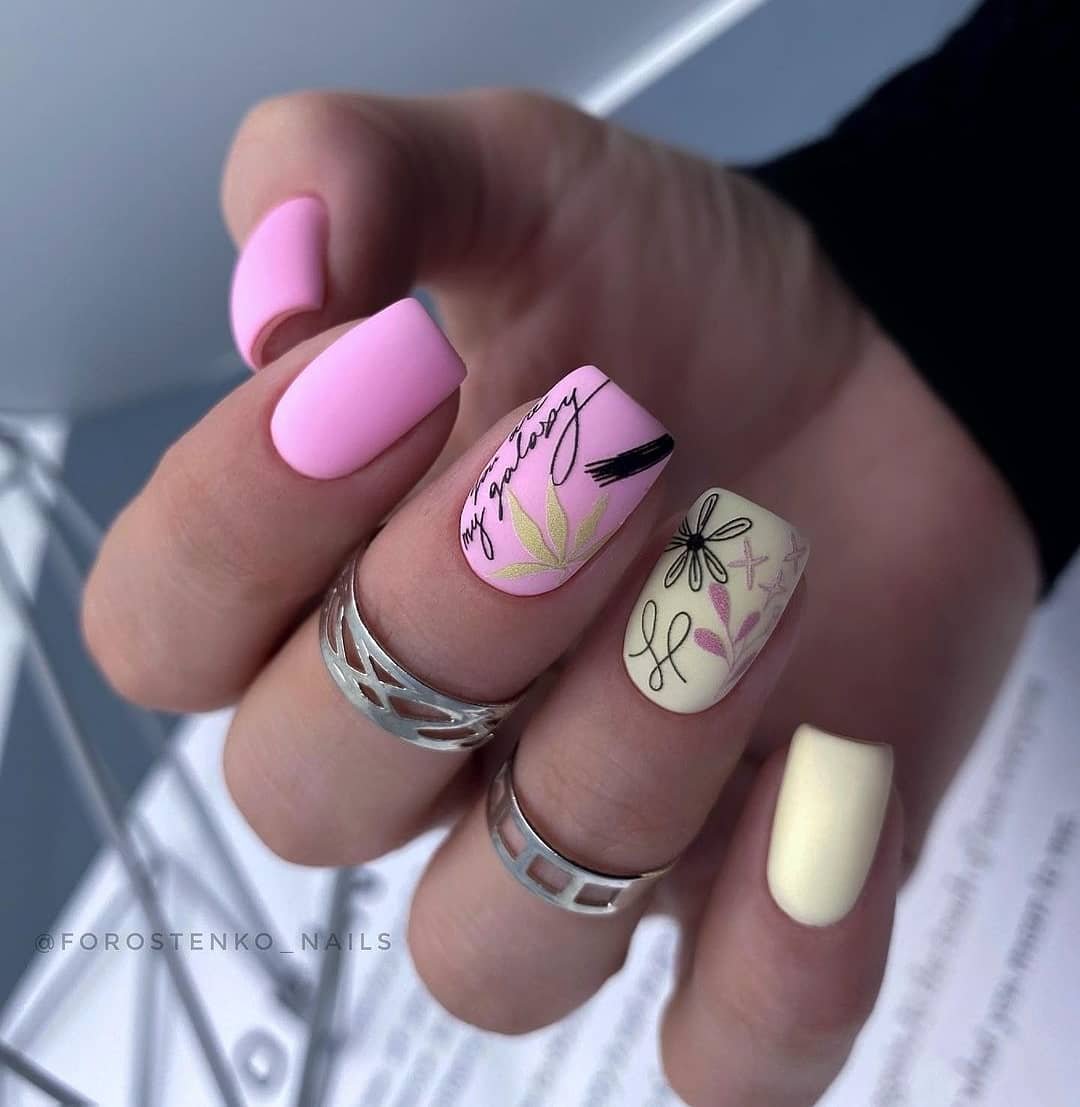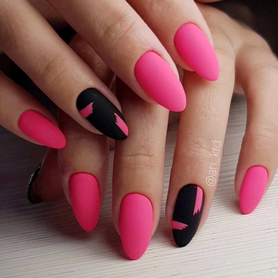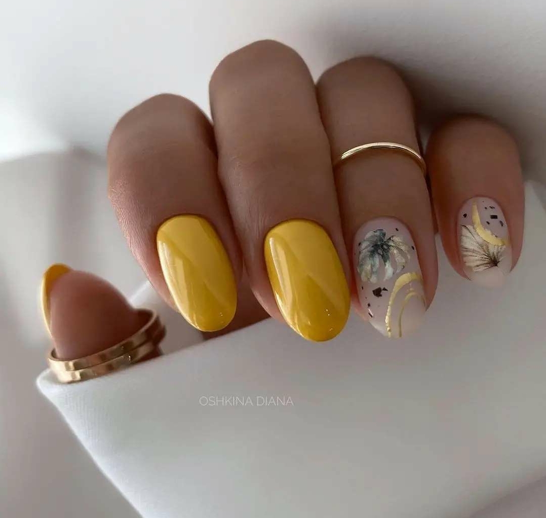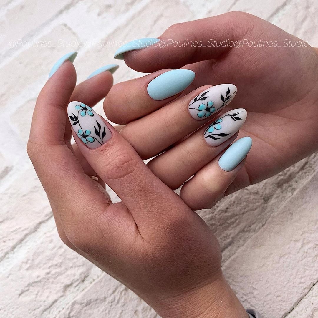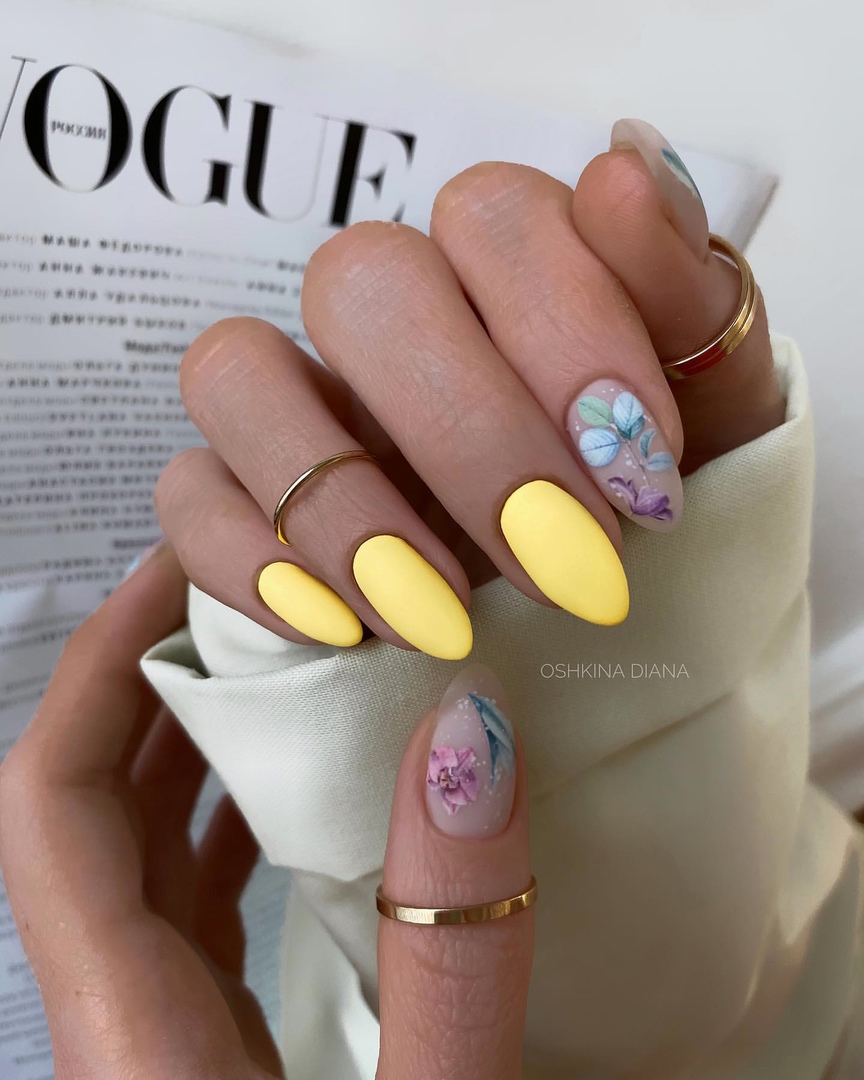 Этот дизайн — огромное поле для фантазии и экспериментов. одну руку можно оформить в сдержанном стиле, а вторую в «хулиганистом». Другой вариант — сочетание однотонного и цветочного маникюра, глянцевого и матового. Вообщем, фантазируйте, ограничений здесь нет.