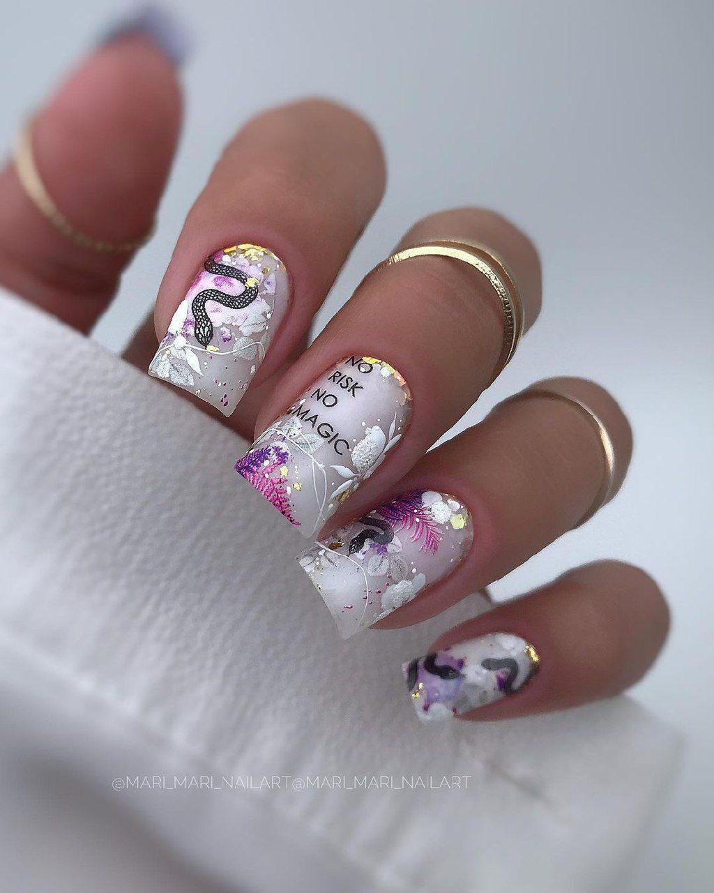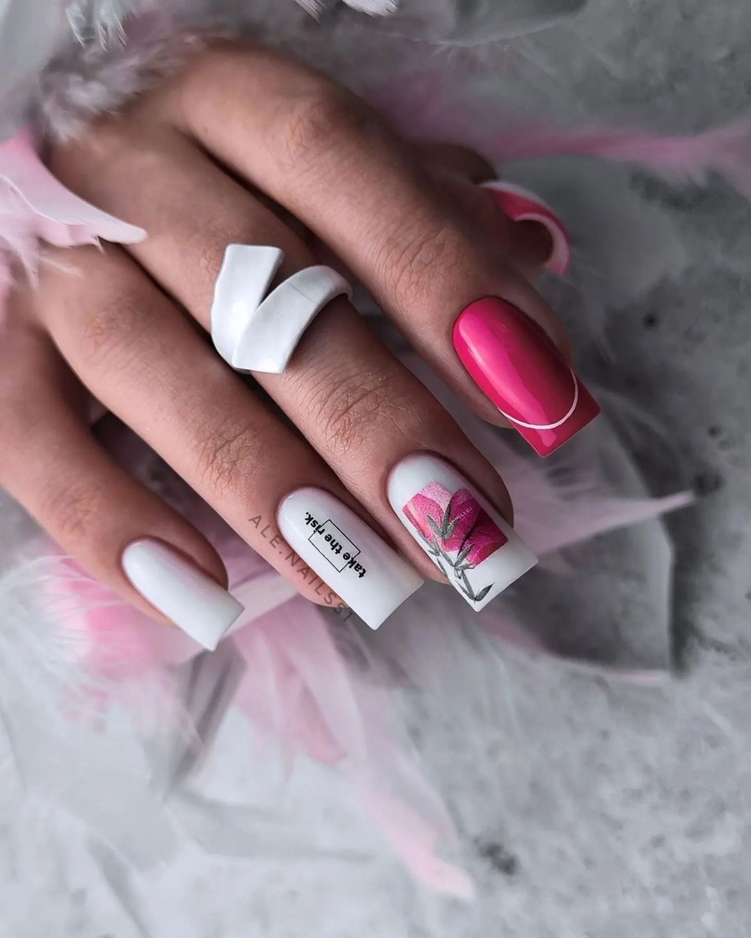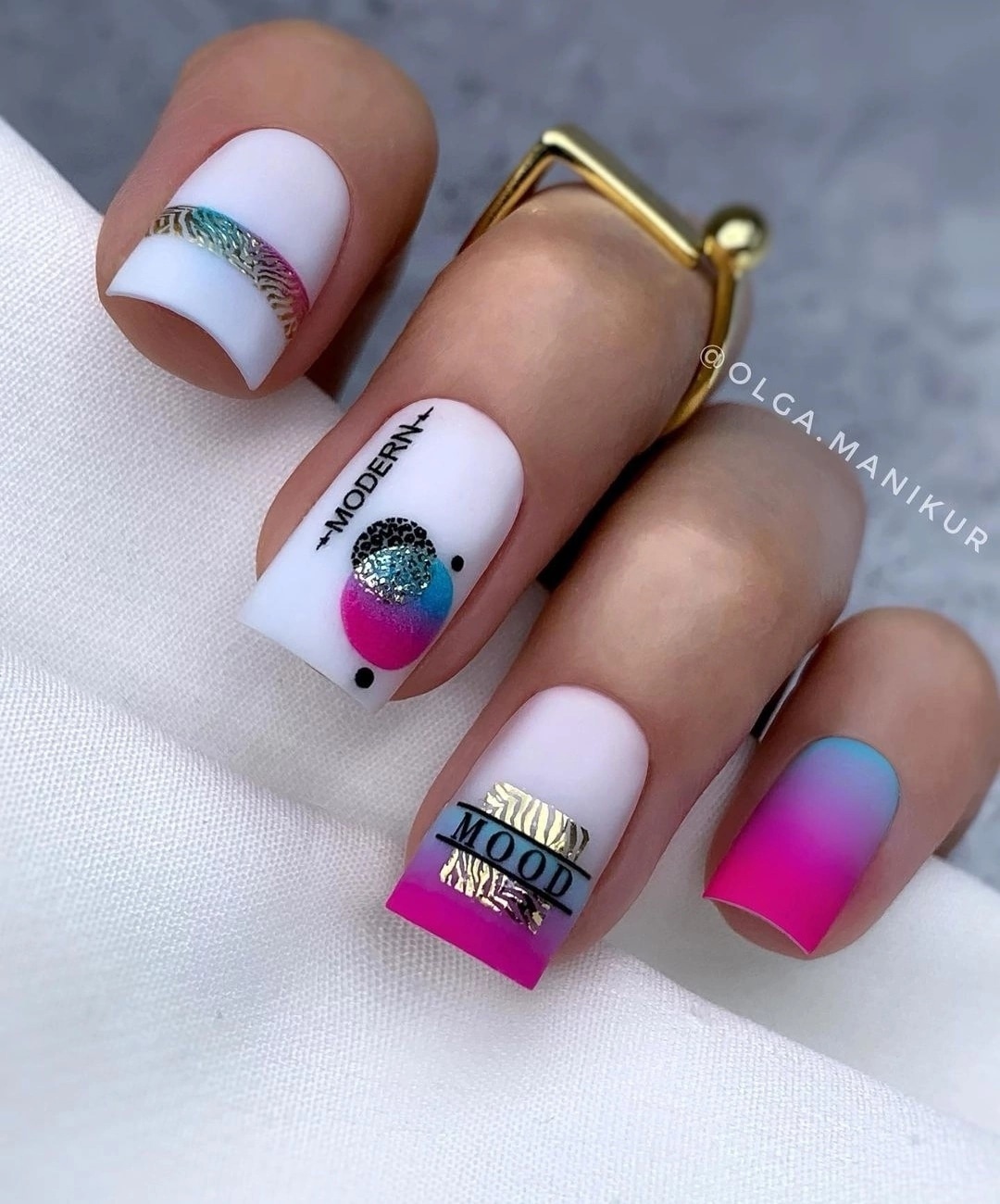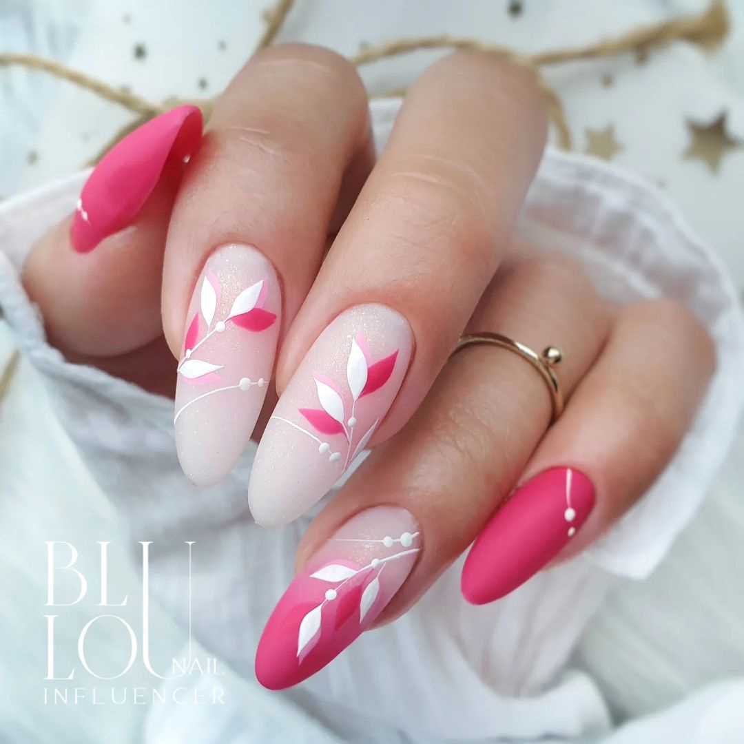 Этот дизайн — огромное поле для фантазии и экспериментов. одну руку можно оформить в сдержанном стиле, а вторую в «хулиганистом». Другой вариант — сочетание однотонного и цветочного маникюра, глянцевого и матового. Вообщем, фантазируйте, ограничений здесь нет.