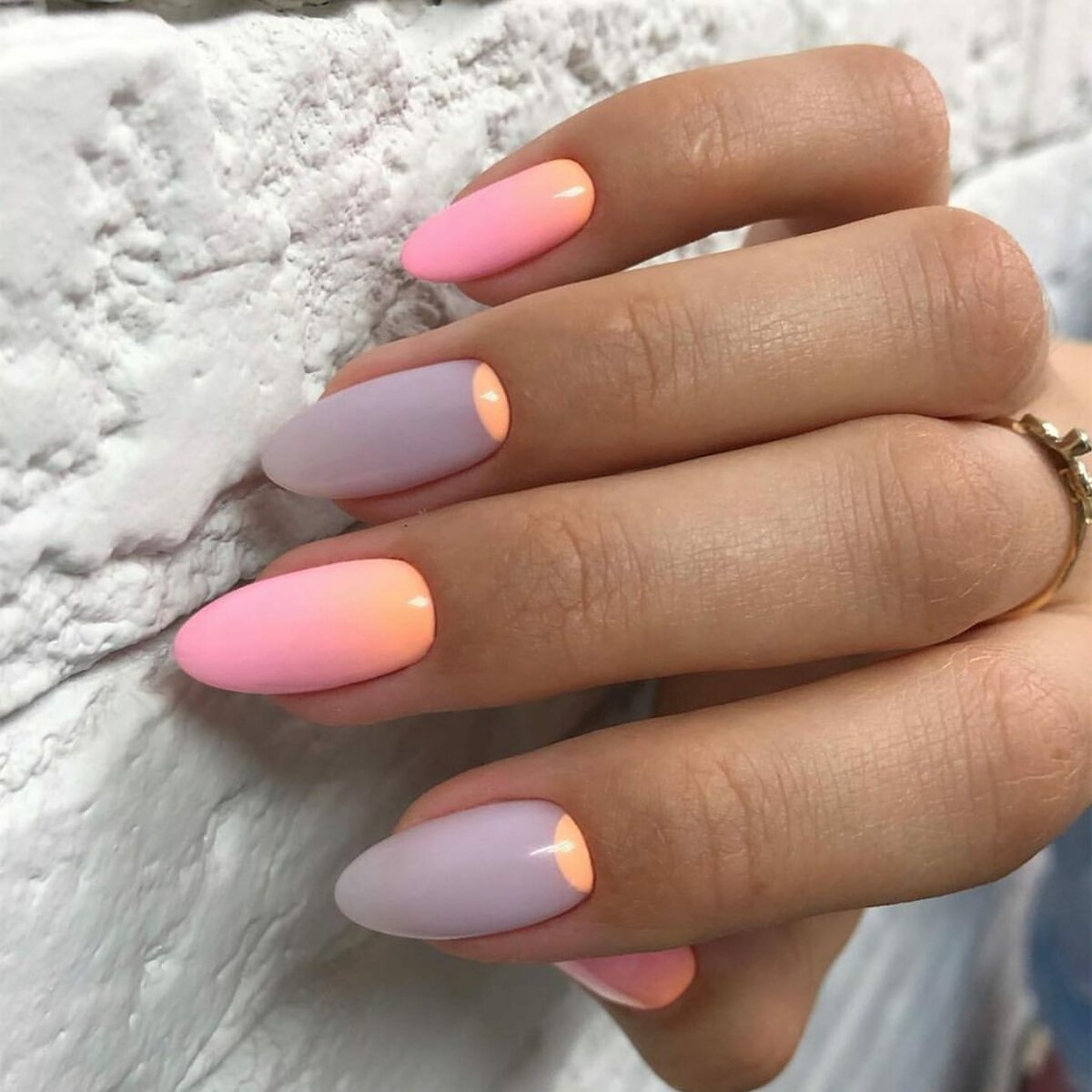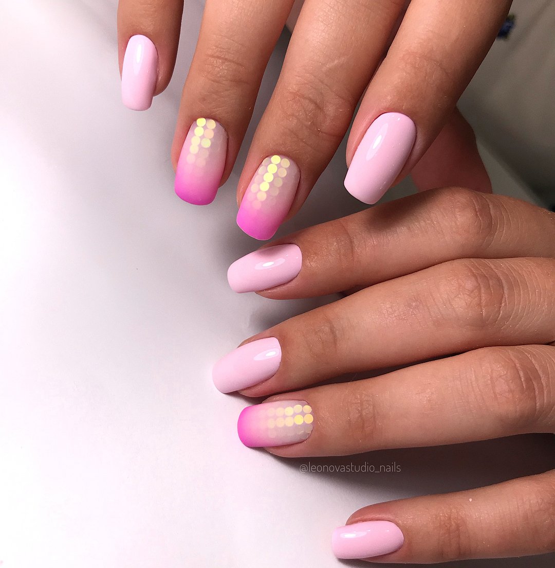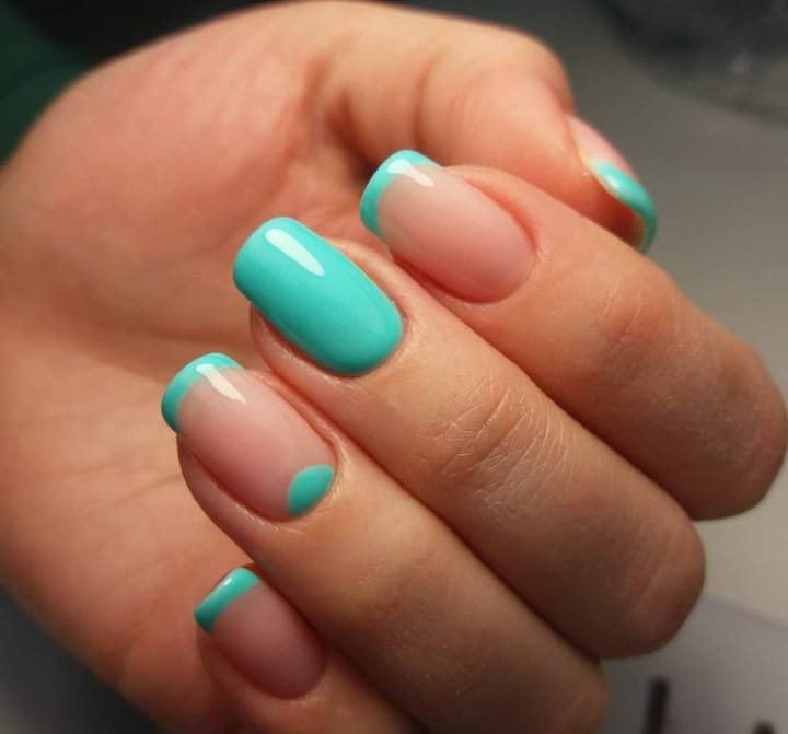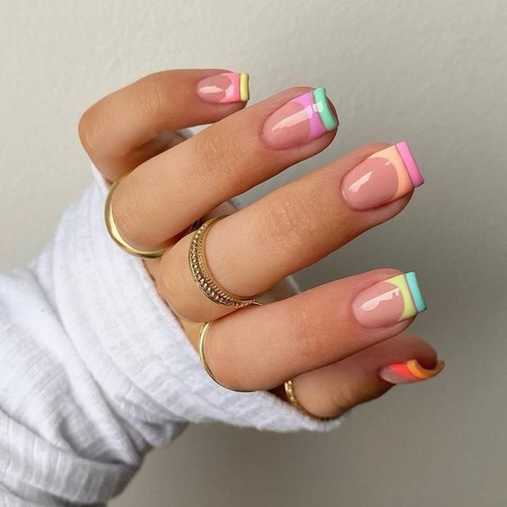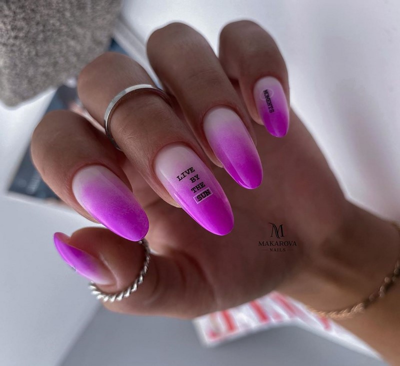 Если вы из тех, кто не может определиться с цветом для июльского маникюра, рассмотрите технику омбре. Это плавные переходы цвета. По желанию ваш мастер может использовать всего два или гораздо больше оттенков. растяжку можно сделать не по каждому ногтю, а «по руке». То есть мастер окрасит каждый ноготь в свой цвет, а все вместе создаст эффект градиента или омбре.