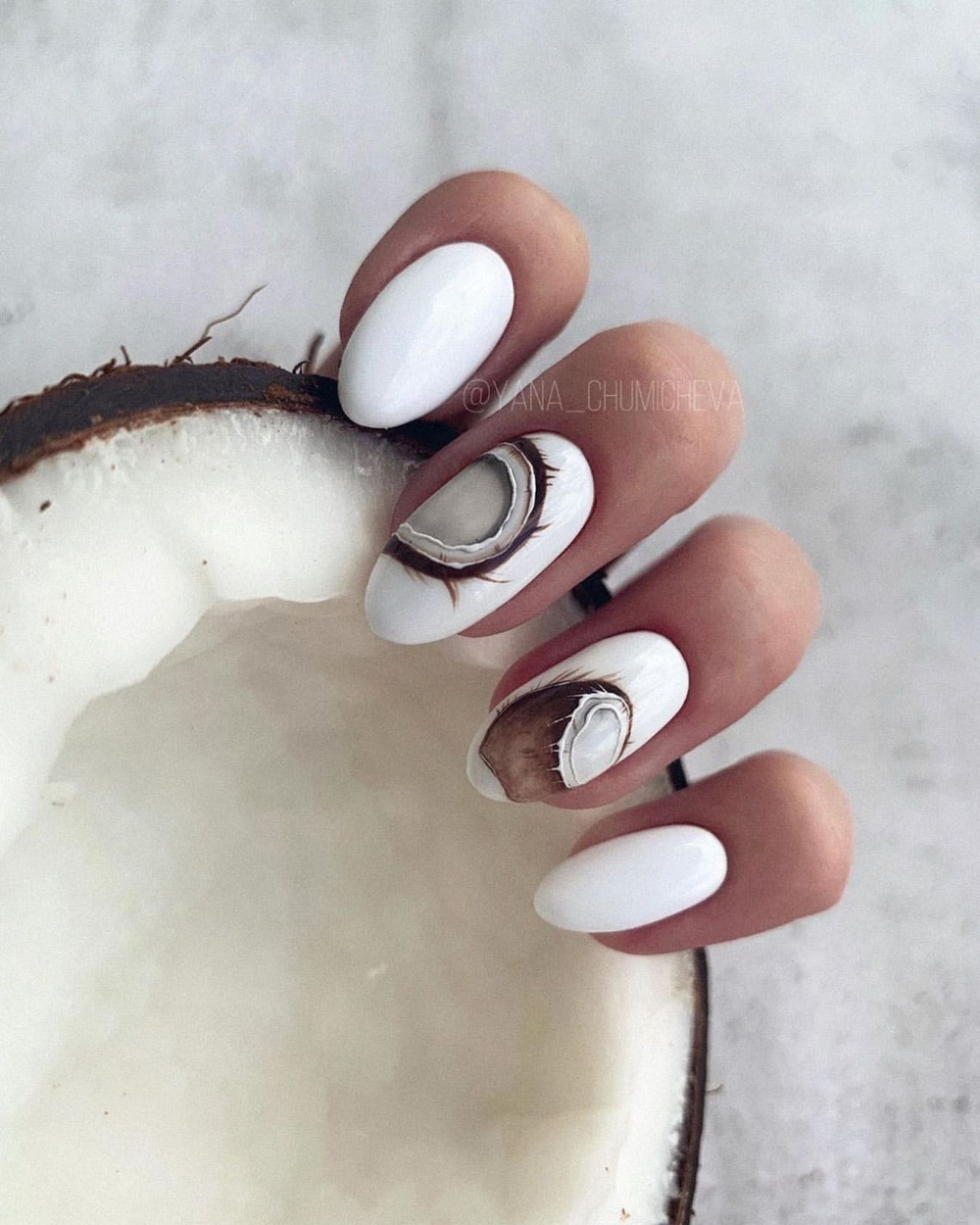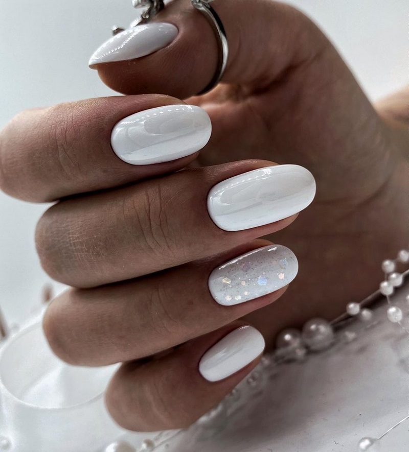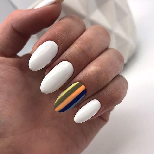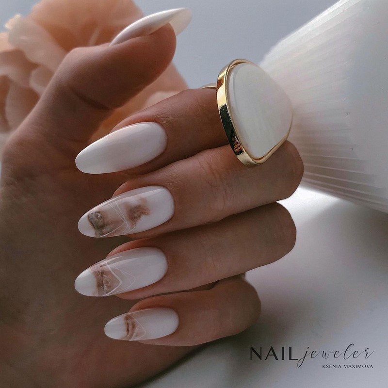 Белый — оттенок на все сезоны. Но для маникюра в июле мы рекомендуем выбирать полупрозрачный белый — молочный. Такая база подходит для тех, у кого на работе строгий дресс-код или тех, кому сложно определиться с ярким цветом.