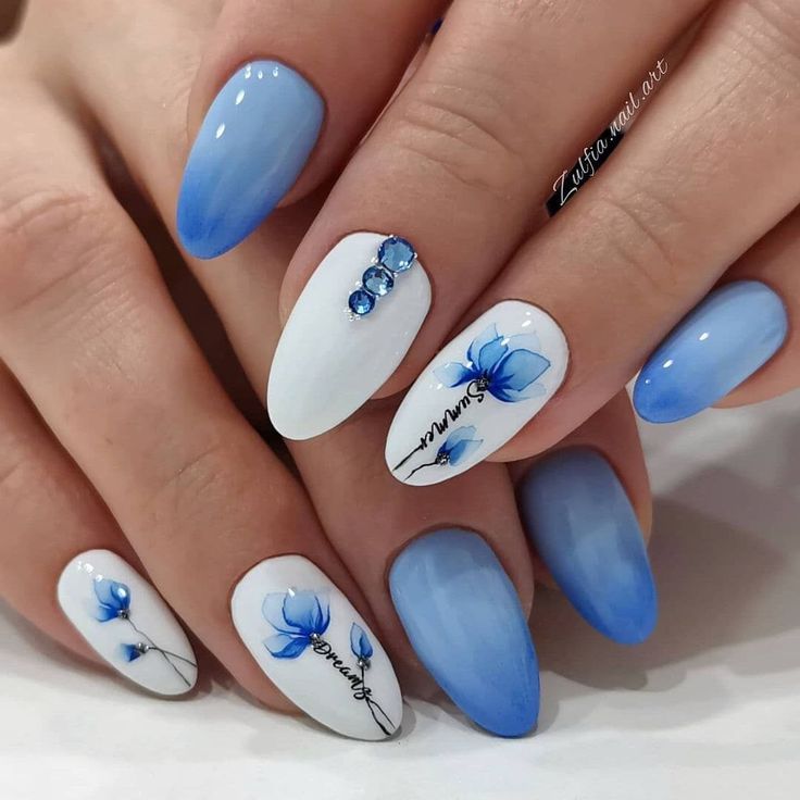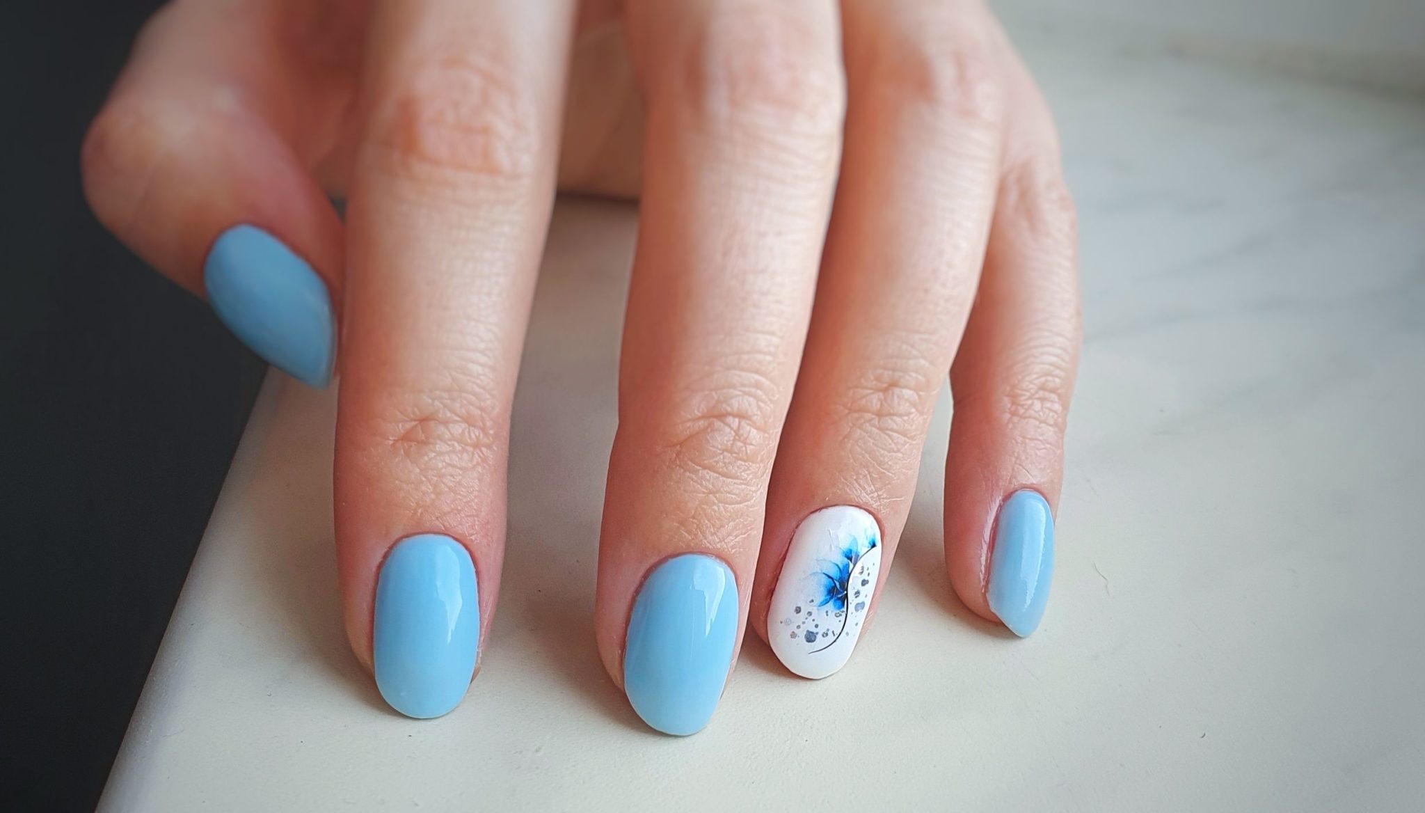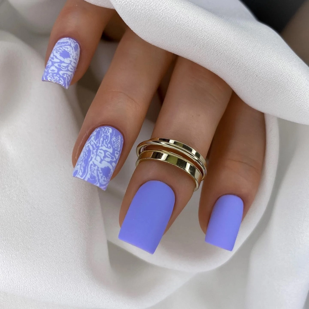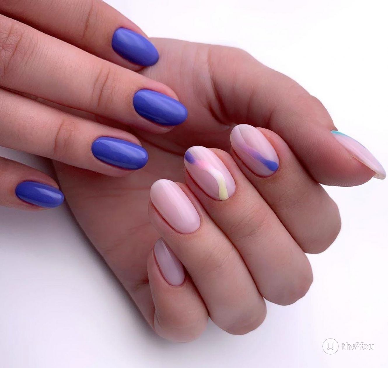 Только летом небо бывает таким высоким и голубым. Отразите это в маникюре. Яркие оттенки голубого отлично смотрятся на любой длине и форме ногтей. Обратите внимание на морской дизайн или маникюр с облаками — это один из трендов этого сезона.