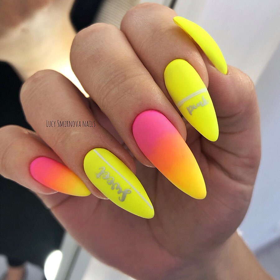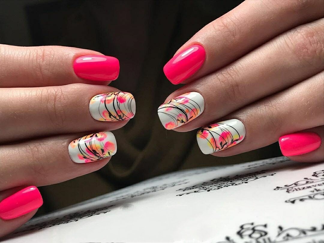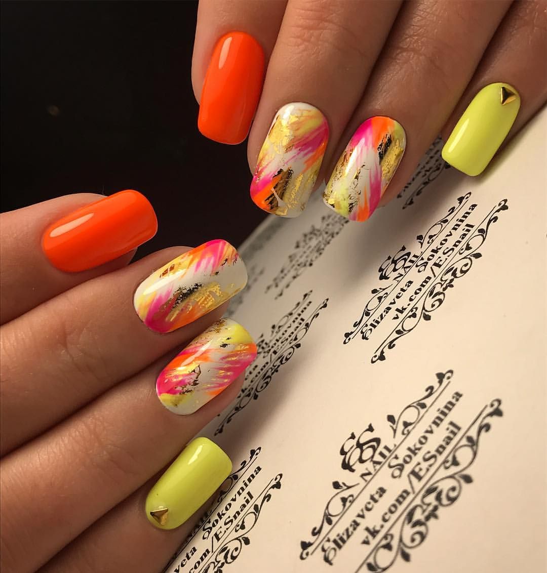 Если весной и в первый месяц лета мы вели себя немного сдержанно и использовали в маникюре в основном пастельную палитру, то в самой середине лета самое время использовать самые яркие краски. Ведь эта пора так скоротечна, а загар быстро смывается. Осень наступит очень быстро, а с ней придут и более сдержанные оттенки. Поэтому отрываемся и делаем самый смелый маникюр, какой только возможен в этом сезоне.