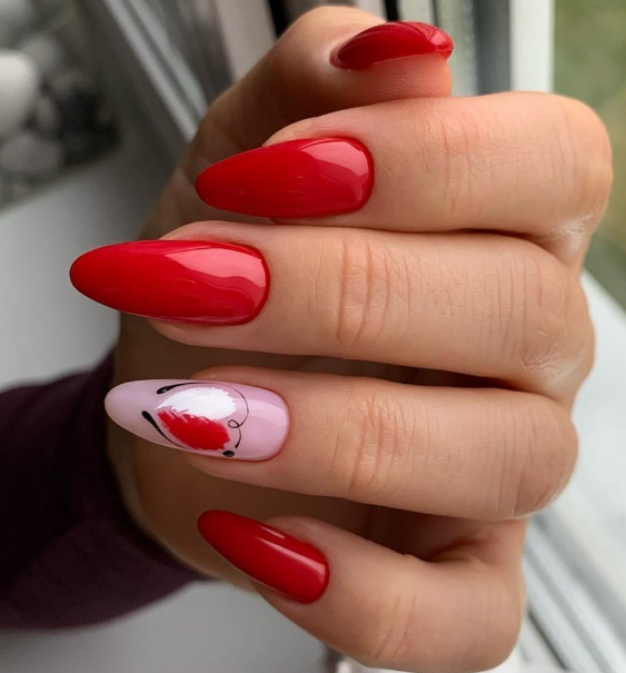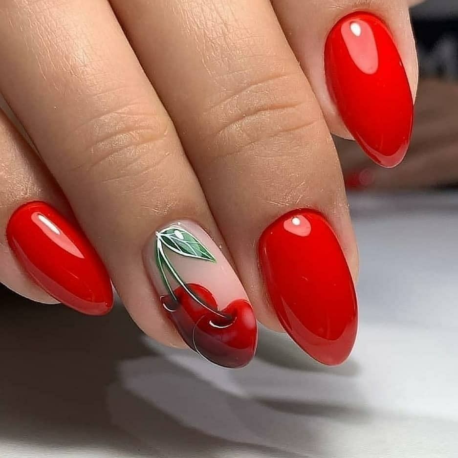 Немного страсти не повредит и летом. Только не делайте однотонный маникюр. Используйте сочный оттенок для ярких акцентов.