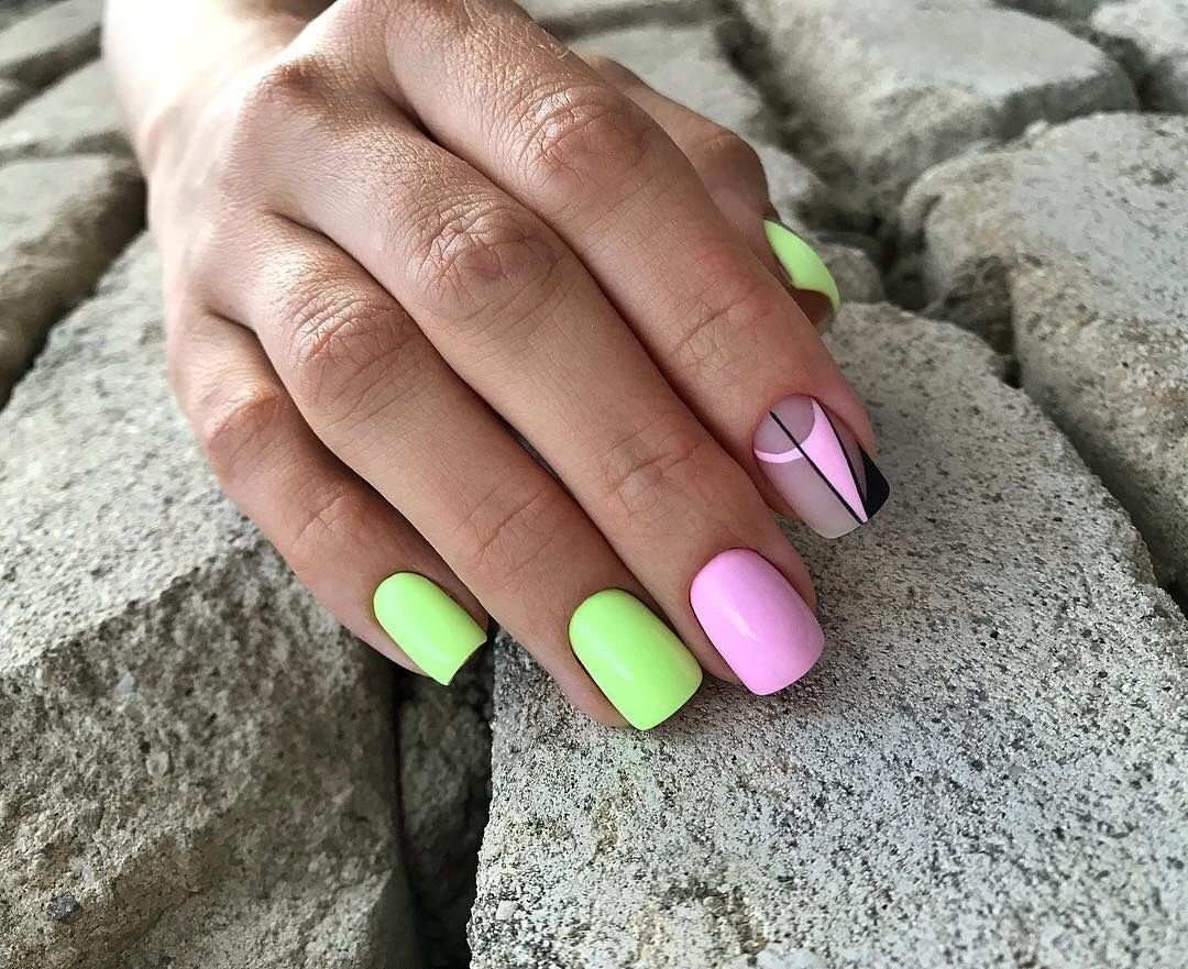 Каким должен быть маникюр в середине лета? Прежде всего ярким и сочным. Здесь практически нет ограничений по цветовой палитре. Даже черный лак найдет здесь для себя место. Кроме того, именно летом мастера предлагают использовать кислотные оттенки.