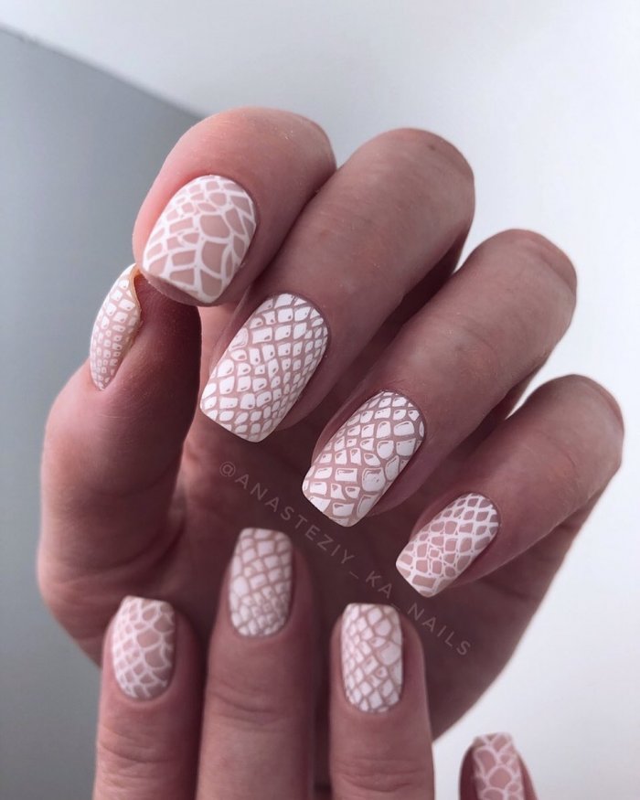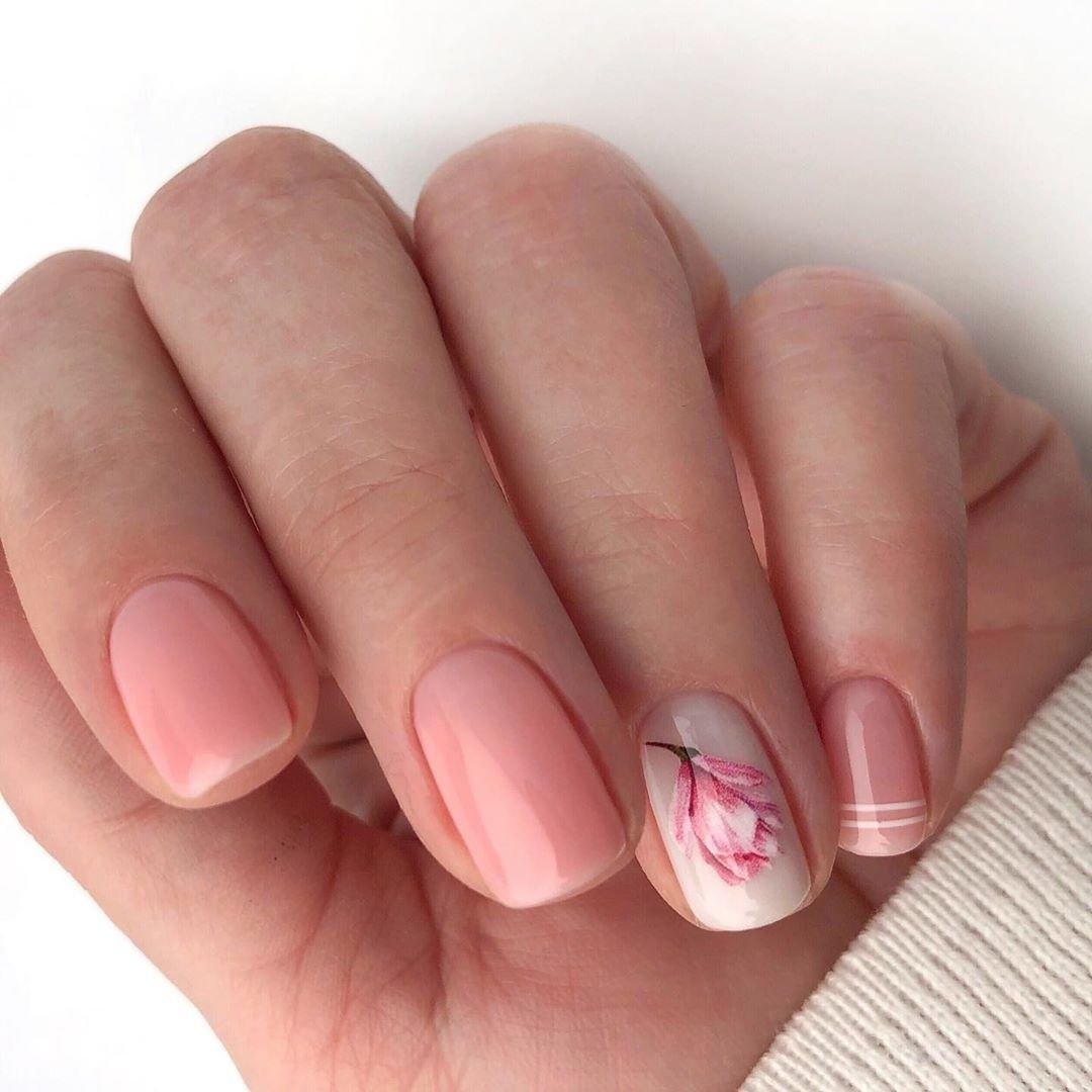 Если мы постоянно говорим о ярких красках, это не означает, что нюдовый маникюр стоит отложить до осени. Нюдовые женственные оттенки в моде всегда. Если вы продолжаете работать летом — это лучший вариант для ваших ногтей. Обратите внимание на персиковый, оттенок пыльной розы, ледяной голубой и другие подобные. Они смотрятся очень эффектно даже в однотонном исполнении.
