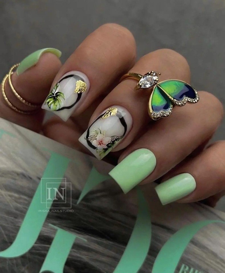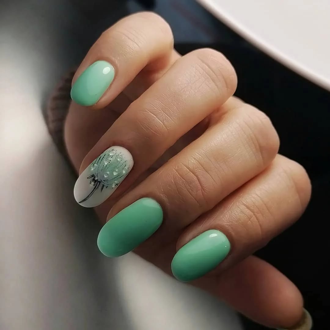 А это нежный представитель зеленой палитры. Конечно, зеленый оттенок можно использовать с июльском маникюре повсеместно, но мы рекомендуем обратить внимание на этот оттенок. Он не просто украсит ноготки, но и немного «охладит» в жаркие дни.