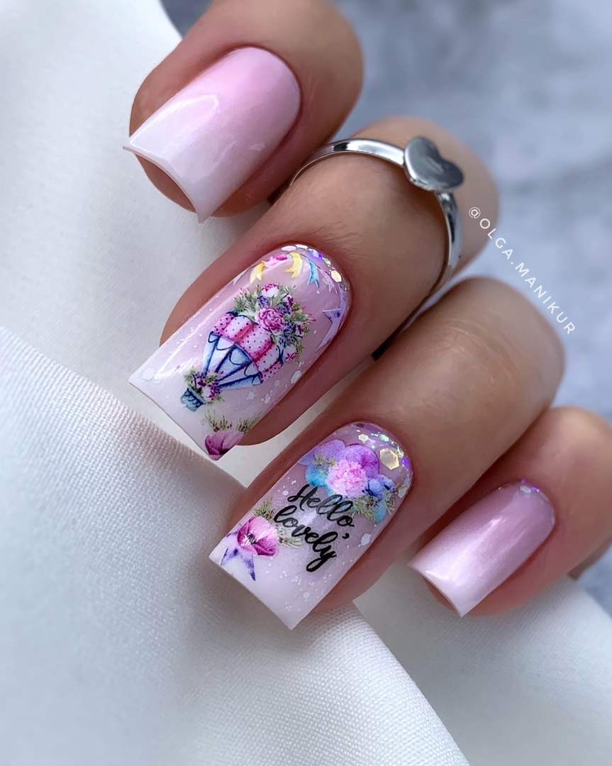 После своего появления эта техника сразу завоевала популярность среди модниц. Кроме того, сейчас нет никаких сложностей с тем, чтобы приобрести все необходимое и делать такой маникюр дома. Дизайн на июль предполагает использование флористической тематики, изображений животных и красивых насекомых. Интересно смотрятся и надписи в летней тематике.