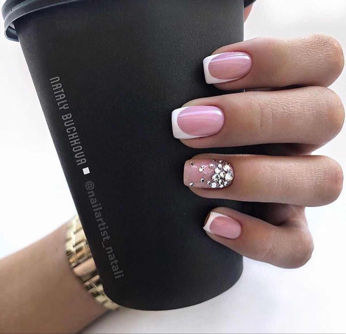 Как всегда начнем с французского маникюра. Он абсолютно точно не теряет своей актуальности до сих пор. Вряд ли кто-то из вас не знает, как выглядит классический френч — нейтральная прозрачная база и кончик, окрашенный в белый цвет. Но таким френч был в самом начале, когда такой дизайн появился как ответ на запрос Голливуда. Дело в том, что актрисам необходимо было часто менять наряды, но сменить так же быстро маникюр не было возможности. Поэтому один из мастеров и придумал дизайн, который стал настоящей классикой.