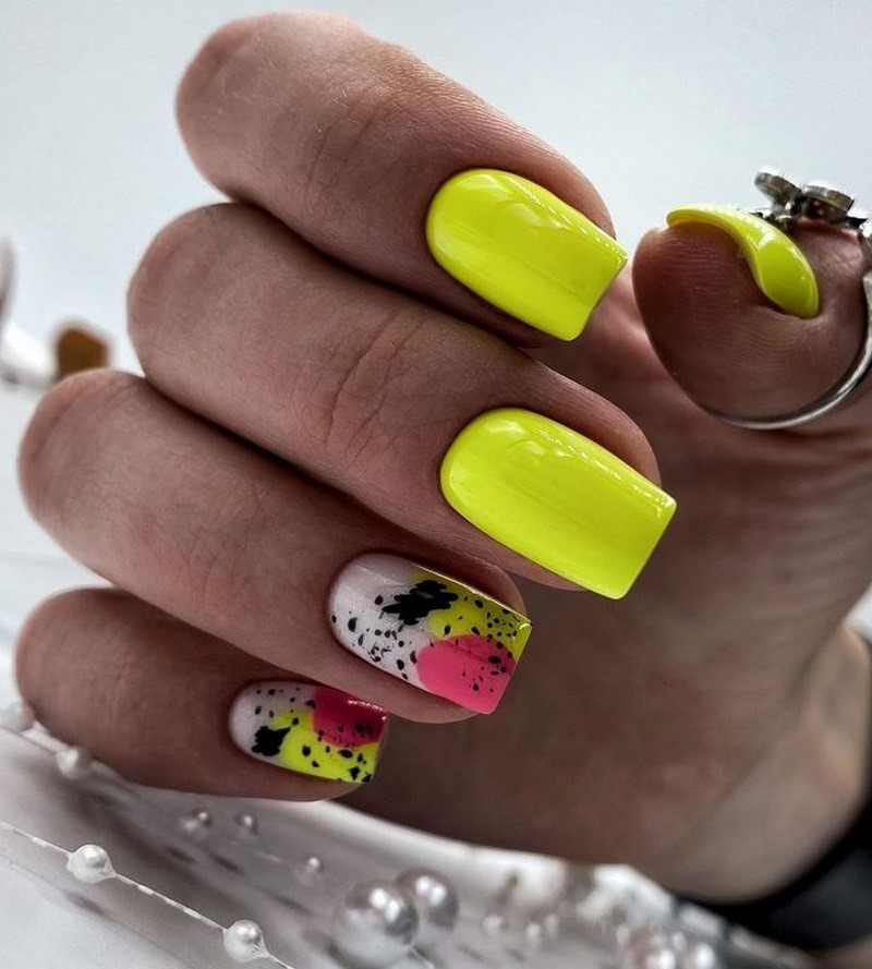 Совет: не усердствуйте, используя сразу несколько дизайнов. Летом и так много красок в образе. Выберите пару акцентных ноготков и украшайте их так, как вам нравится.