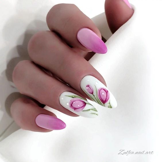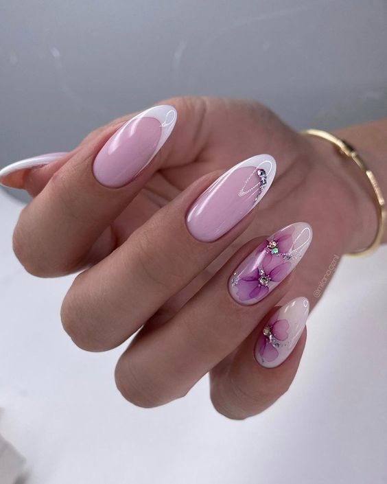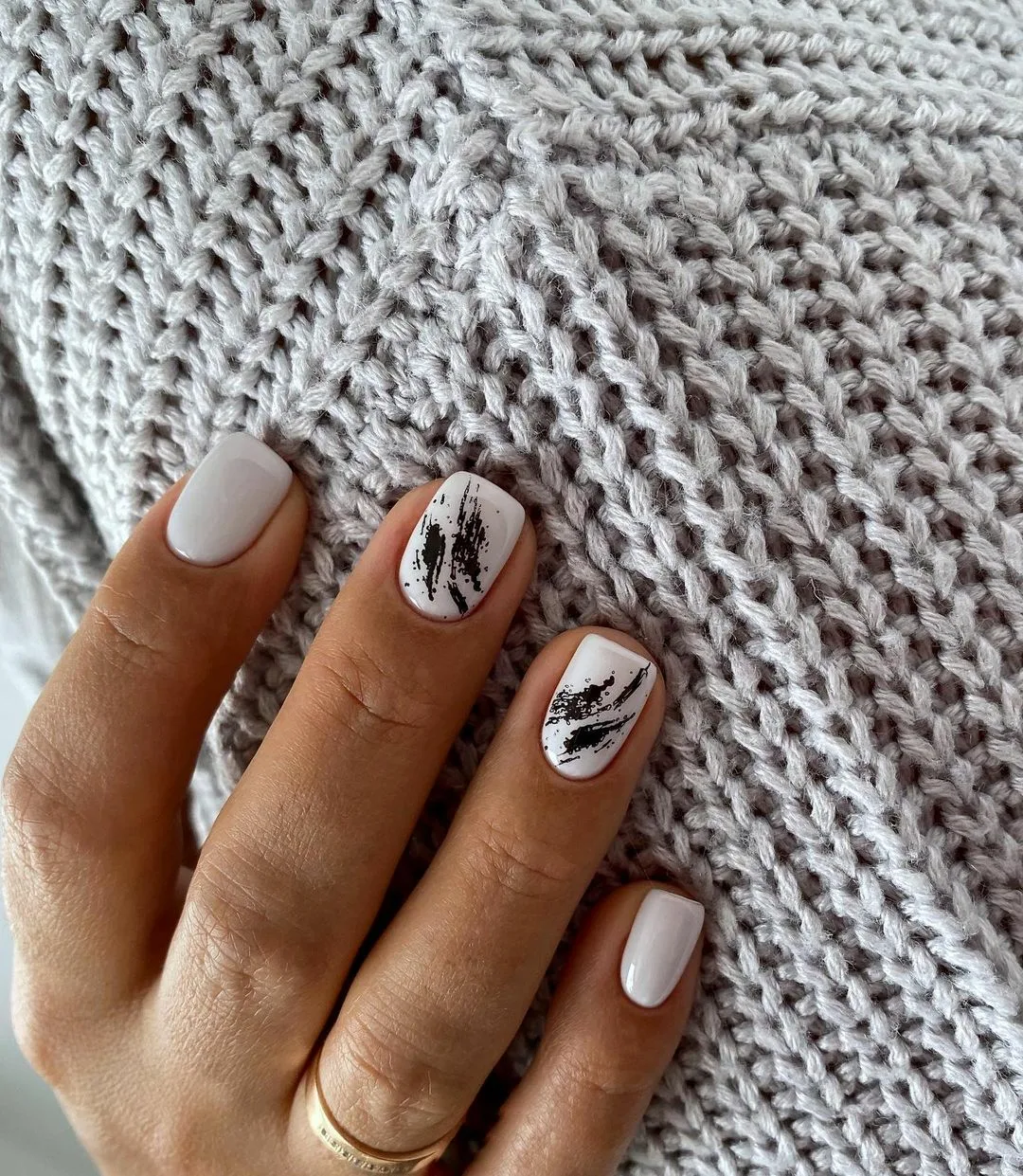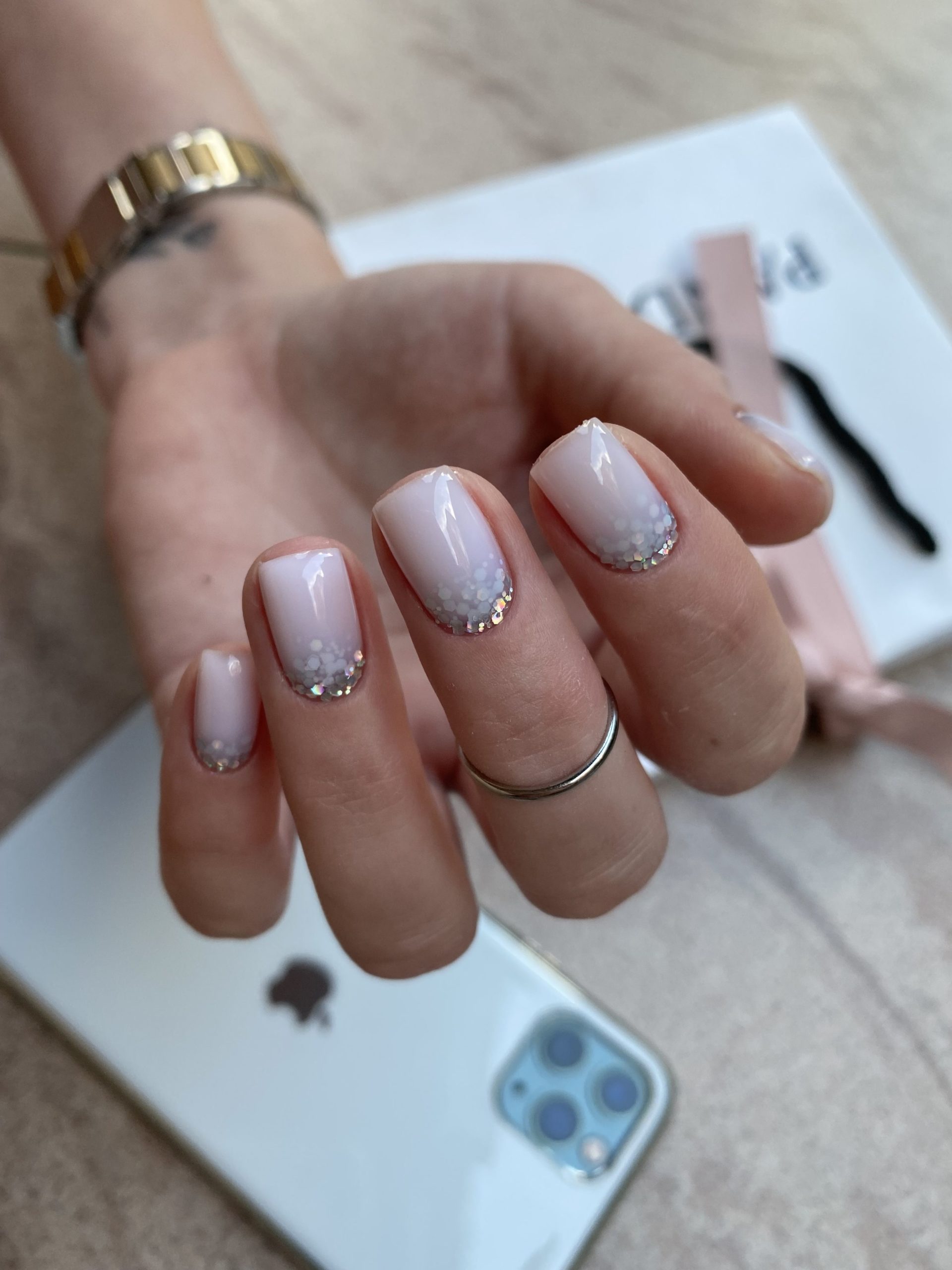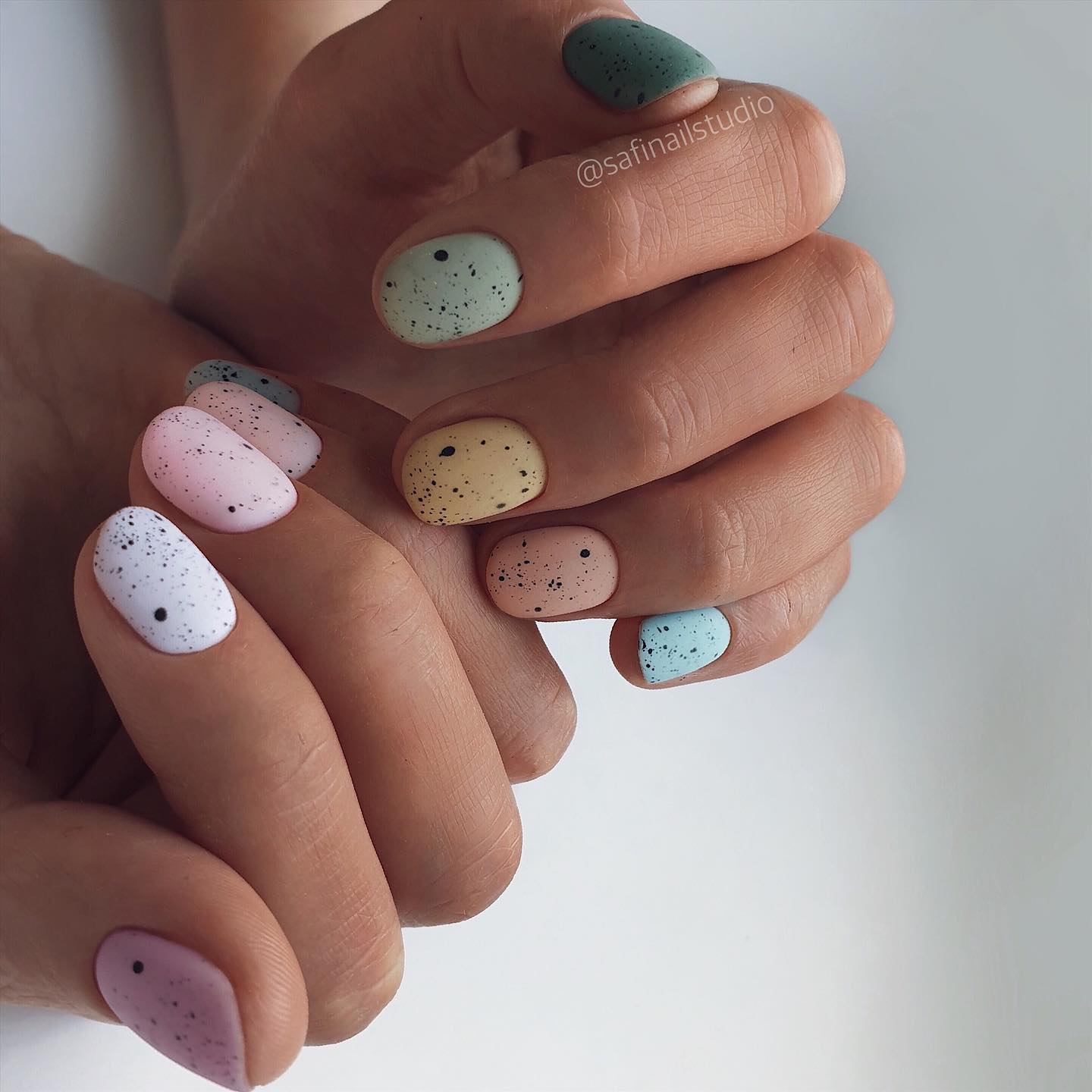 Этот нежный дизайн в лидерах уже не первый сезон. Его можно сочетать с рисунками и фольгированными участками — все в ваших руках. Оттенки могут быть любые. Этот вид декора очень подходит коротким ногтям, особенно если оформить их в технике омбре.
