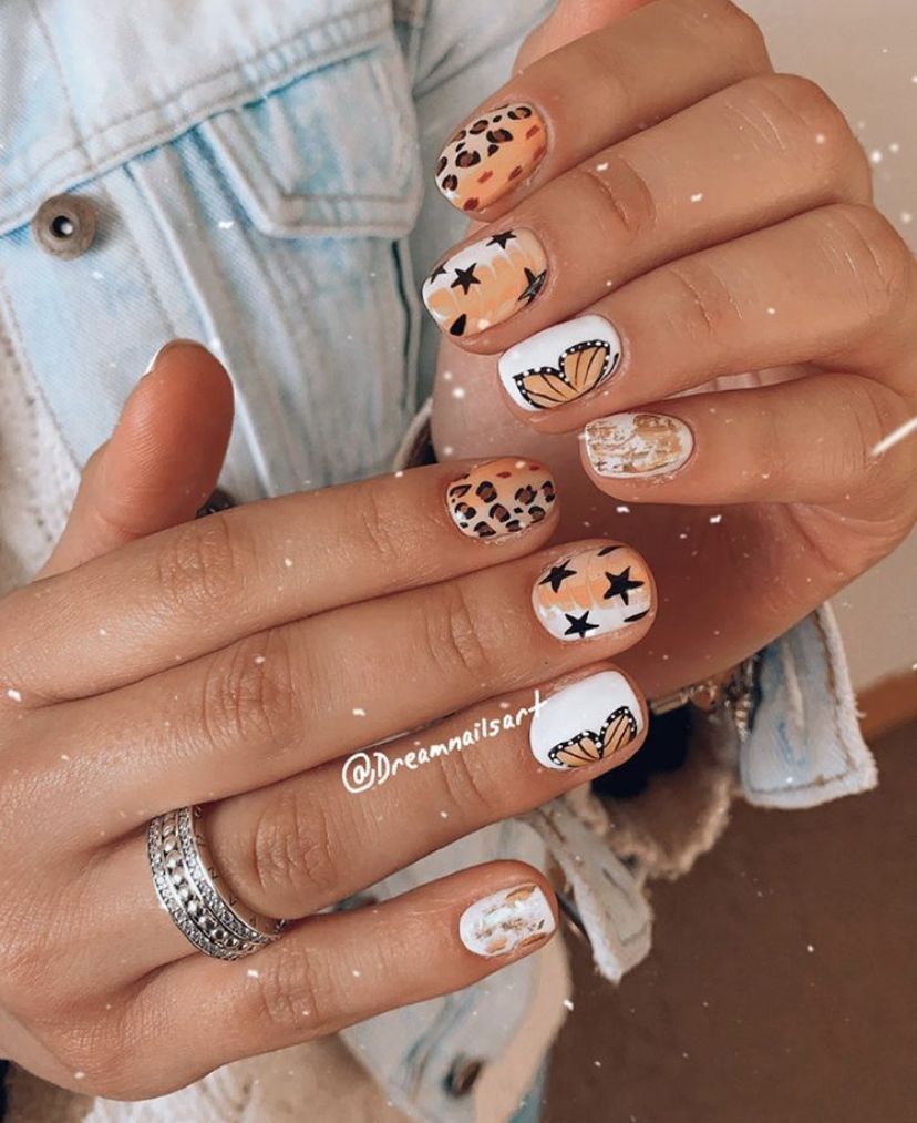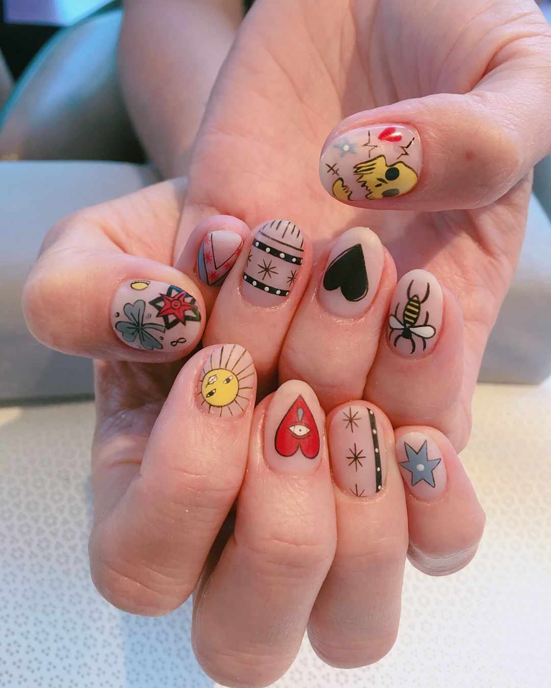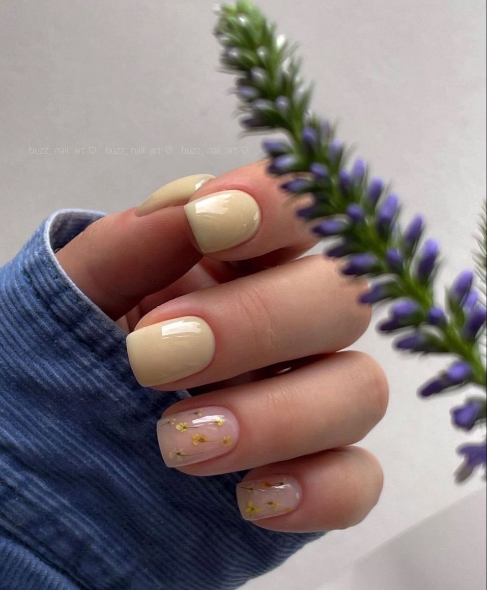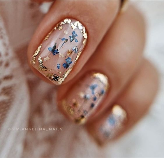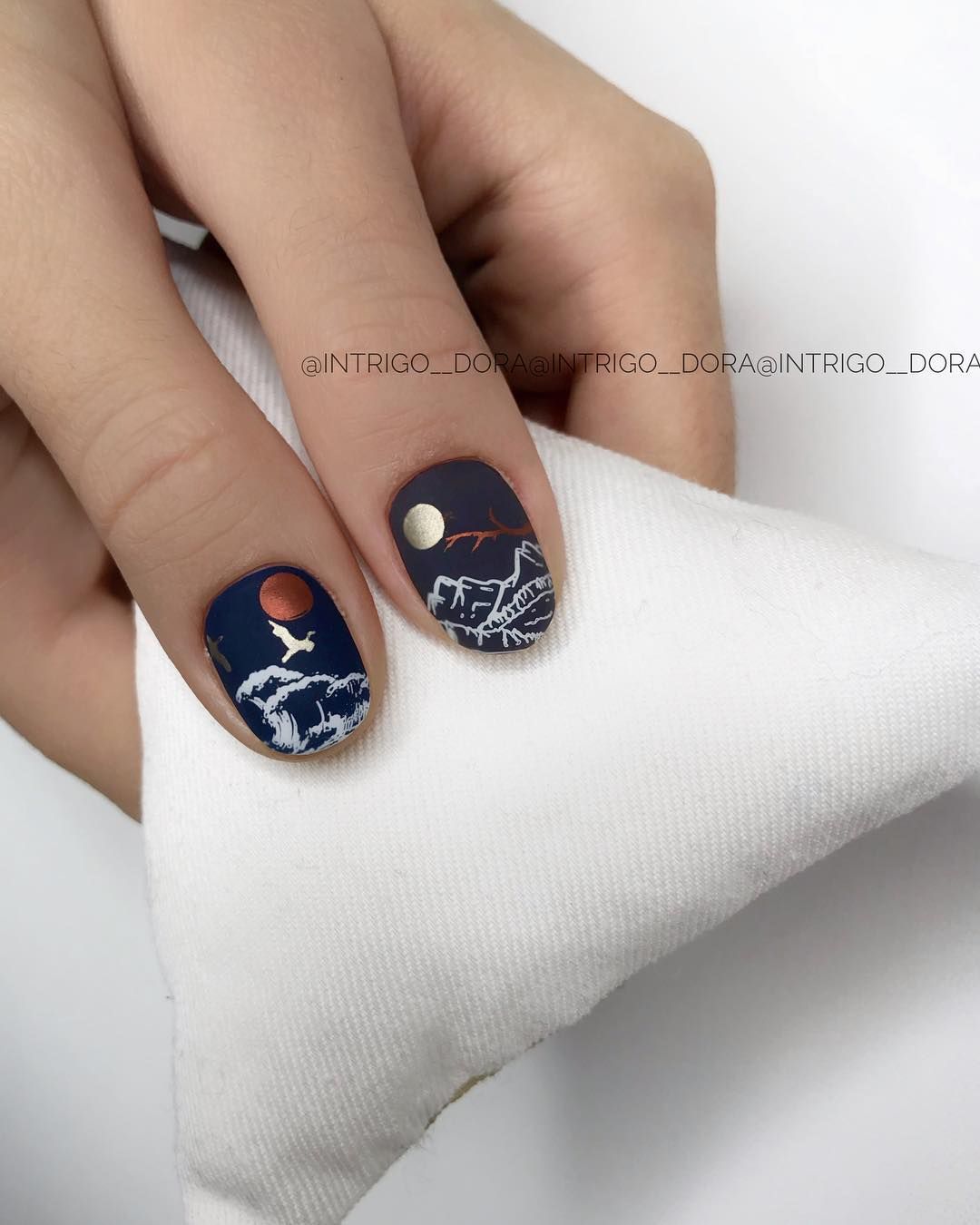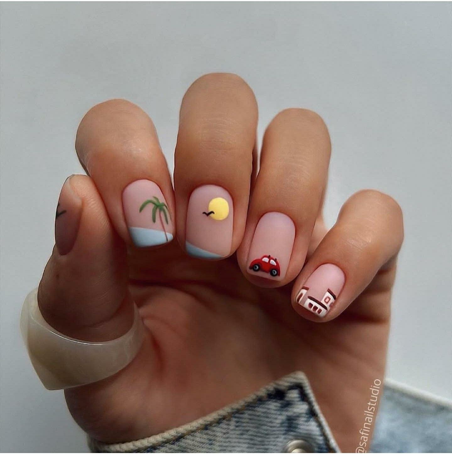 Маникюр с рисунком — один из несомненных трендов этого сезона. Весной особенно актуален цветочный дизайн. Для коротких ногтей рекомендуем выбирать мелкие цветы, которыми можно заполнить всю площадь пластины. Их можно нарисовать, нанести с помощью стемпинга или использовать наклейку. Какие еще рисунки актуальны? Флористика, животные, сердечки, насекомые и др. Все это актуально в теплое время года. А вот зимой выбирают новогоднюю тематику, снежинки. Осенью актуально смотрится маникюр с прозрачными капельками на ногтях.