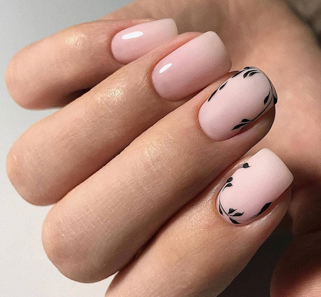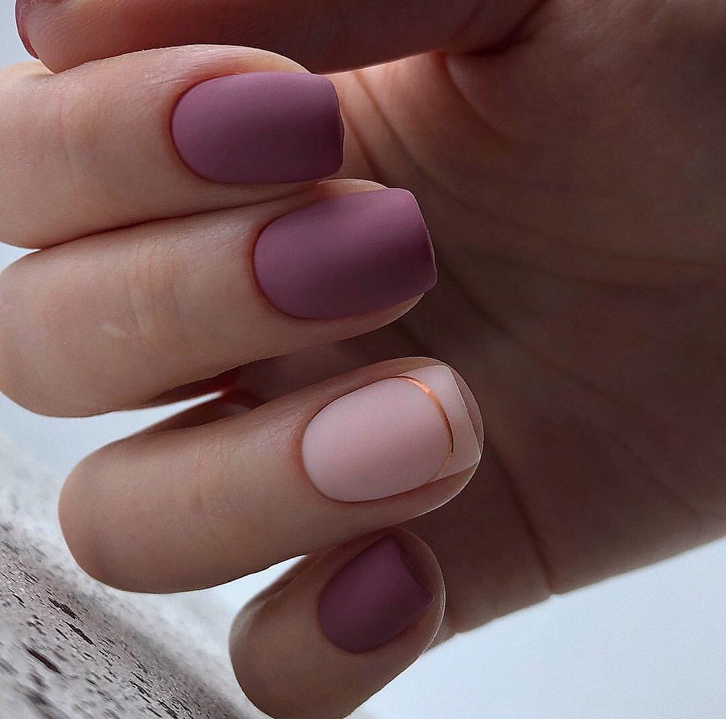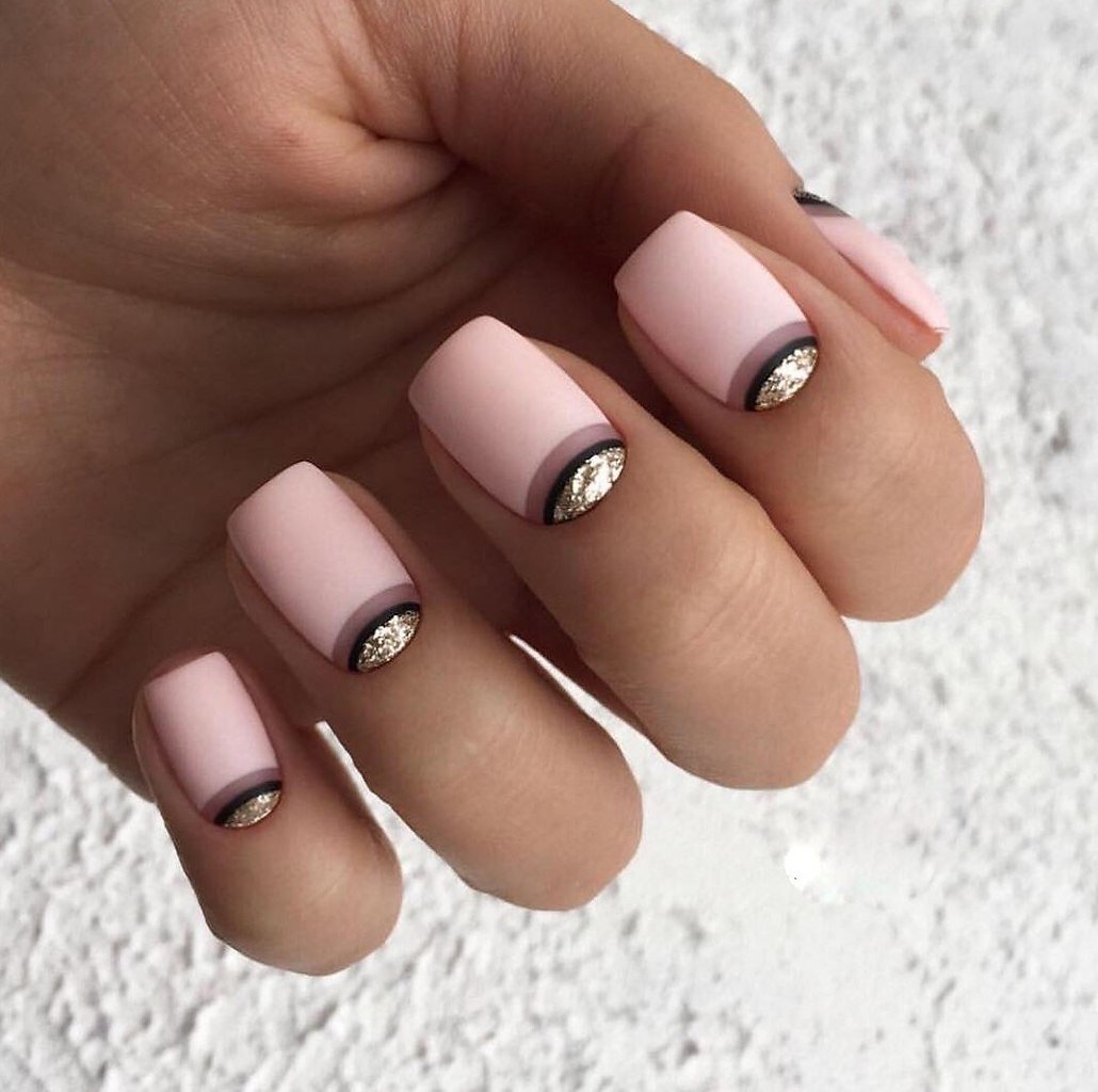 - матовая основа. Для очень короткой длины лучше избегать такого покрытия, которое визуально скрадываем мм у пластины. Если все таки решите покрыть ноготки матовым топом, откажитесь от других вариантов декора, чтобы не перегружать дизайн и не укорачивать визуально пальчики;