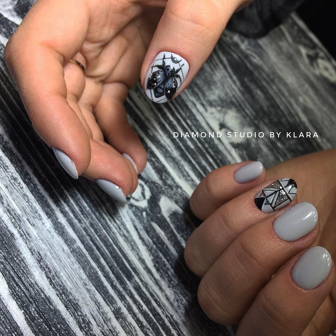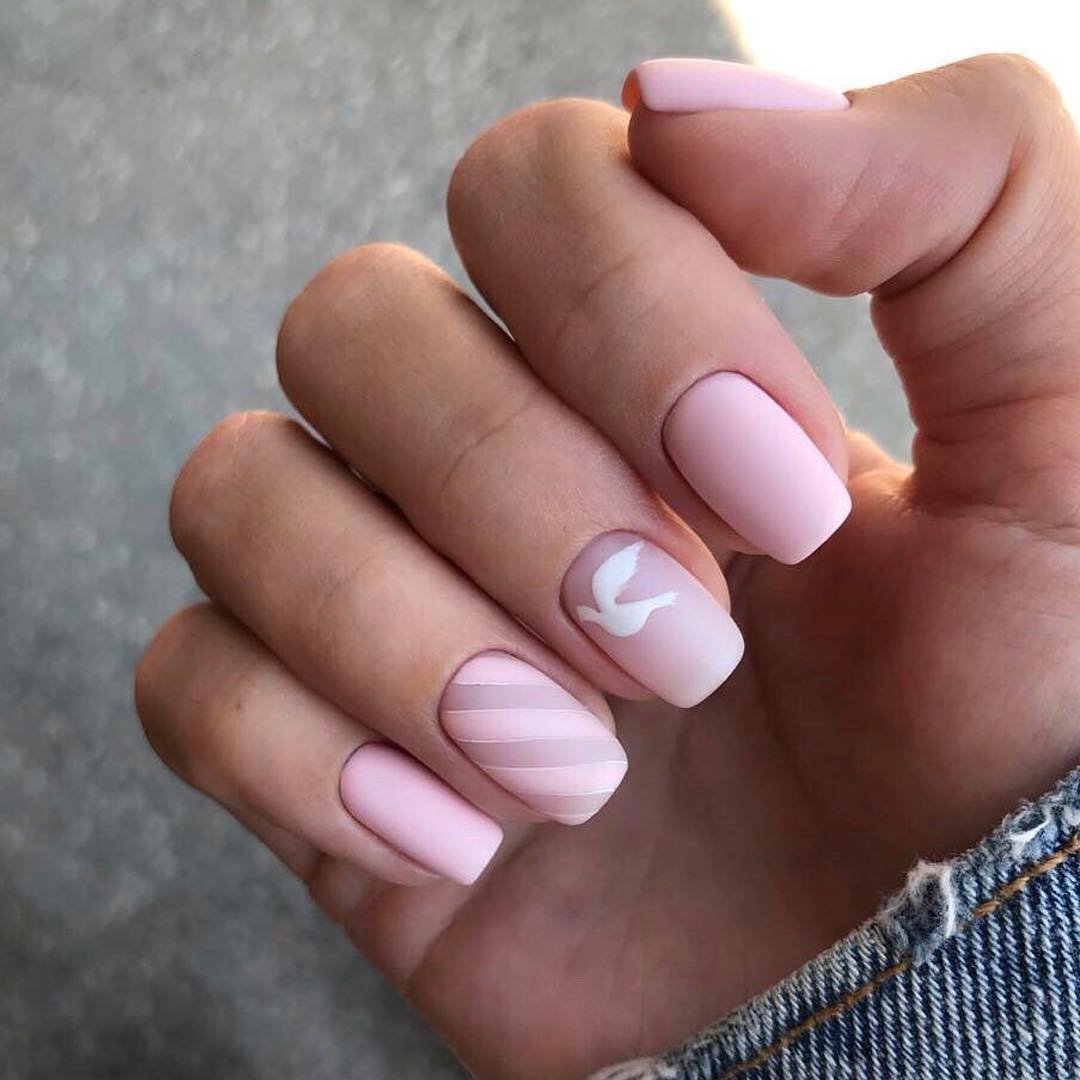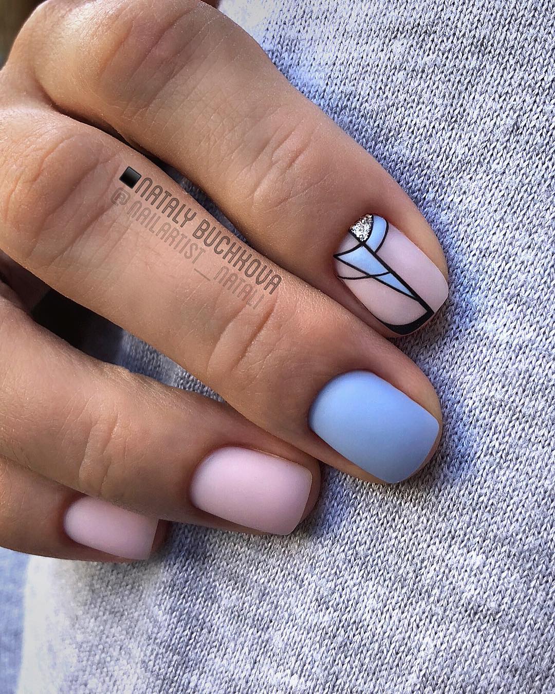 - матовая основа. Для очень короткой длины лучше избегать такого покрытия, которое визуально скрадываем мм у пластины. Если все таки решите покрыть ноготки матовым топом, откажитесь от других вариантов декора, чтобы не перегружать дизайн и не укорачивать визуально пальчики;