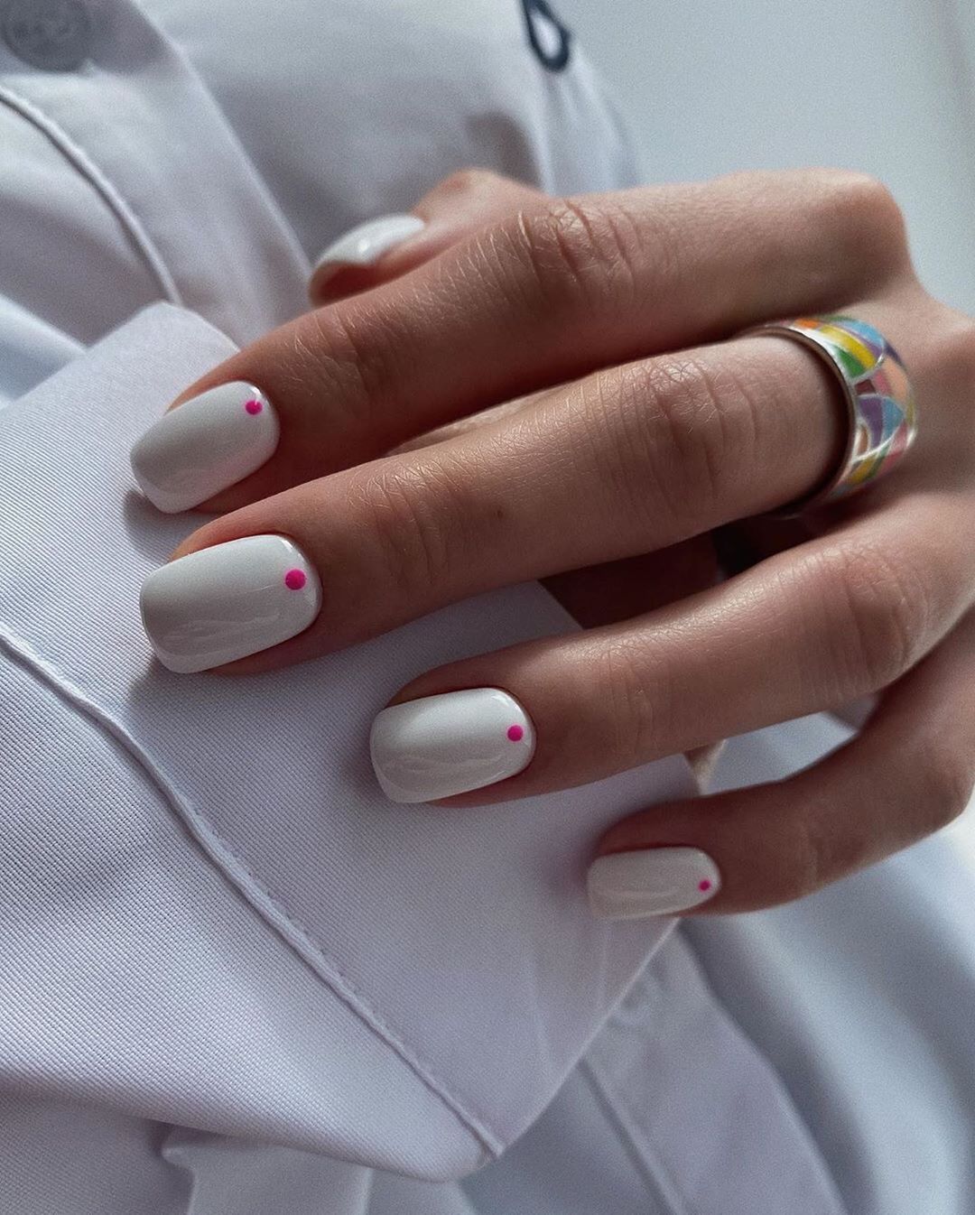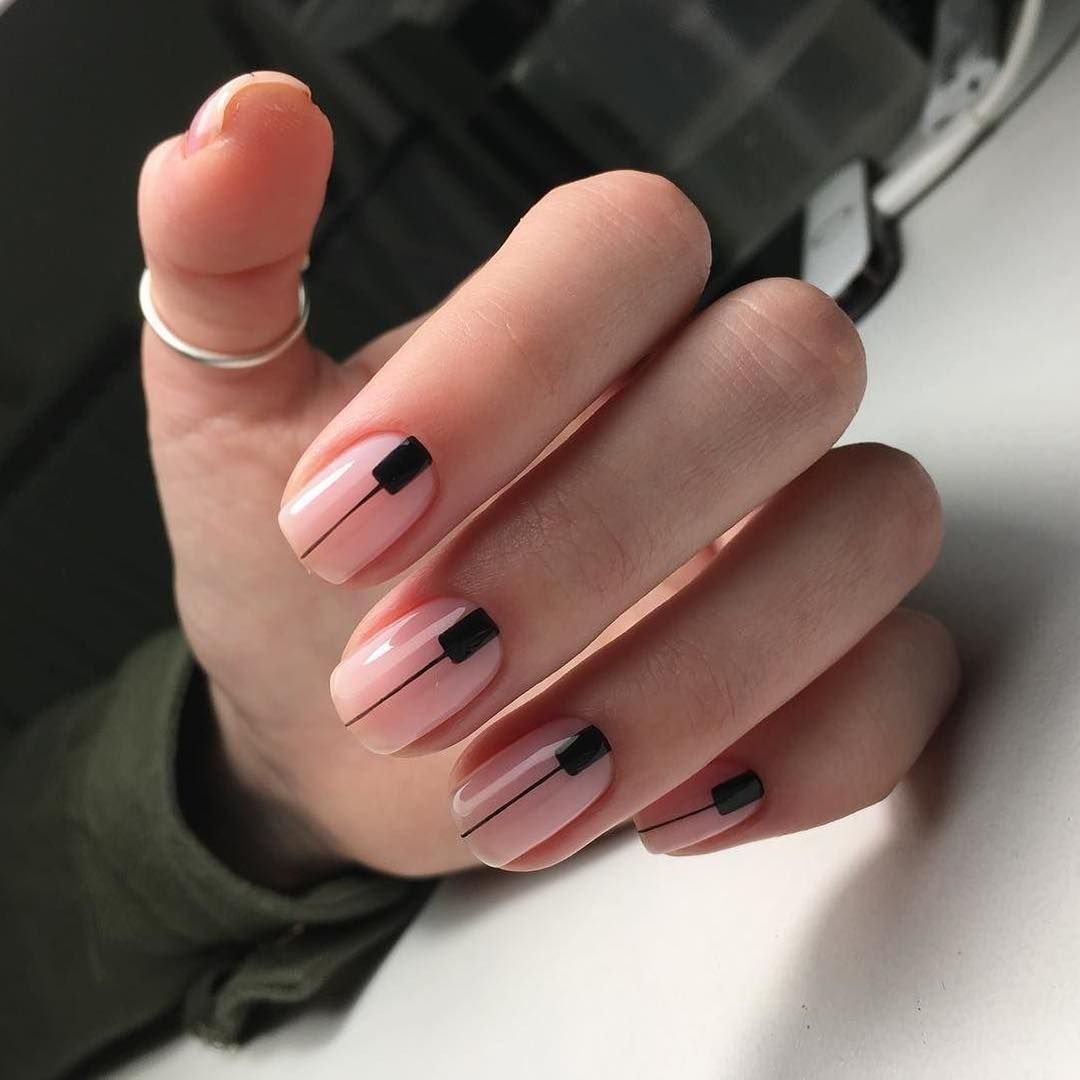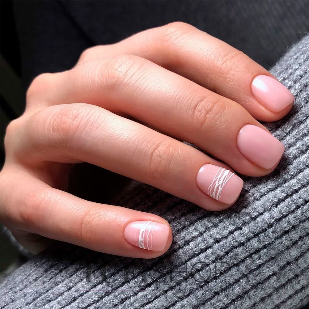 Нет желания делать моно маникюр, но с выбором дизайна возникли затруднения? Для начала остановитесь на стиле минимализм. Это современно и модно. Небольшие точки, полоски, рисунки — вот то, что определяет технику. Основа может быть нейтральной или яркой, а декор практически незаметным или контрастным. Кстати, с помощью минималистичных линий можно визуально вытянуть короткую платину и сделать ноготки более изящными.