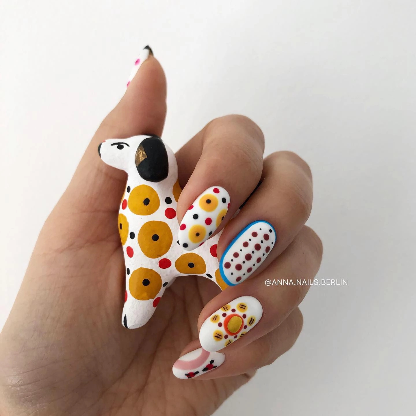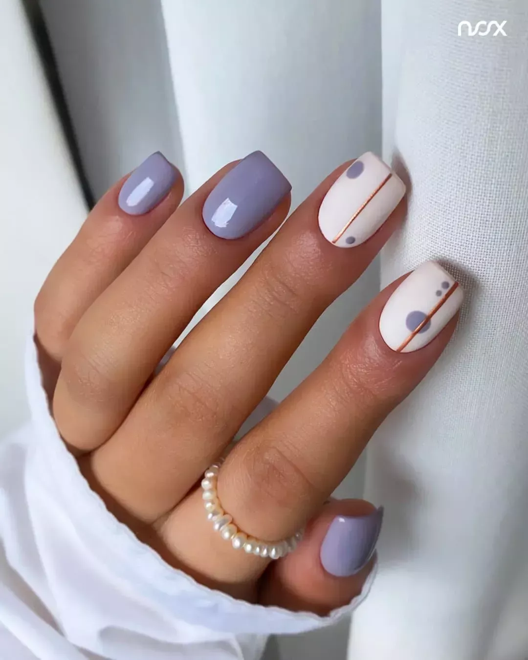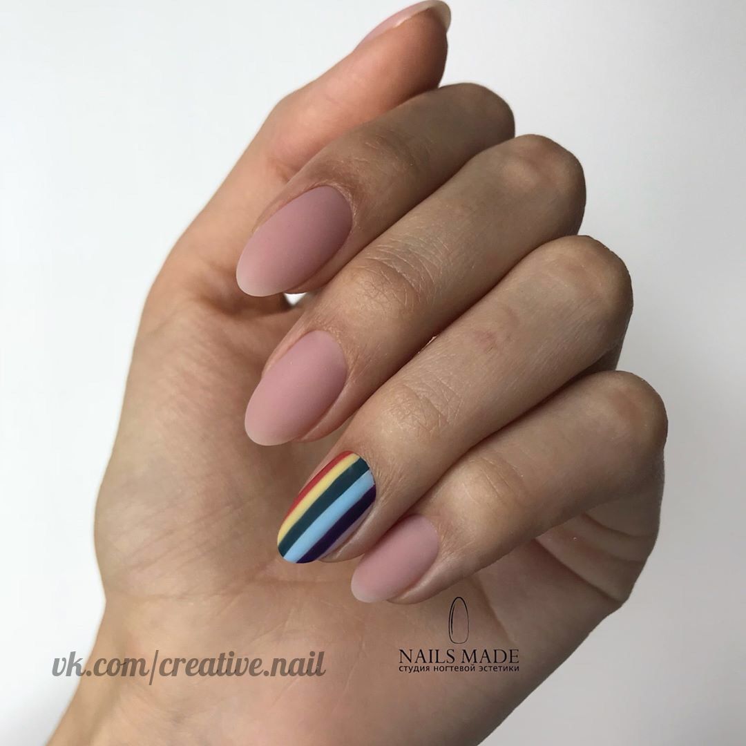 Нет желания делать моно маникюр, но с выбором дизайна возникли затруднения? Для начала остановитесь на стиле минимализм. Это современно и модно. Небольшие точки, полоски, рисунки — вот то, что определяет технику. Основа может быть нейтральной или яркой, а декор практически незаметным или контрастным. Кстати, с помощью минималистичных линий можно визуально вытянуть короткую платину и сделать ноготки более изящными.