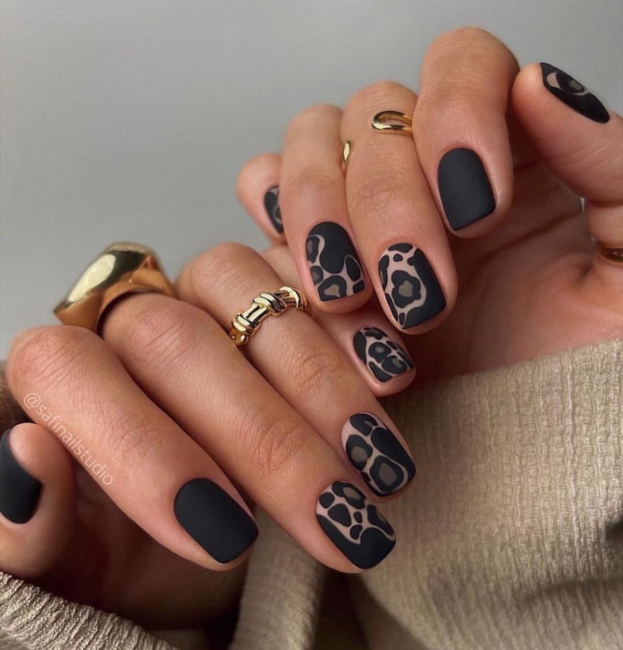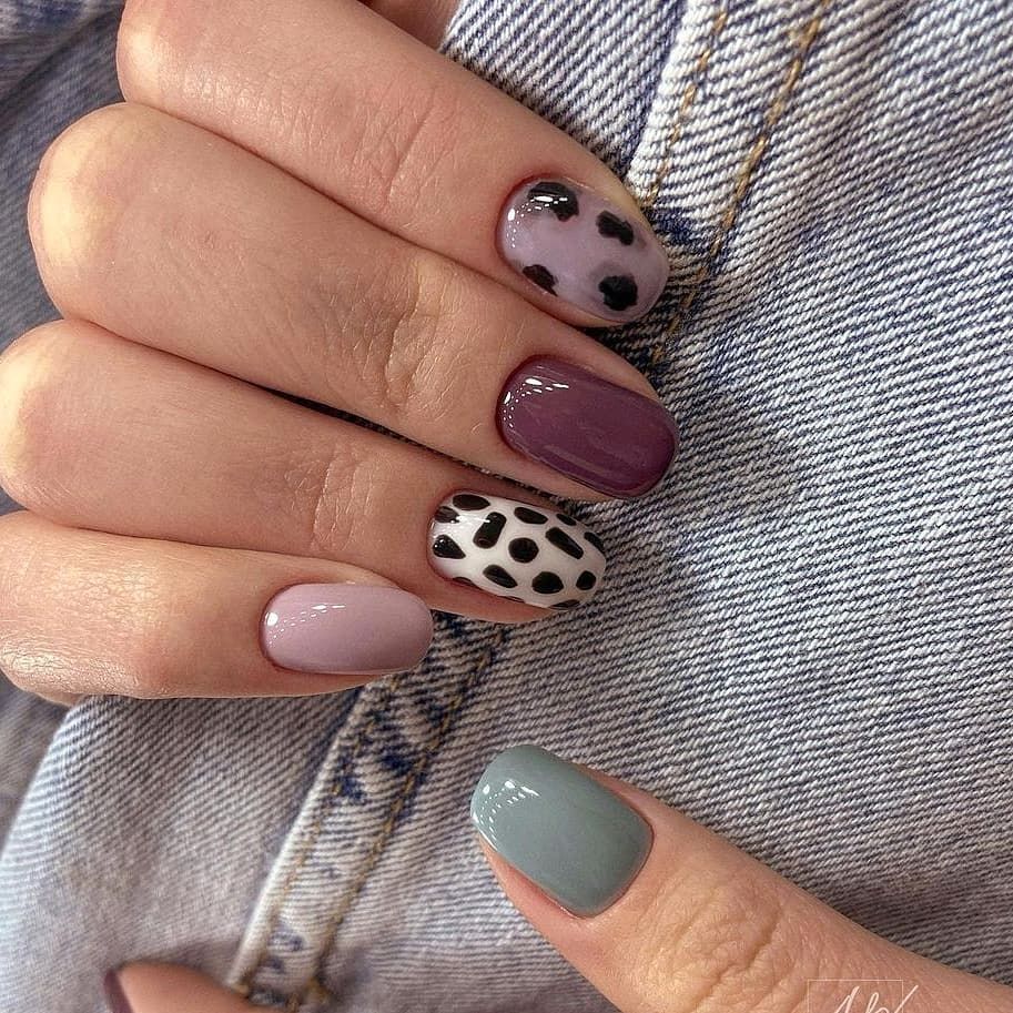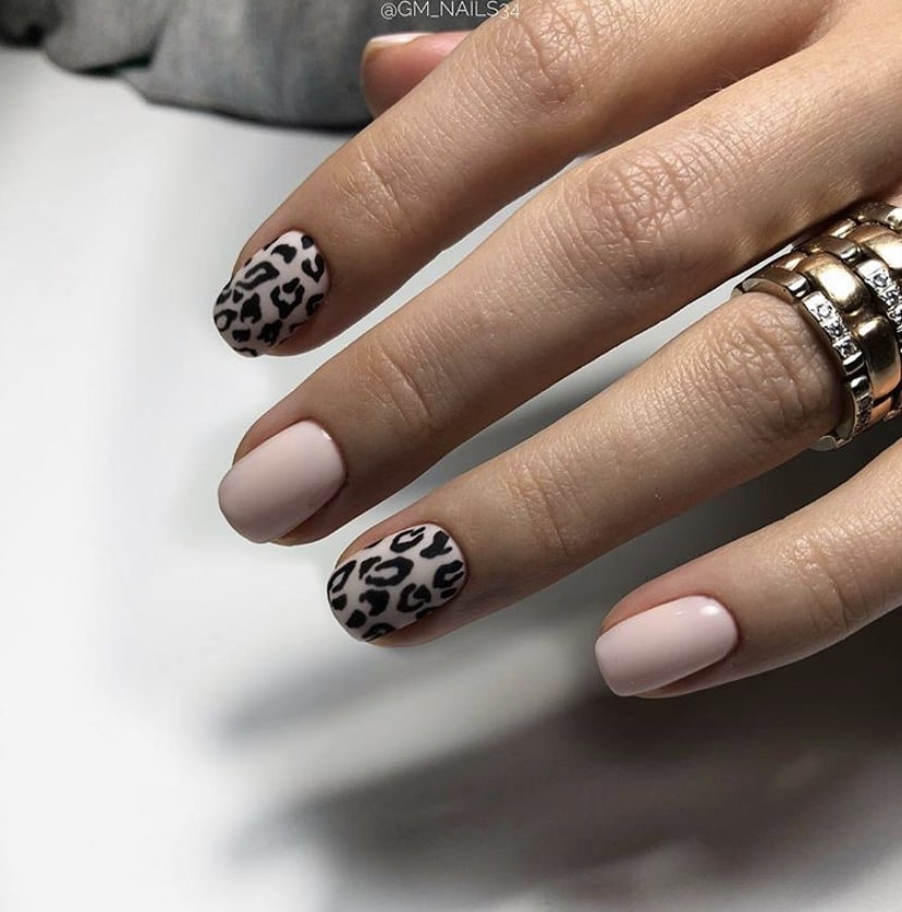 Анималистичный принт все так же в моде, как и много лет назад. Но современный вариант такого маникюра предполагает минималистичный подход. Оформить таким образом рекомендуется один или два ноготка. Эффектно смотрится не полное покрытие, а, например, выделение части пластины. В трендах все виды животного принта — зебра, леопард, тигр, жираф, корова.