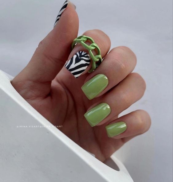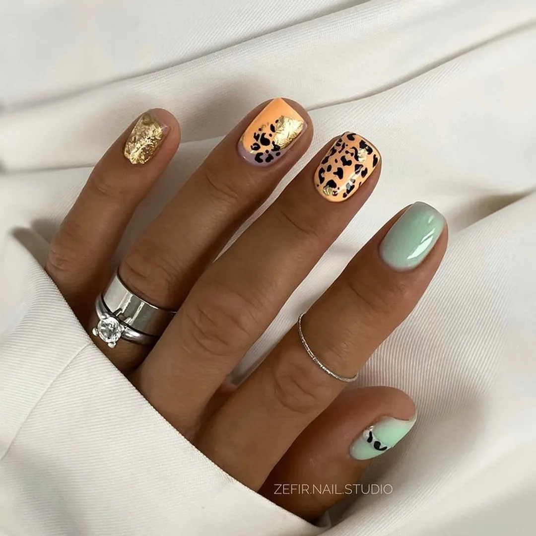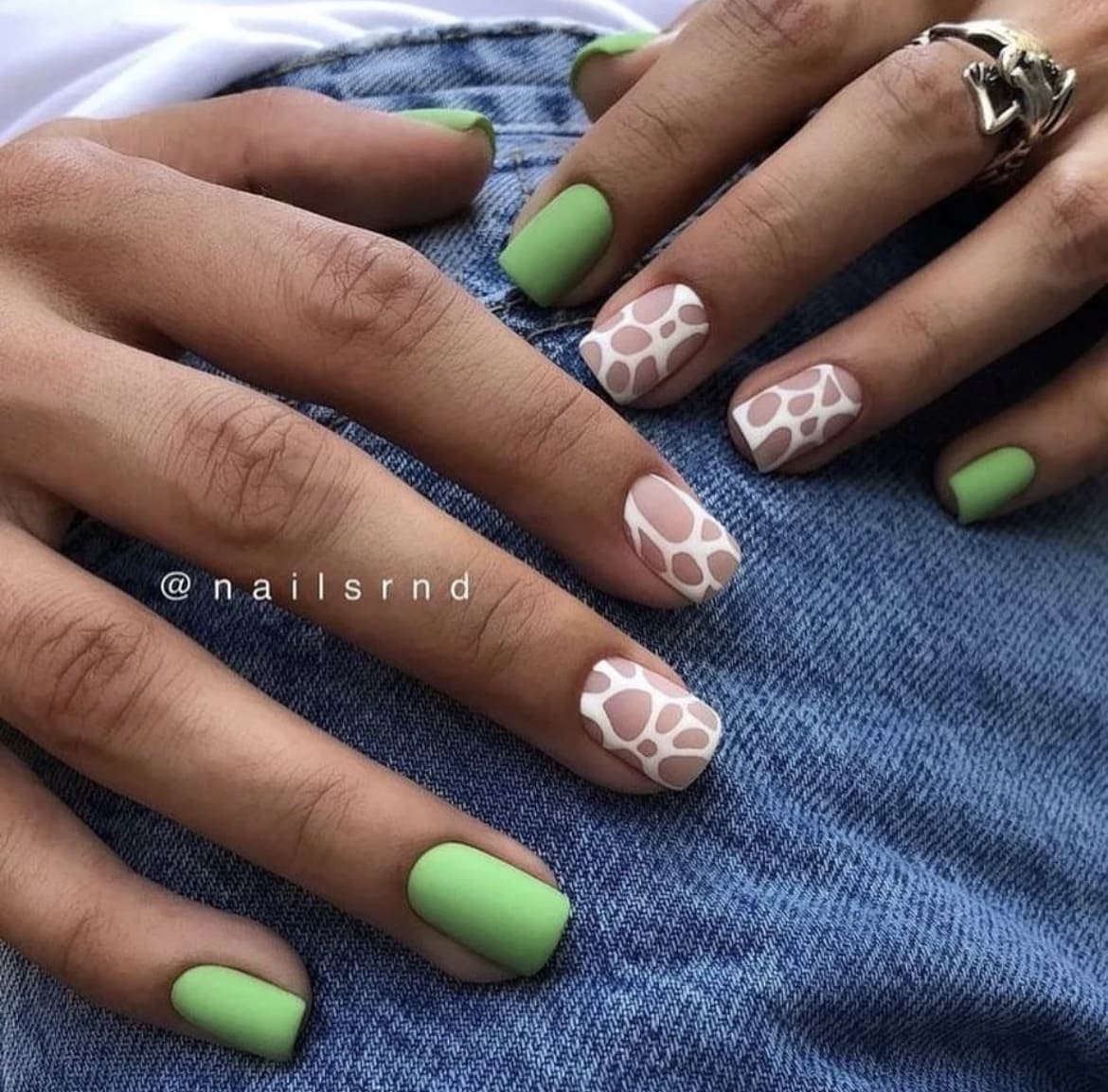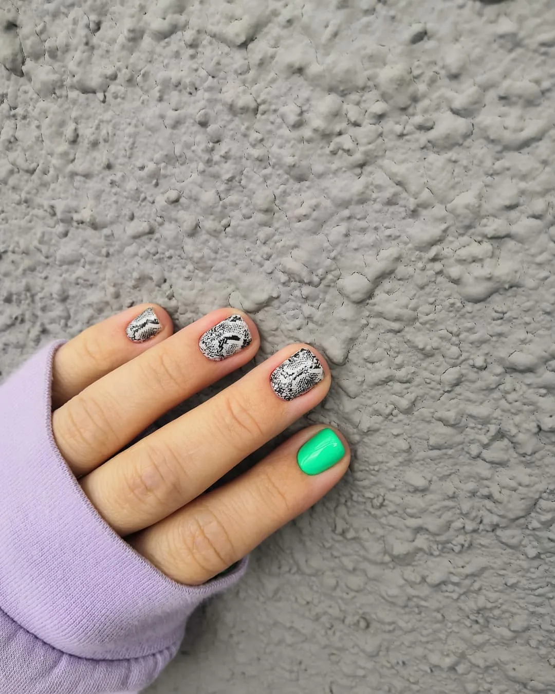 Анималистичный принт все так же в моде, как и много лет назад. Но современный вариант такого маникюра предполагает минималистичный подход. Оформить таким образом рекомендуется один или два ноготка. Эффектно смотрится не полное покрытие, а, например, выделение части пластины. В трендах все виды животного принта — зебра, леопард, тигр, жираф, корова.