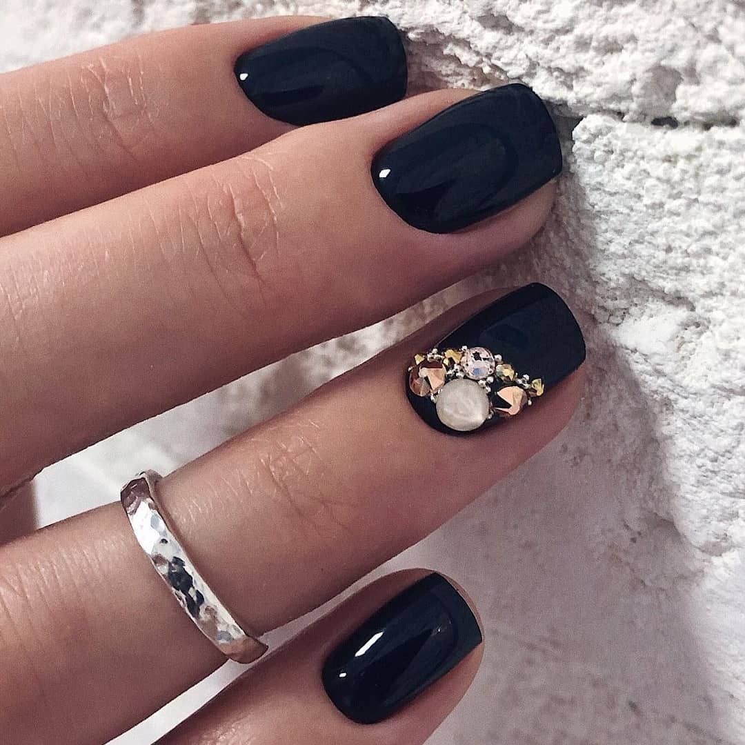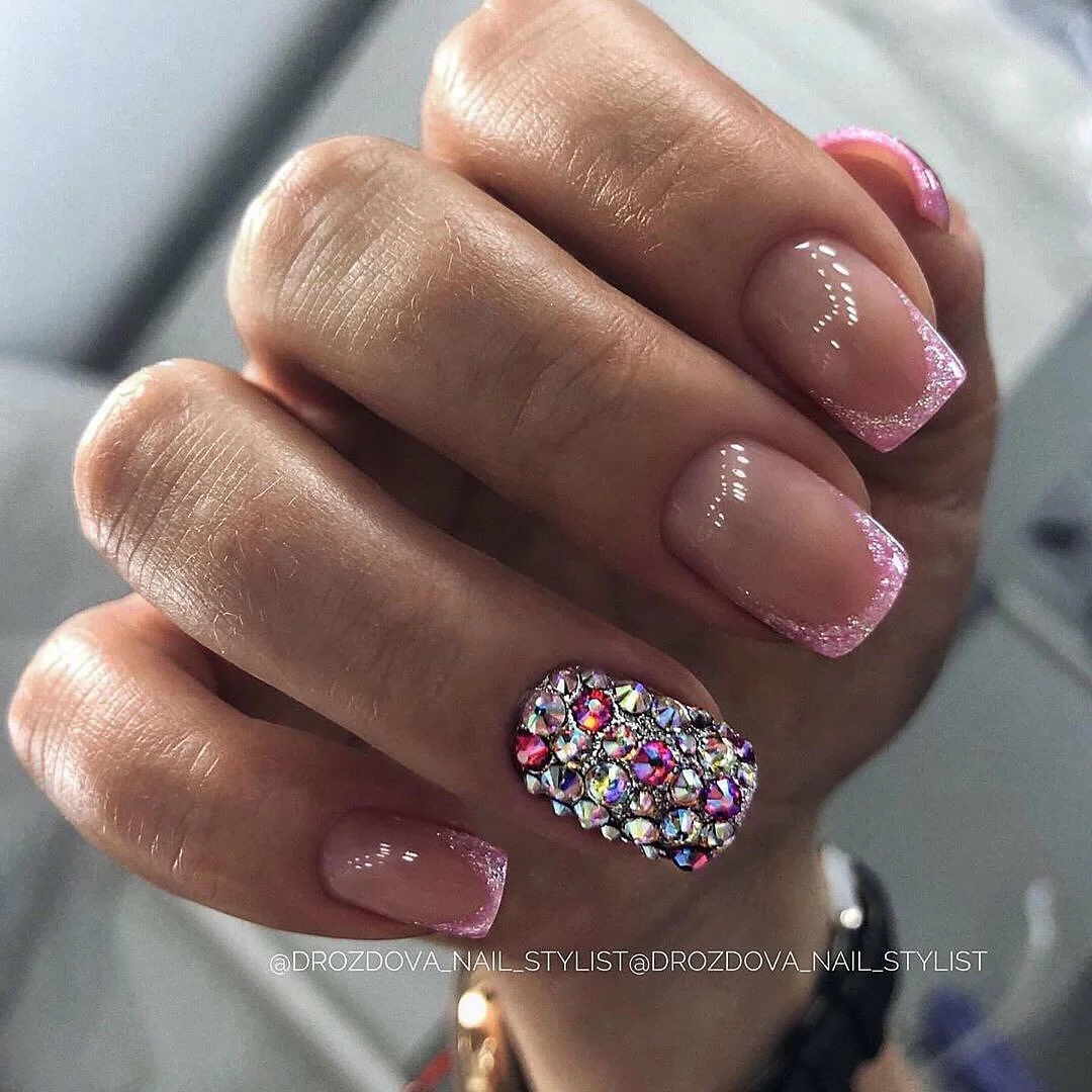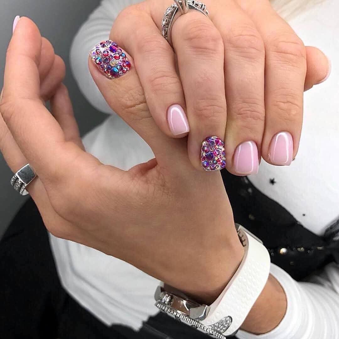 Уже давно ходят споры о том, что использование страз делает маникюр довольно вызывающим и чрезмерным. Но все дело в количестве и размере используемого декора. Если хотите сделать стильный маникюр на короткие ногти с камнями, обратите внимание на самый мелкий их размер. А для декора используйте принцип минимализма. Кроме того, помните, что стразы имеют острые края и могут цепляться за одежду и предметы. Поэтому имеет смысл выделить таким образом один или два ноготка.