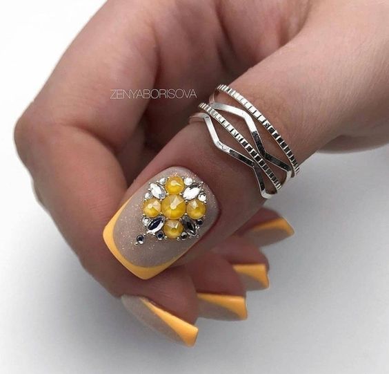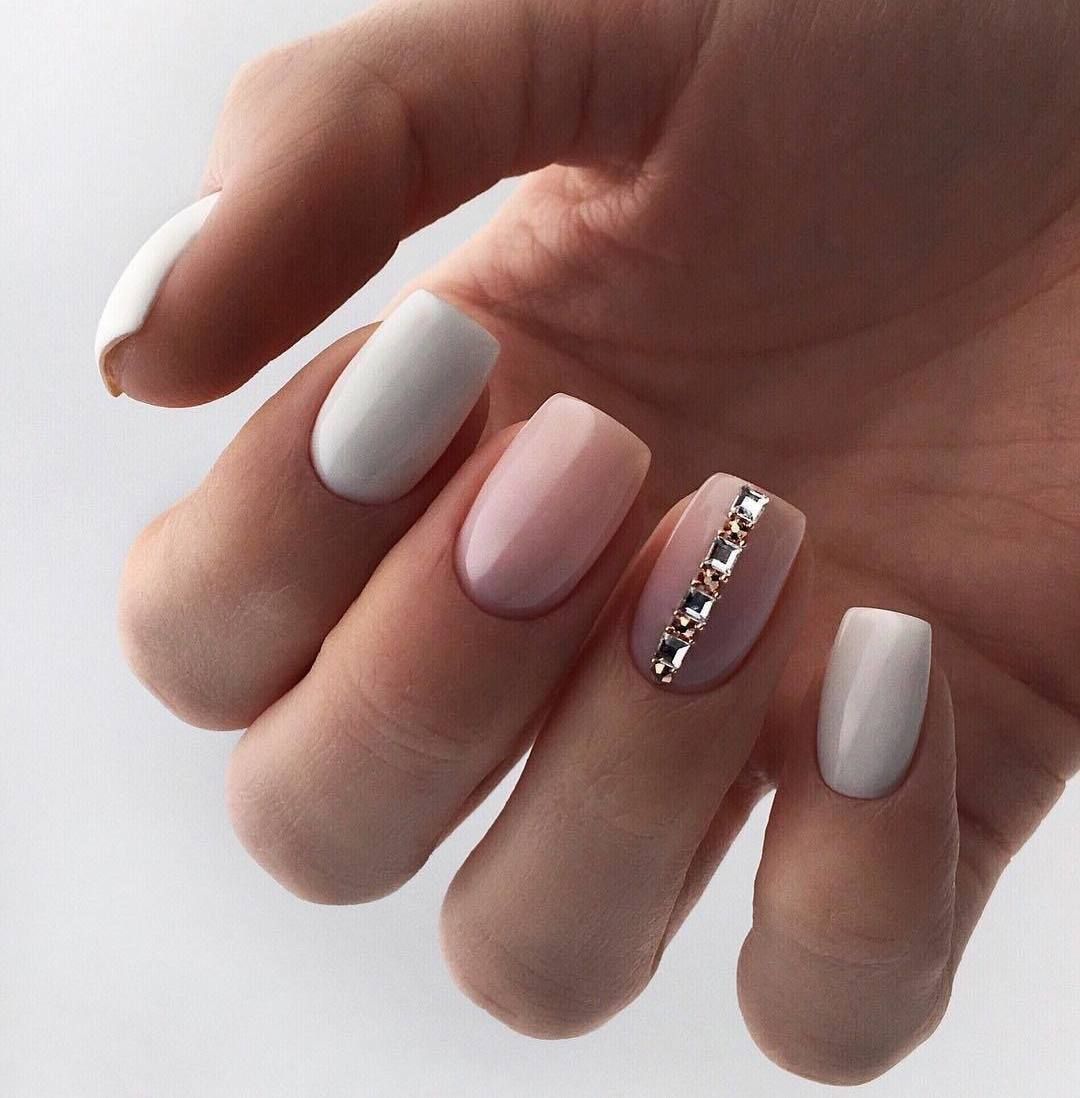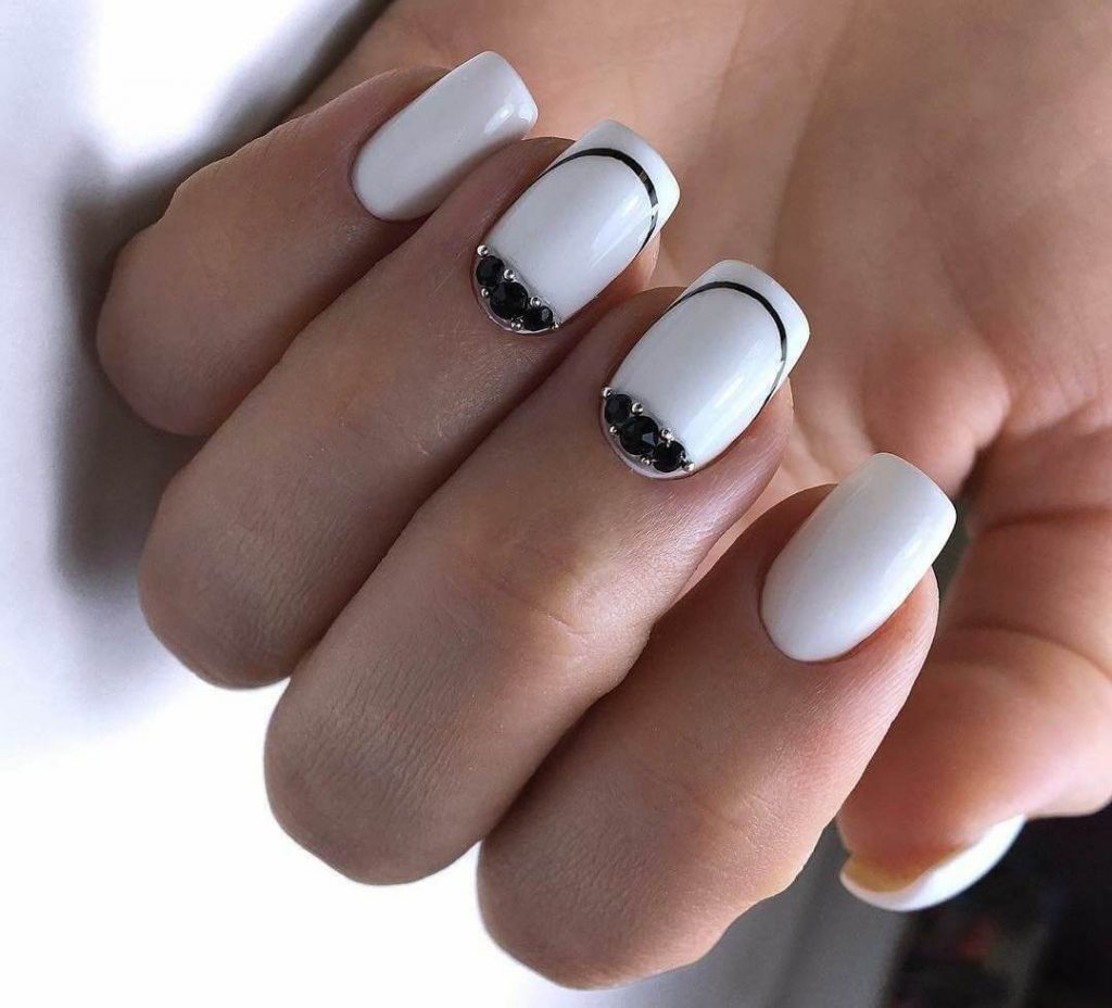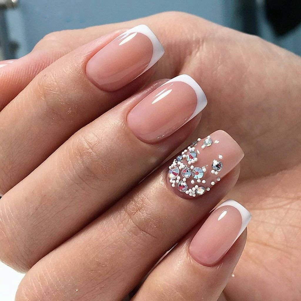 Уже давно ходят споры о том, что использование страз делает маникюр довольно вызывающим и чрезмерным. Но все дело в количестве и размере используемого декора. Если хотите сделать стильный маникюр на короткие ногти с камнями, обратите внимание на самый мелкий их размер. А для декора используйте принцип минимализма. Кроме того, помните, что стразы имеют острые края и могут цепляться за одежду и предметы. Поэтому имеет смысл выделить таким образом один или два ноготка.