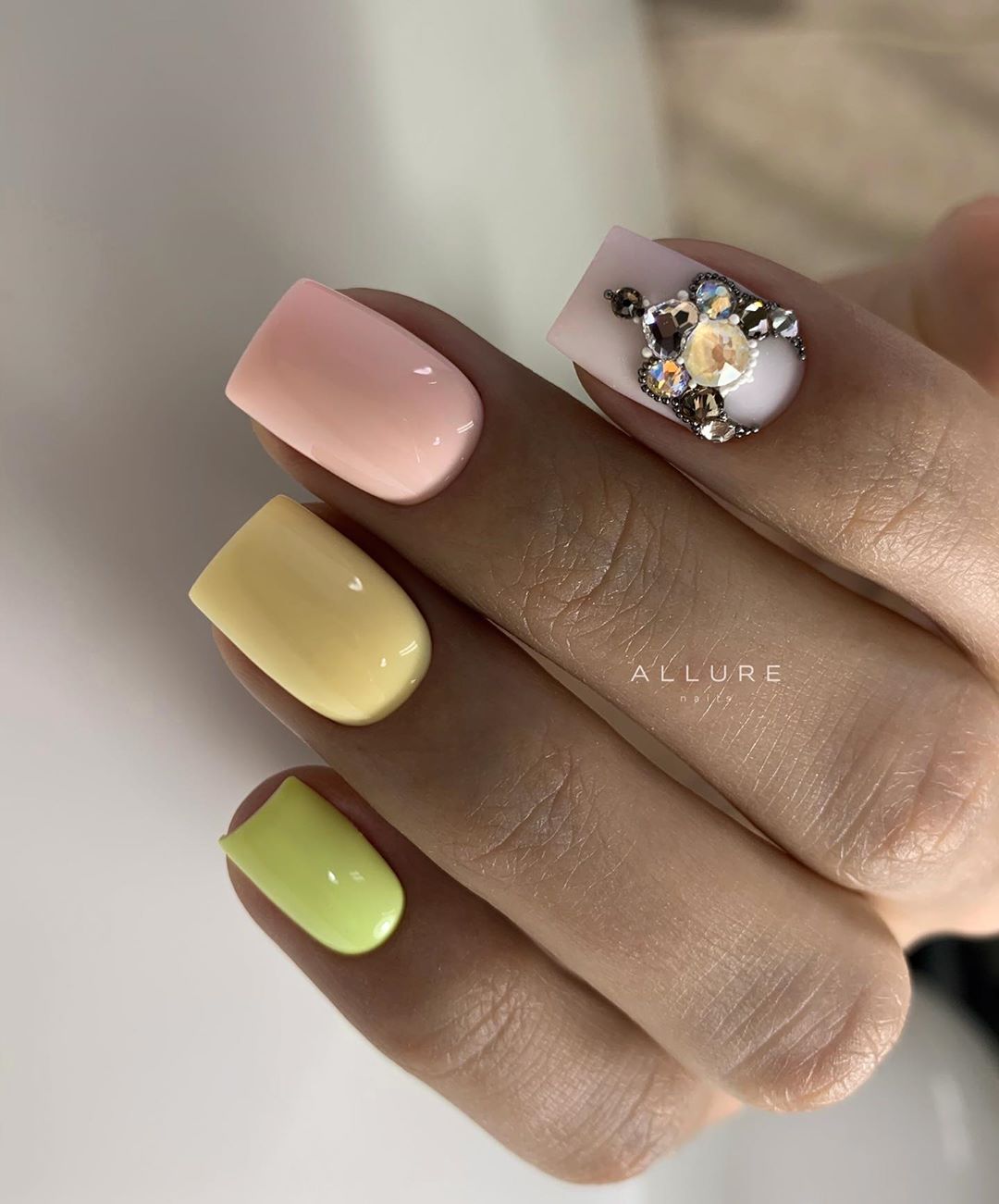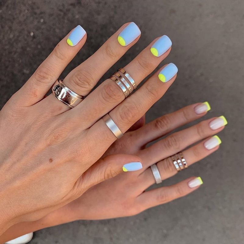 Первое, что приходит в голову — однотонный дизайн. На коротких ухоженных ногтях он смотрится очень стильно и интересно. Учитывая тренд сезона на максимальную естественность, покрыть ноготки вы можете пастельными или нюдовыми оттенками. Но при желании можно сделать маникюр более сочным и ярким. Ориентируйтесь на самые актуальные оттенки сезона, но учитывайте свой цветотип. Это позволит избежать ошибок и изменения оттенка кожи на непривлекательный.