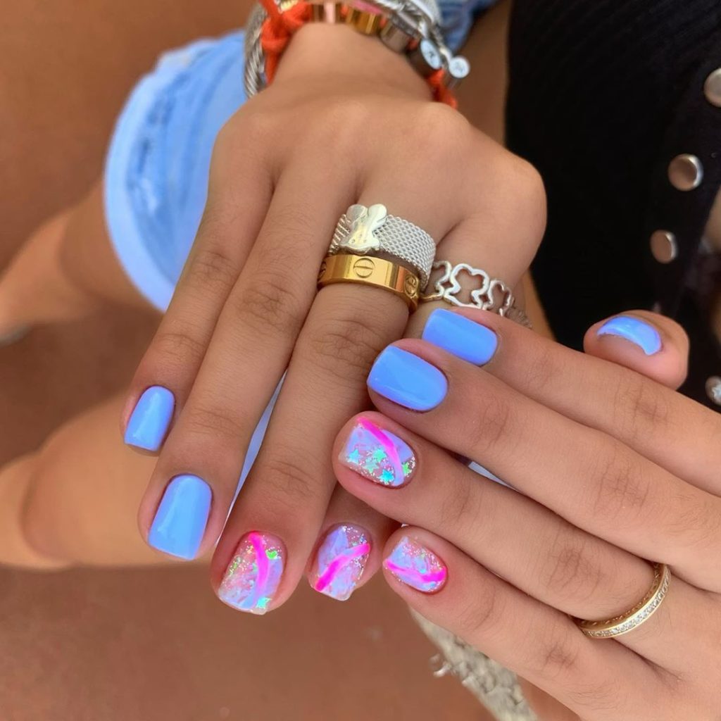 Есть расхожее мнение, что коротким ноготкам идут исключительно пастельные или нюдовые оттенки, а от ярких и сочных стоит отказаться. мастера нейл-арта уверены, что это не так. Для маникюр в этом случае хороши как яркие оттенки, так и близкие к естественным. А вот от электрик и кислотных в повседневной жизни стоит отказаться. Они хороши исключительно для тематических вечеринок и особых образов.