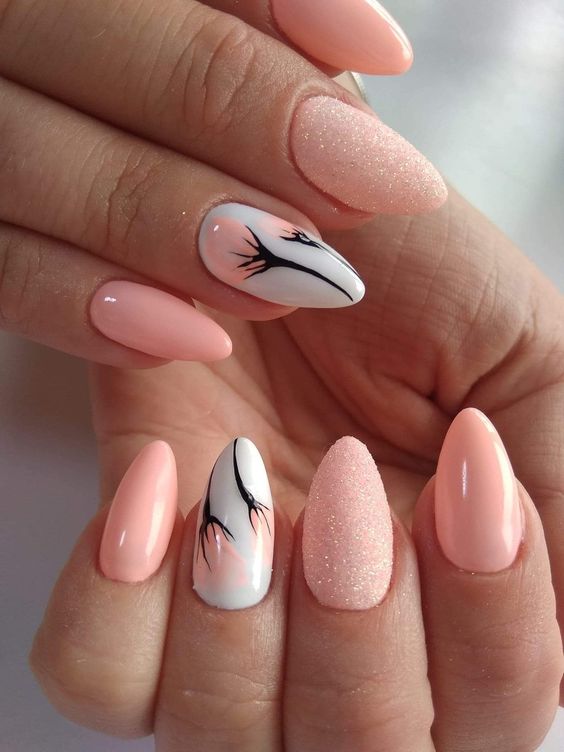 Одним из трендов сезона является чередование формы ногтей. Это вариант для смелых и любящих модные эксперименты девушек. В чем заключается идея? Мастер чередует квадратную и миндалевидную форму пластины в одном маникюре. При этом нейл-мастера стараются разнообразить и сам дизайн, оформляя ноготки разной формы в отличный друг от друга декор.