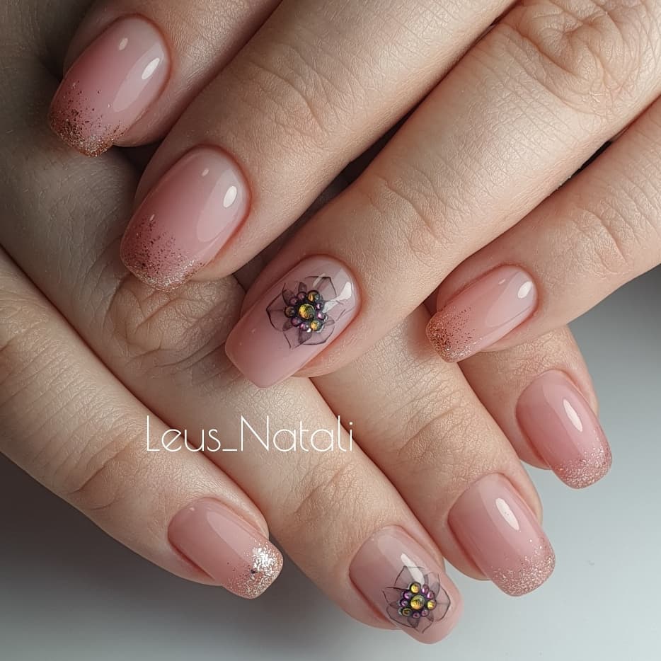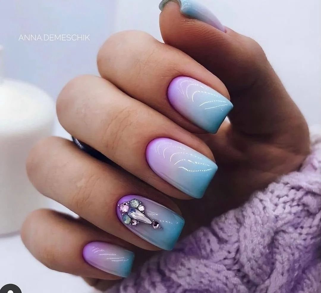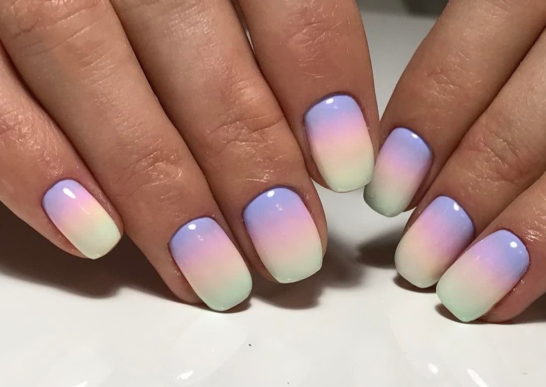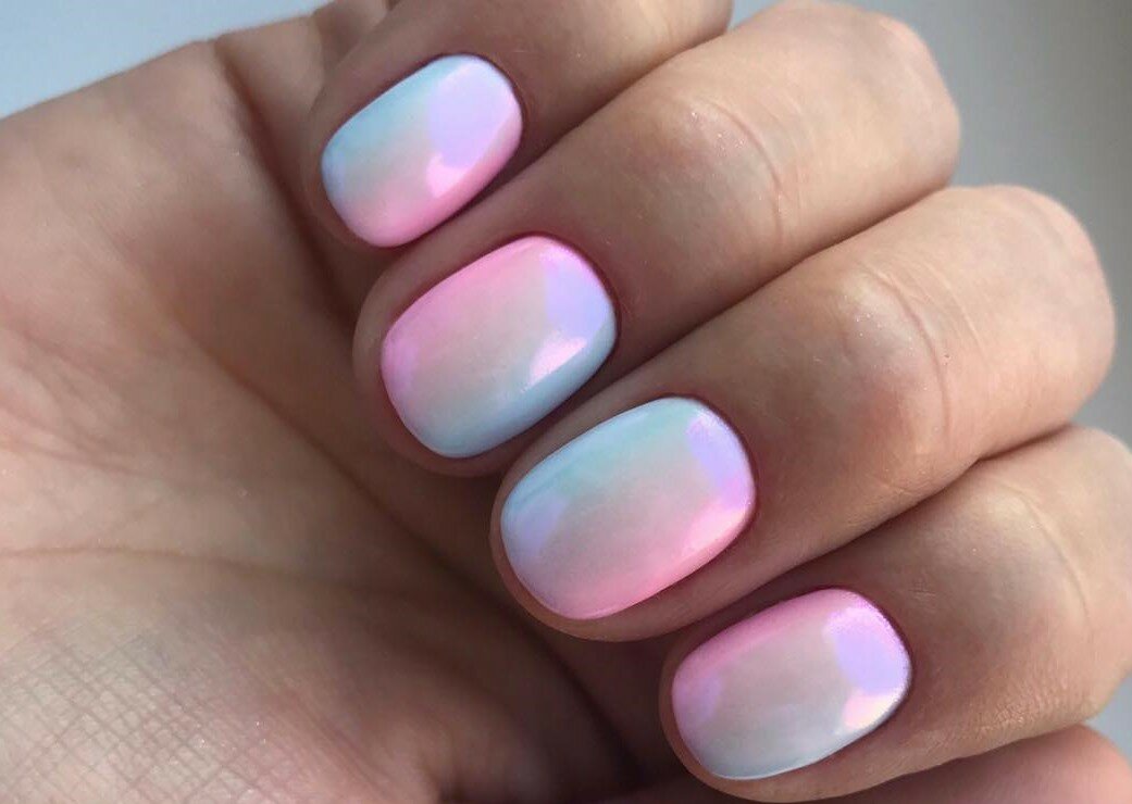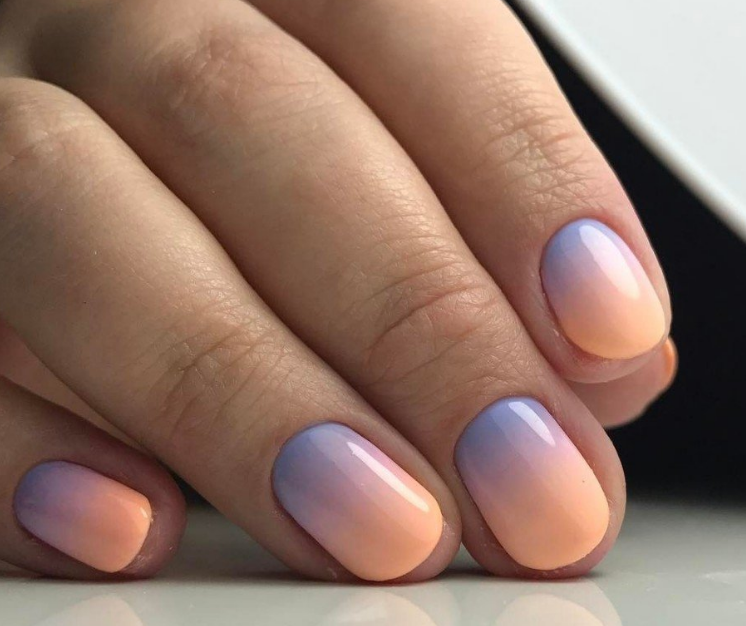 Нежные переходы цвета — возможность сделать очень стильный, но при этом не кричащий маникюр. Как правило для коротких ногтей мастер использует не более трех оттенков. Выбирайте максимально естественные тона, а растягивание цвета должно быть как можно более плавным и без явных переходов.