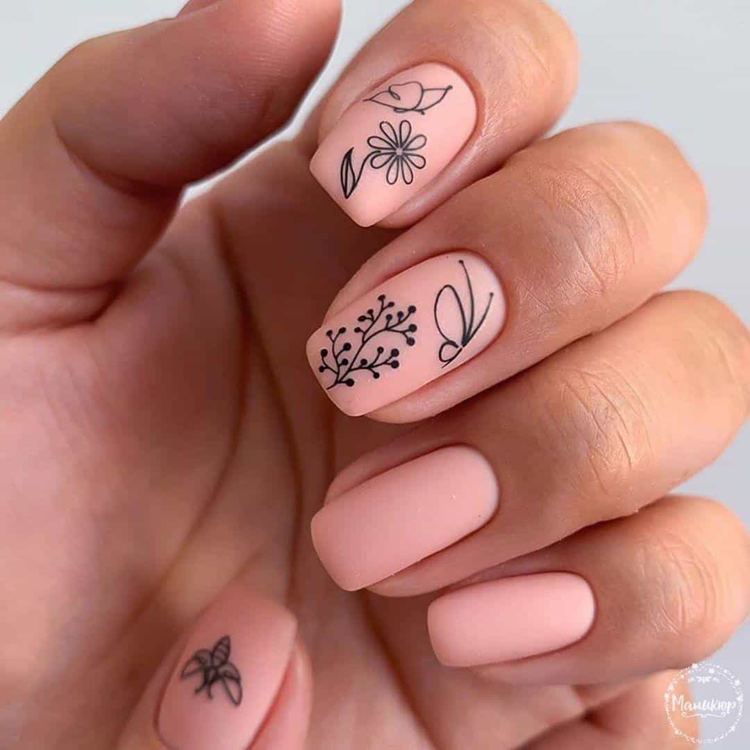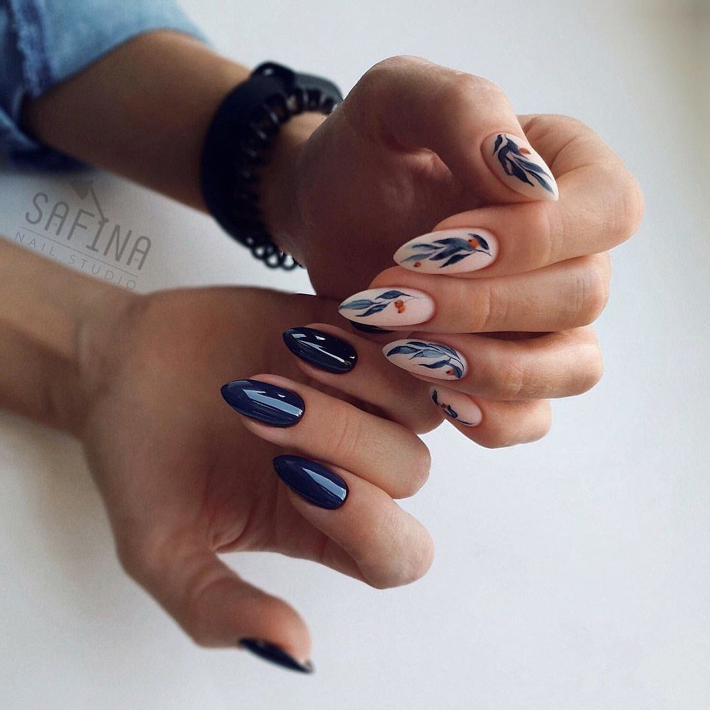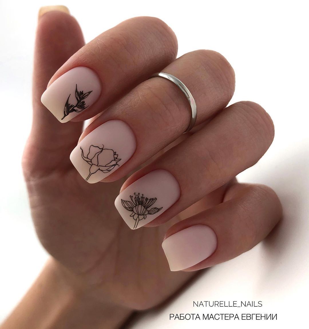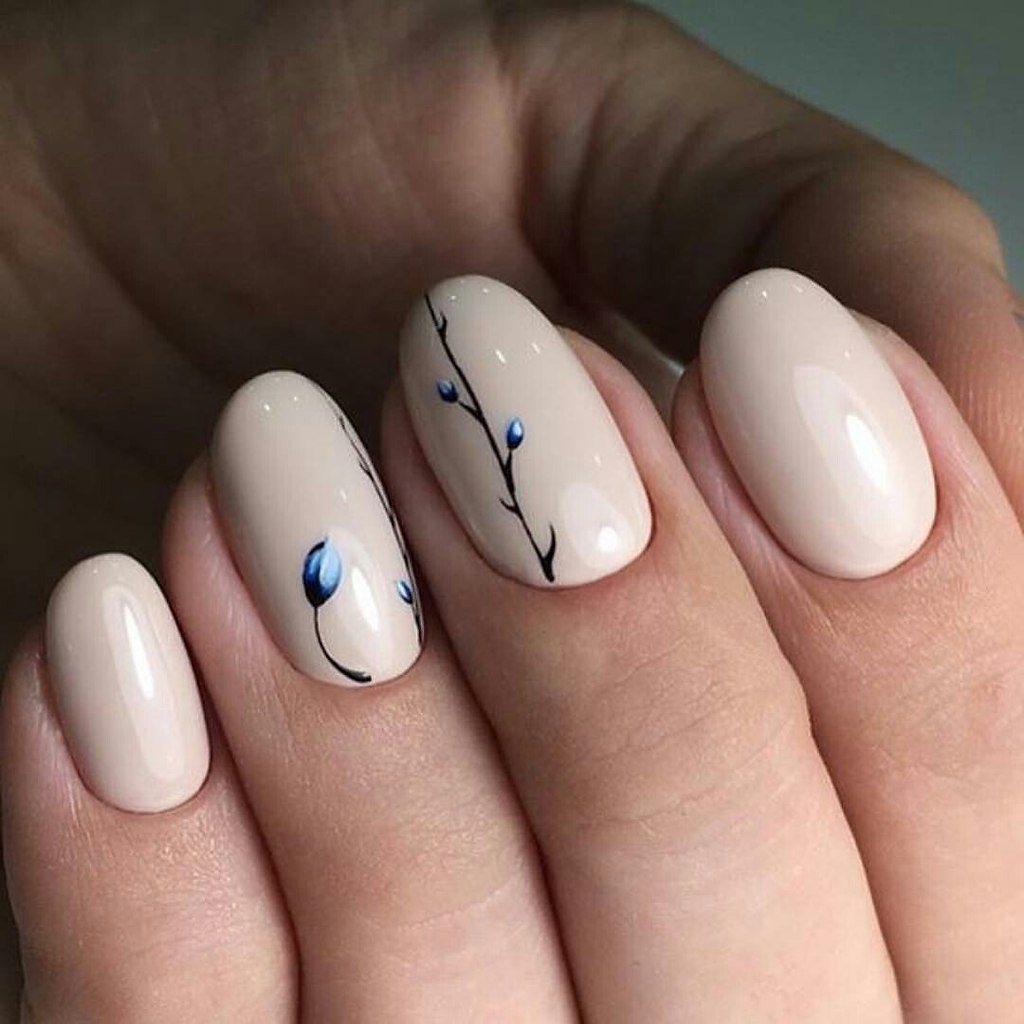 Совет: обратите внимание на стиль минимализм. Весной актуально смотрится дизайн с однотонными ноготками и аккуратными маленькими цветочками. База может быть нейтральной (нюд, молочная) или контрастной — черной, синей, коричневой.