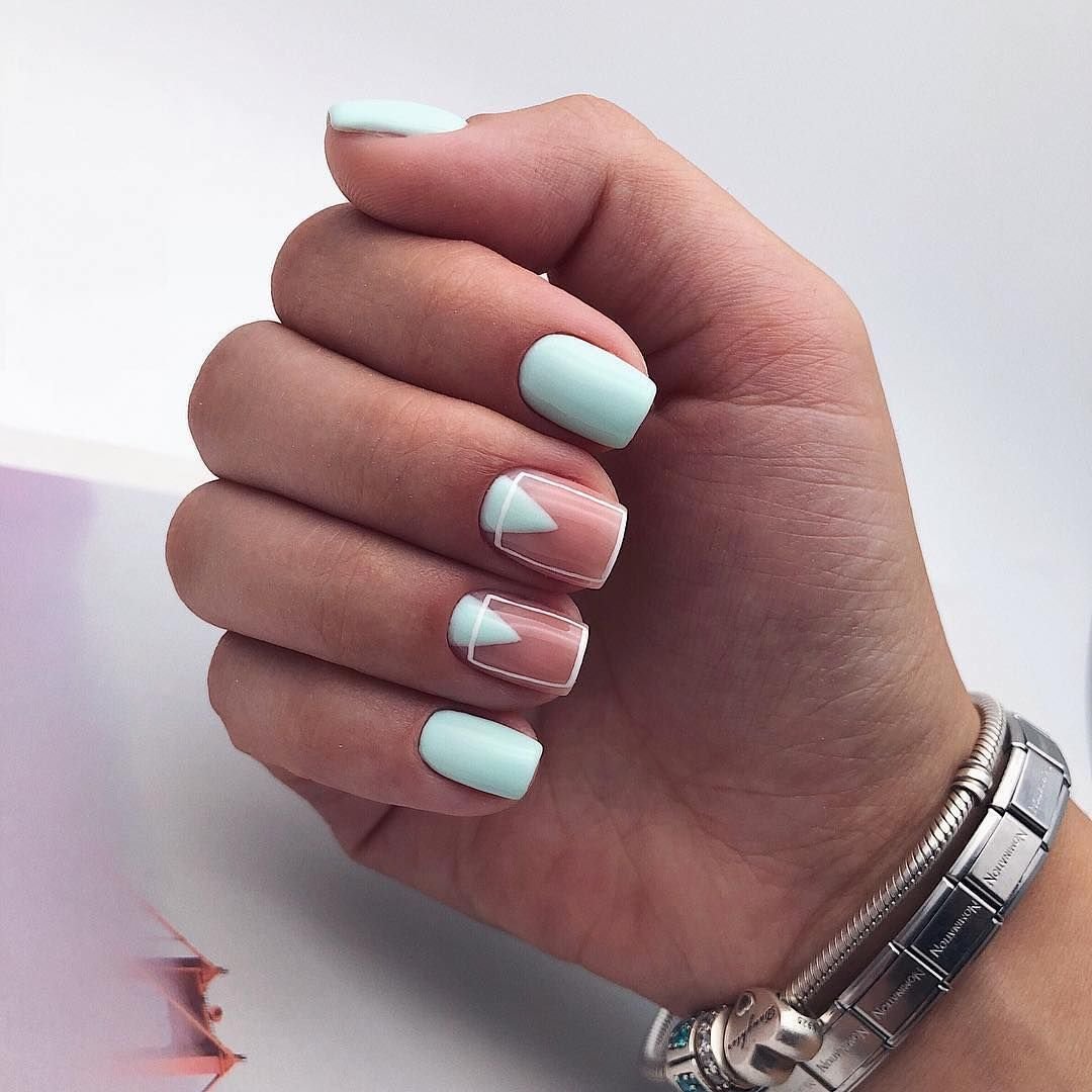 В марте обязательно стоит сделать маникюр в технике негативное пространство. Как и в природе — сходит снег и из-под него появляется первая трава. Так и здесь — голые участки соседствуют с заполненными. На этом фоне отлично смотрится рисунок мелких цветов.