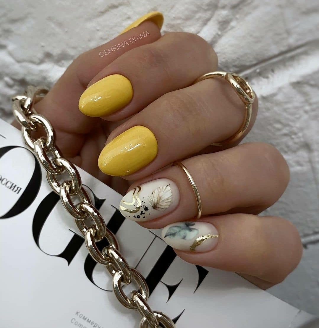 Важно: будьте осторожны с желтыми лаками, если на коже рук есть пигментные пятна или покраснения. Такой яркий акцент привлечет ненужное внимание к проблемной коже.