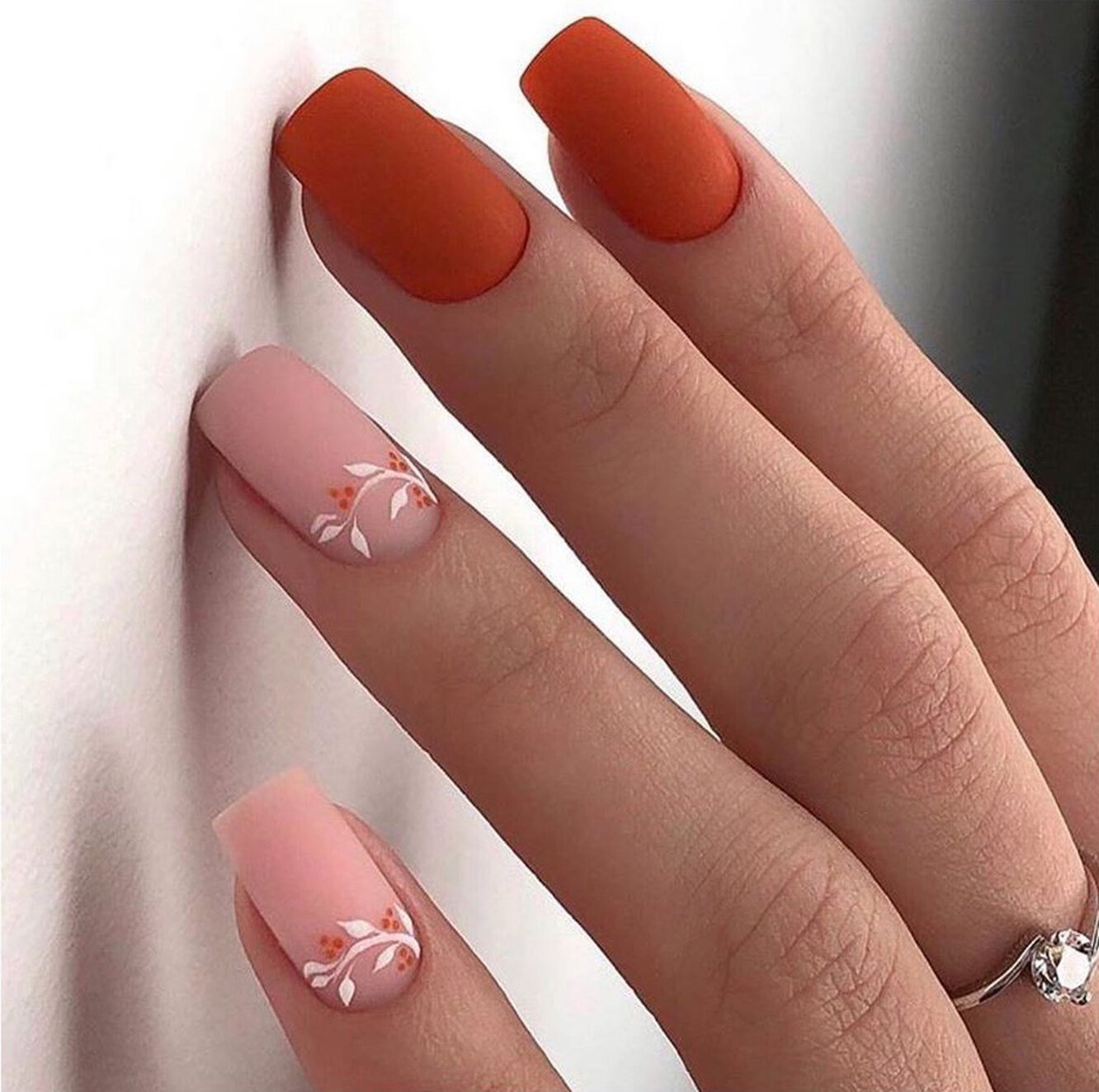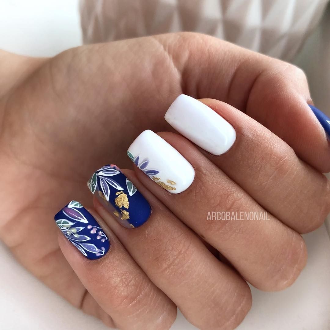 Мастера утверждают, что квадрат в этом сезоне занимает позицию лидера. Форма отлично смотрится с флористическим дизайном. Веточки и цветы помогут визуально вытянут пластину, чтобы сделать кисти рук более изящными. Кстати, на такой форме очень стильно смотрится френч с двойной улыбкой или техника негативное пространство.