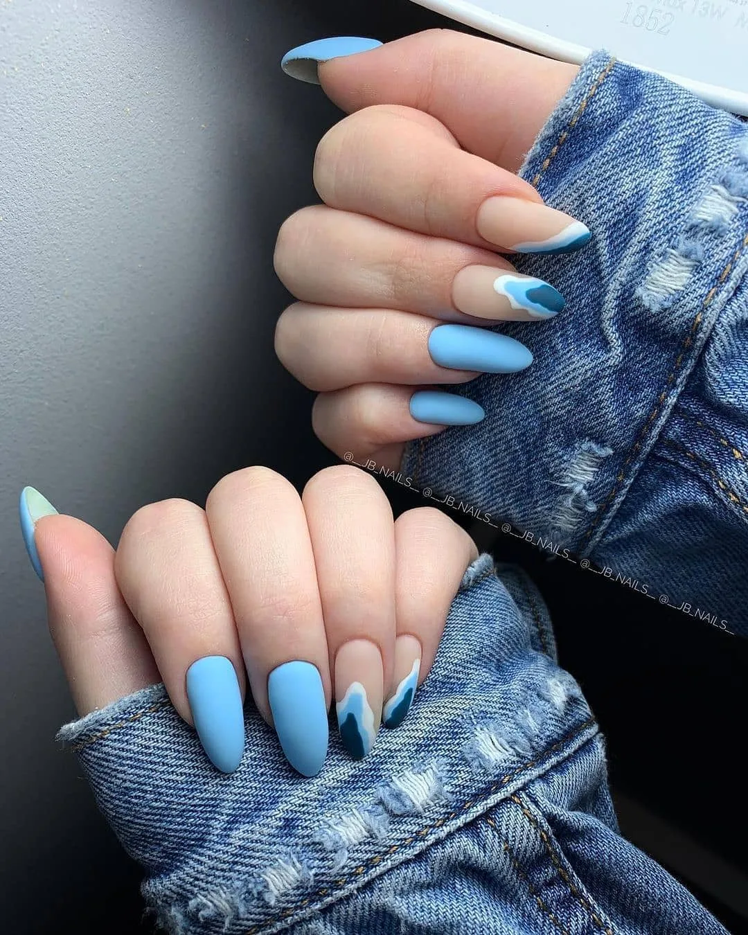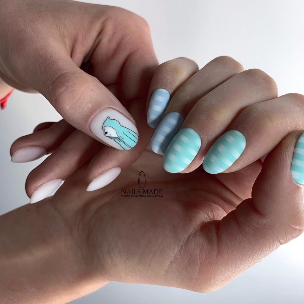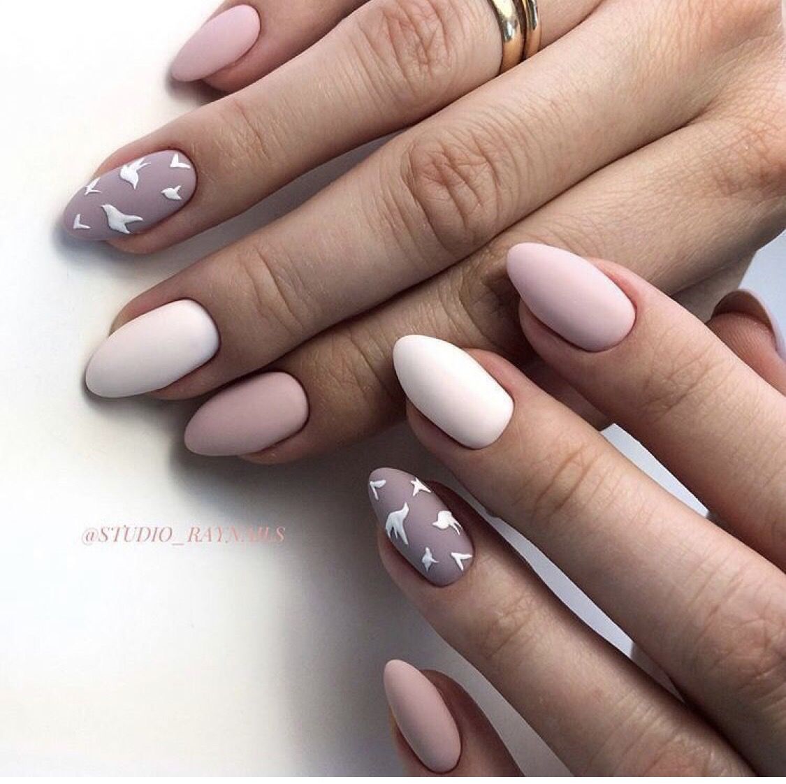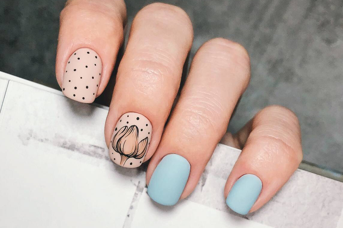 Глянцевый маникюр актуален всегда. А вот матовый, по какой-то причине, многим кажется довольно ограниченным. Бытует мнение, что такая текстура смотрится стильно только на темной базе, а вот нежные ноготки с ее помощью создавать не получится. Это не так. Розовые, персиковые, голубые ноготки смотрятся очень стильно и интересно в матовом исполнении. Дополните их рисунком, стразами или фольгой и у вас получится самый лучший маникюр на март.