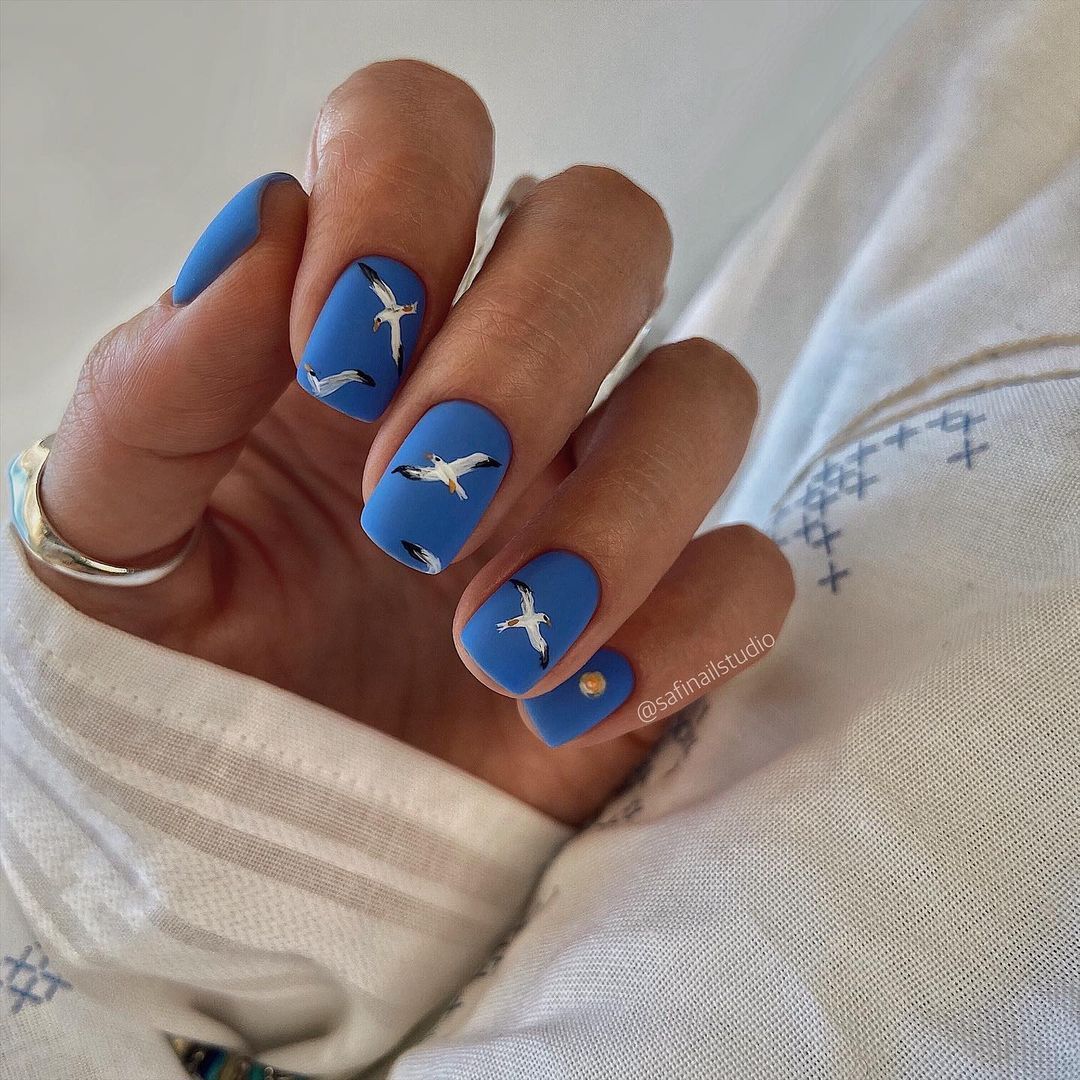 В марте возвращаются перелетные птицы. Стильно и необычно смотрится такой весенний маникюр, если сделать его в стиле минимализм. Не нужно рисовать огромных птиц. Достаточно сделать небольшой акцент на одном или двух ногтях. В домашних условиях можно сделать дизайн с помощью наклеек. На однотонных ноготках достаточно создать очертания летящей птицы и уже сразу повеет весной.