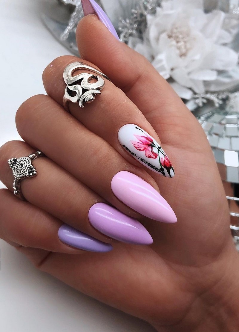 Весной дизайнеры предлагают эксперименты. Если раньше вы практически не обращали внимание на фиолетовые оттенки, теперь пришло время. Только не выбирайте густые и темные тона. В моде так называемая «фиолетовая свекла». Это оттенок как нельзя лучше подходит для маникюра в марте. Хотя многие отмечают, что визуально его можно отнести ближе к фуксии. Одним словом — сиреневый, лаванда, фуксия, все нежные оттенки розового — вот что нужно для маникюра в марте.