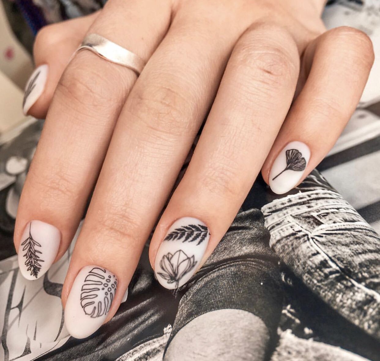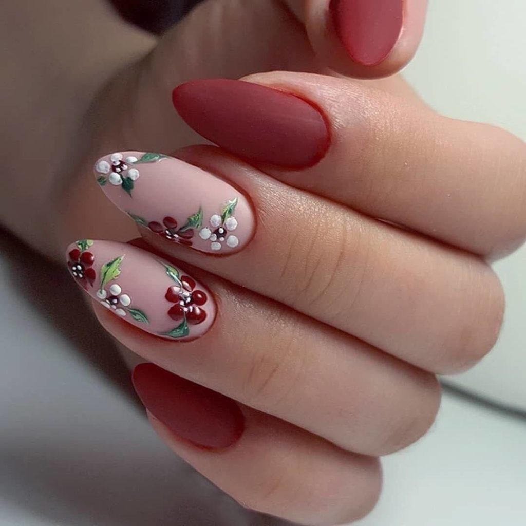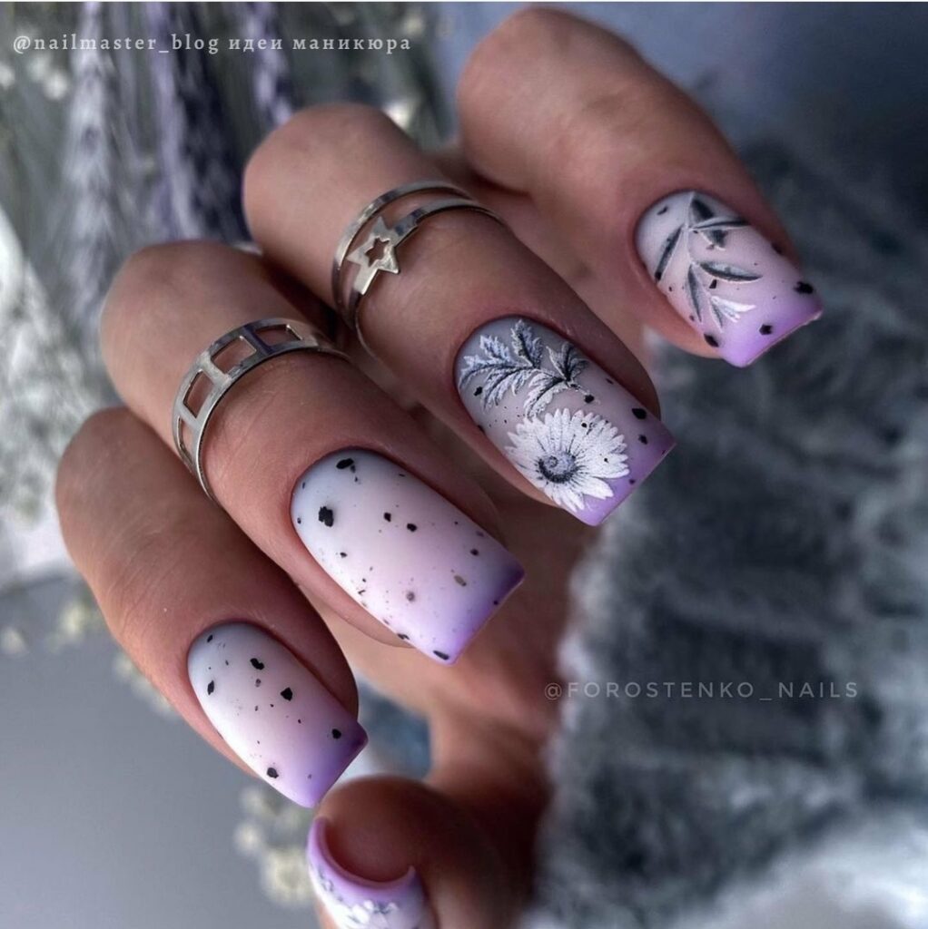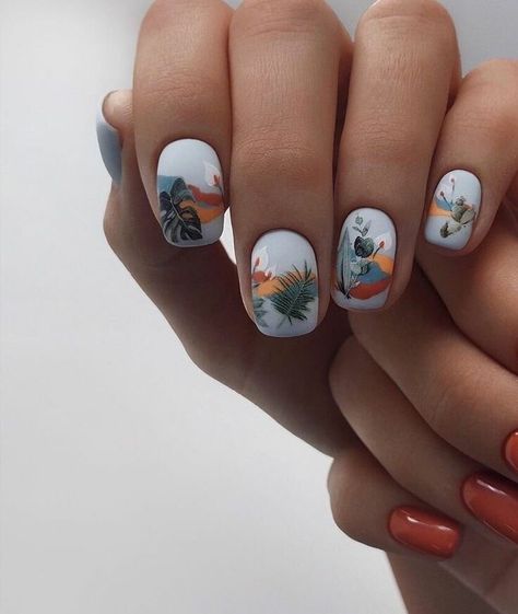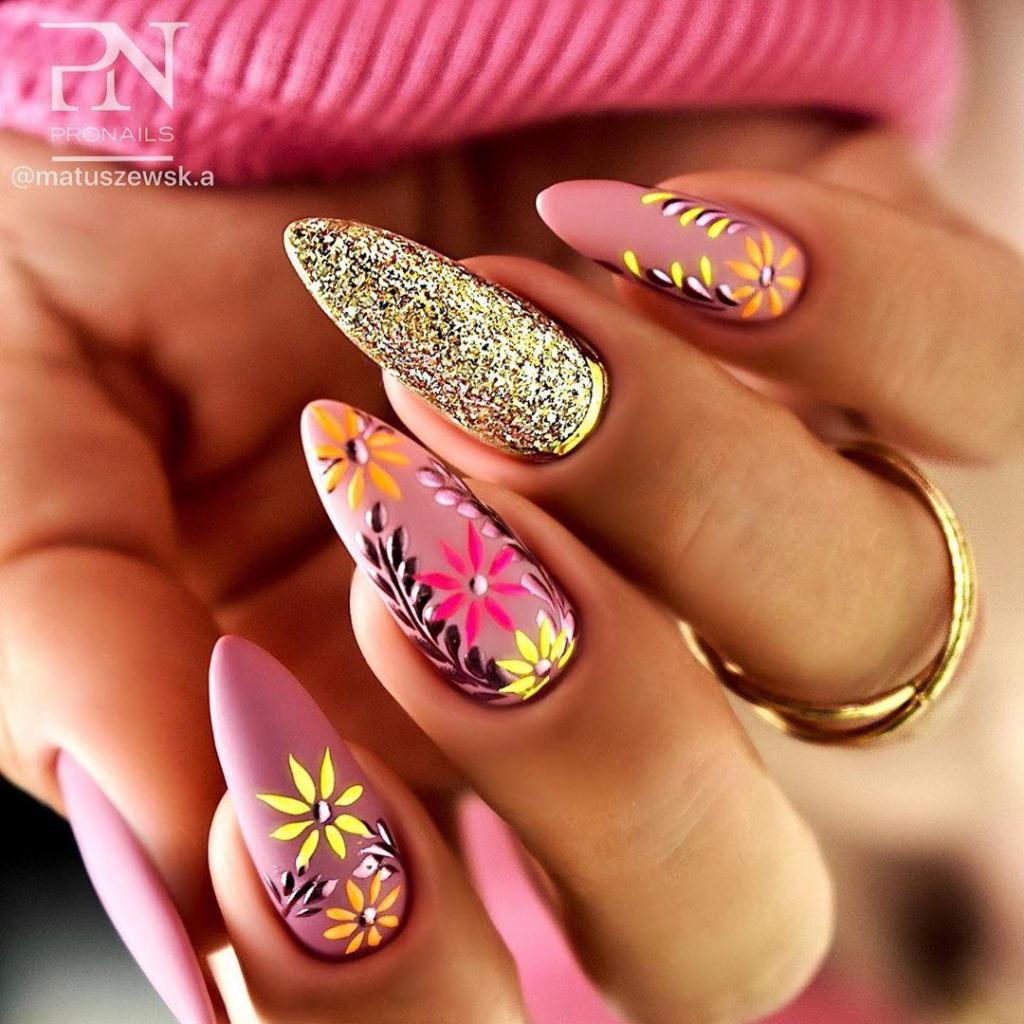 Цветы и другая флористика — самый актуальный вариант для маникюра в мае. Вы можете отдать предпочтение скромным минималистичным рисунками или сделать дизайн «под обои», когда на ноготки наносят богатый густой рисунок цветов с симметричным исполнением. Такой дизайн лучше всего смотрится на матовой темной основе.