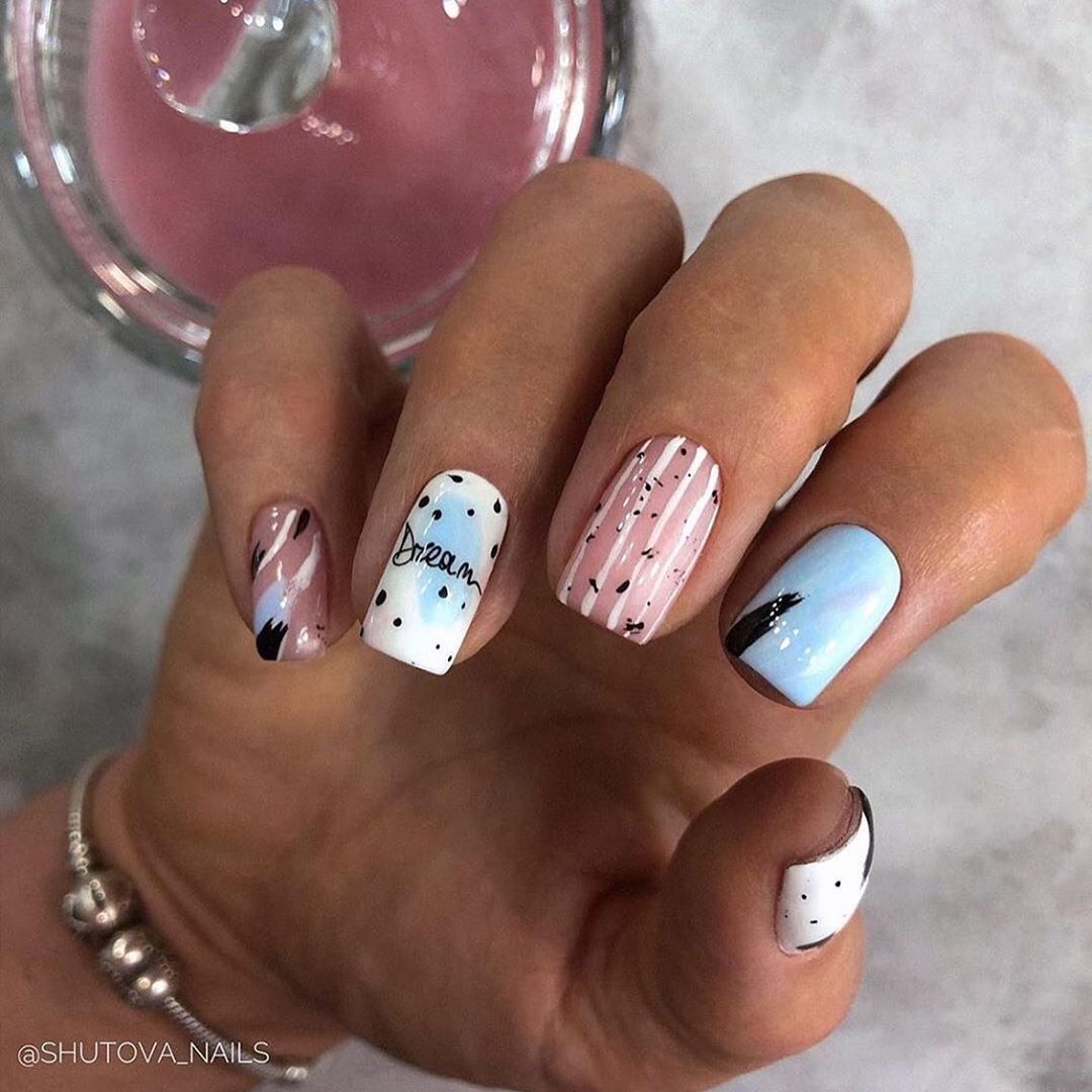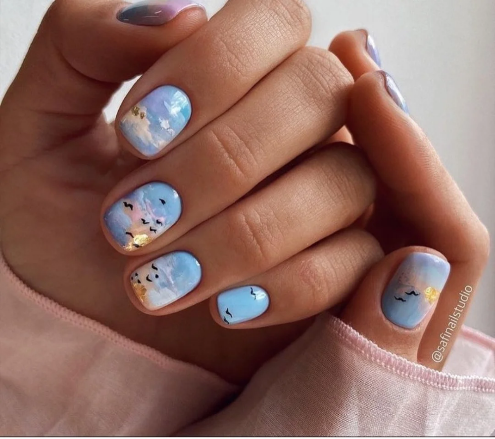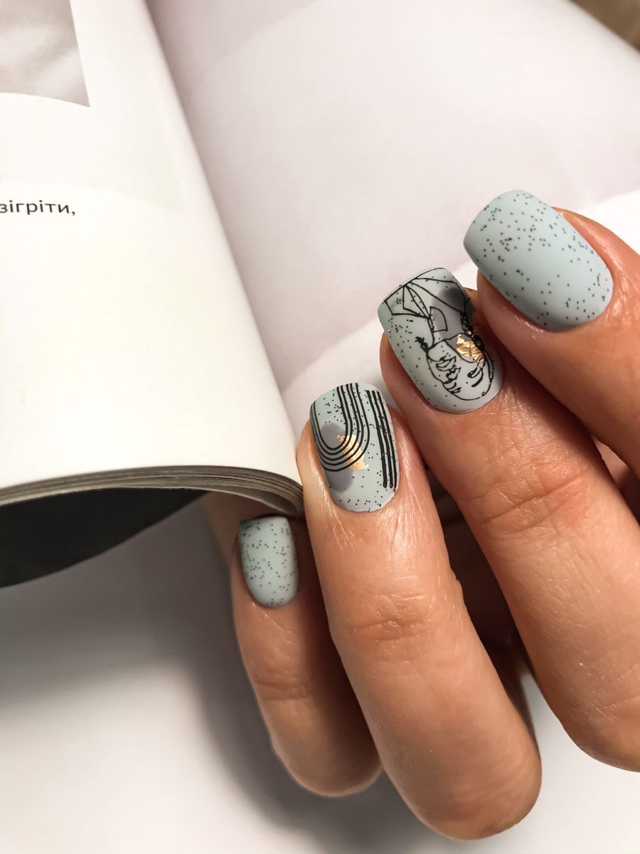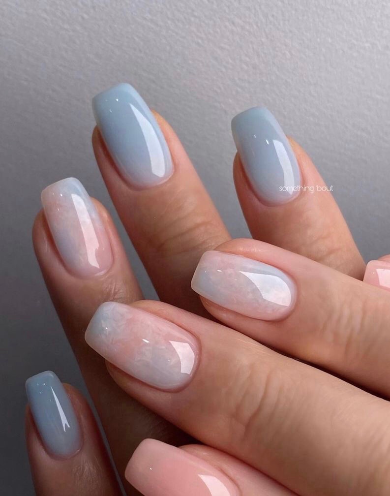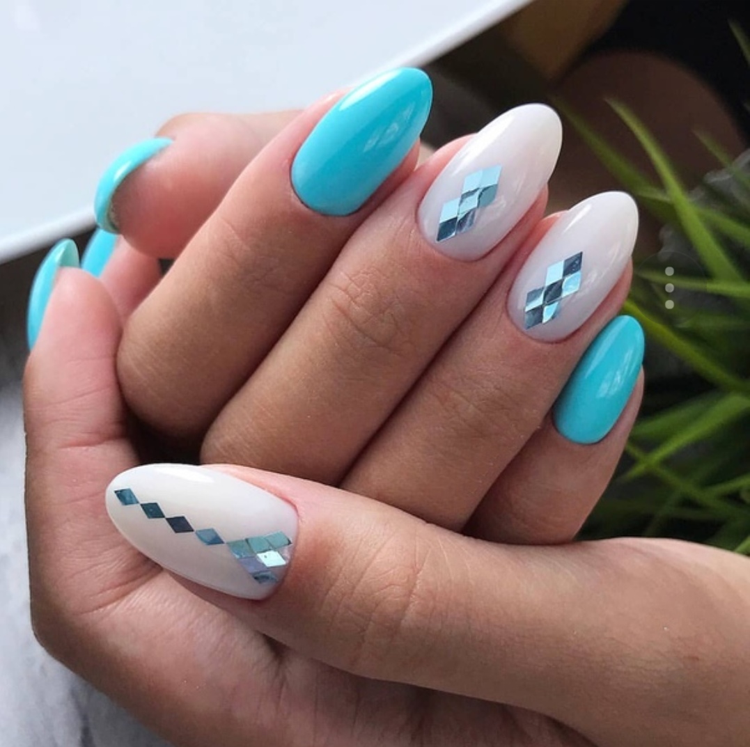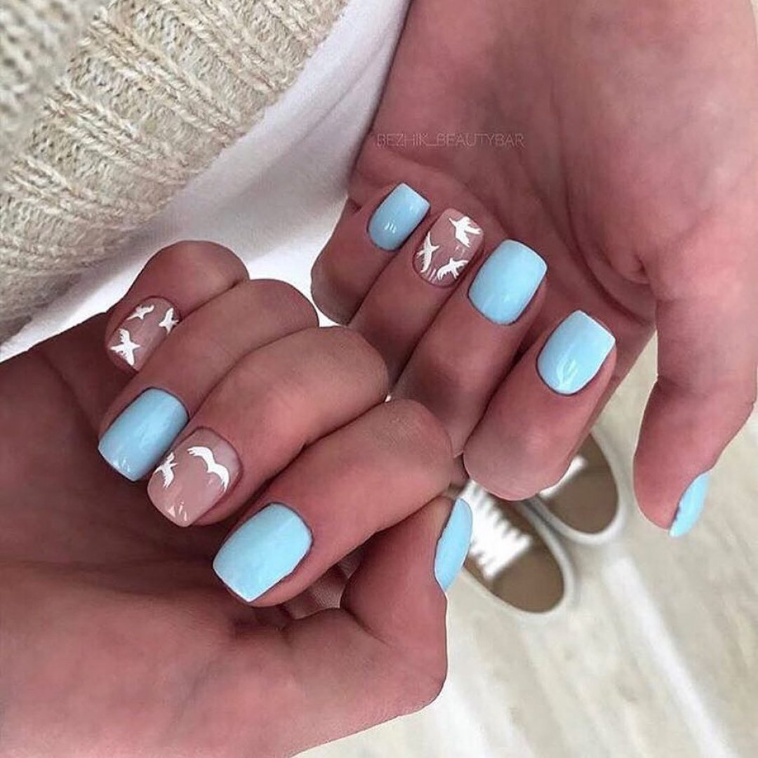 Нежное майское небо обязательно найдет отражение в весеннем маникюре. Добавьте немного серебра или розового цвета и получится нежнейший женственный маникюр.