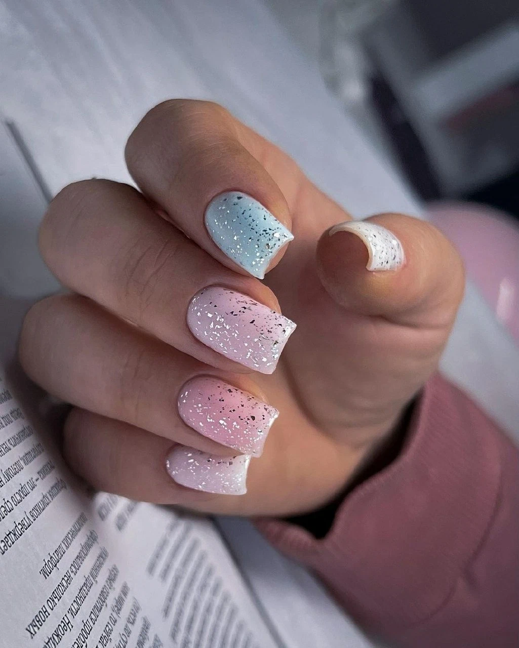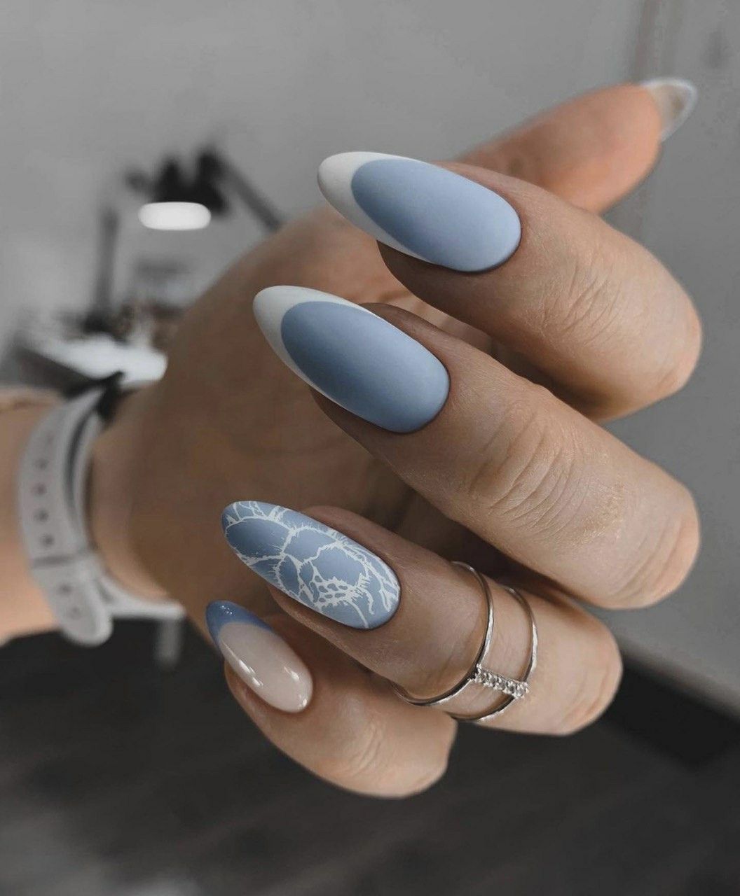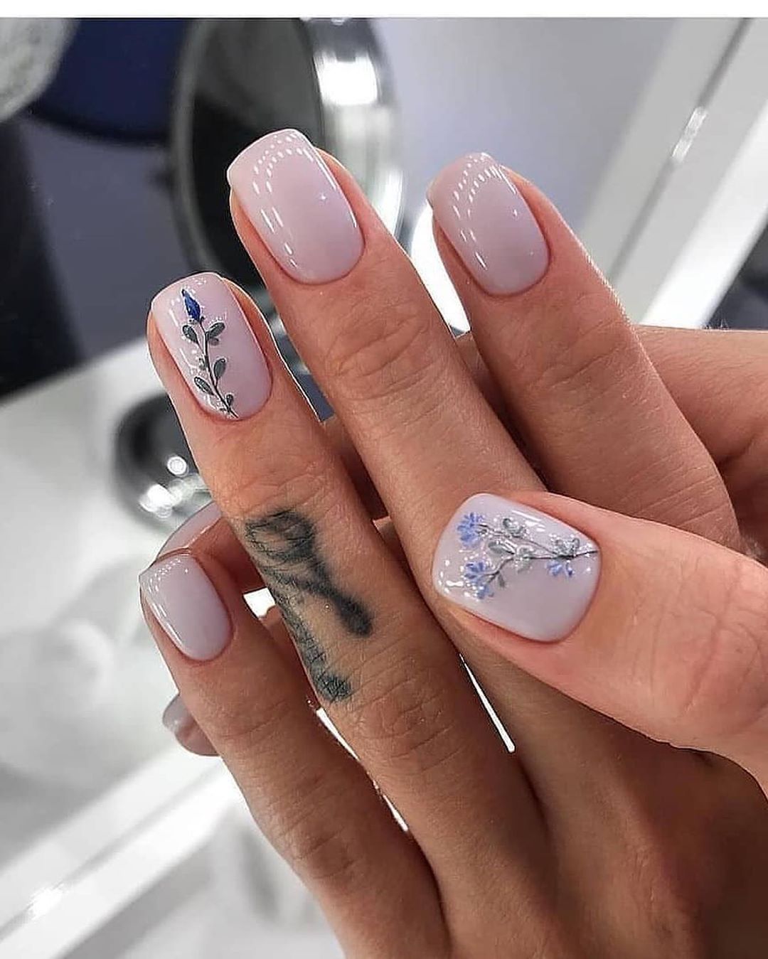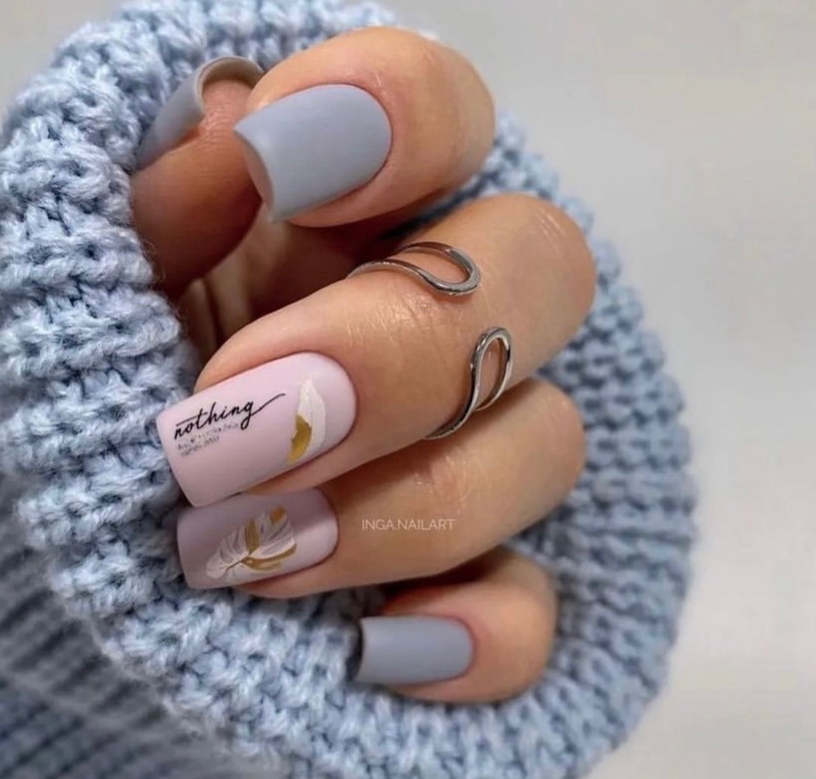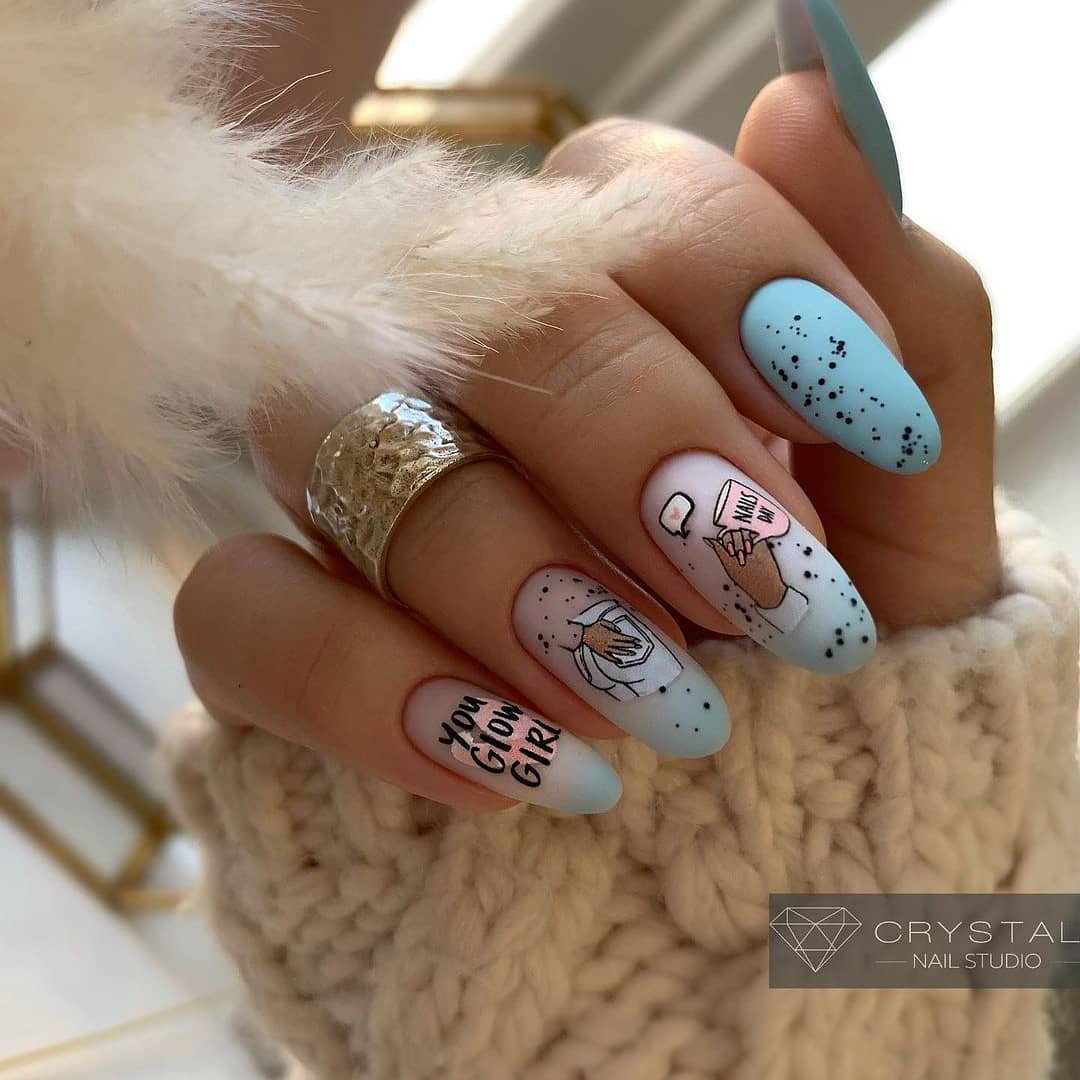 Нежное майское небо обязательно найдет отражение в весеннем маникюре. Добавьте немного серебра или розового цвета и получится нежнейший женственный маникюр.