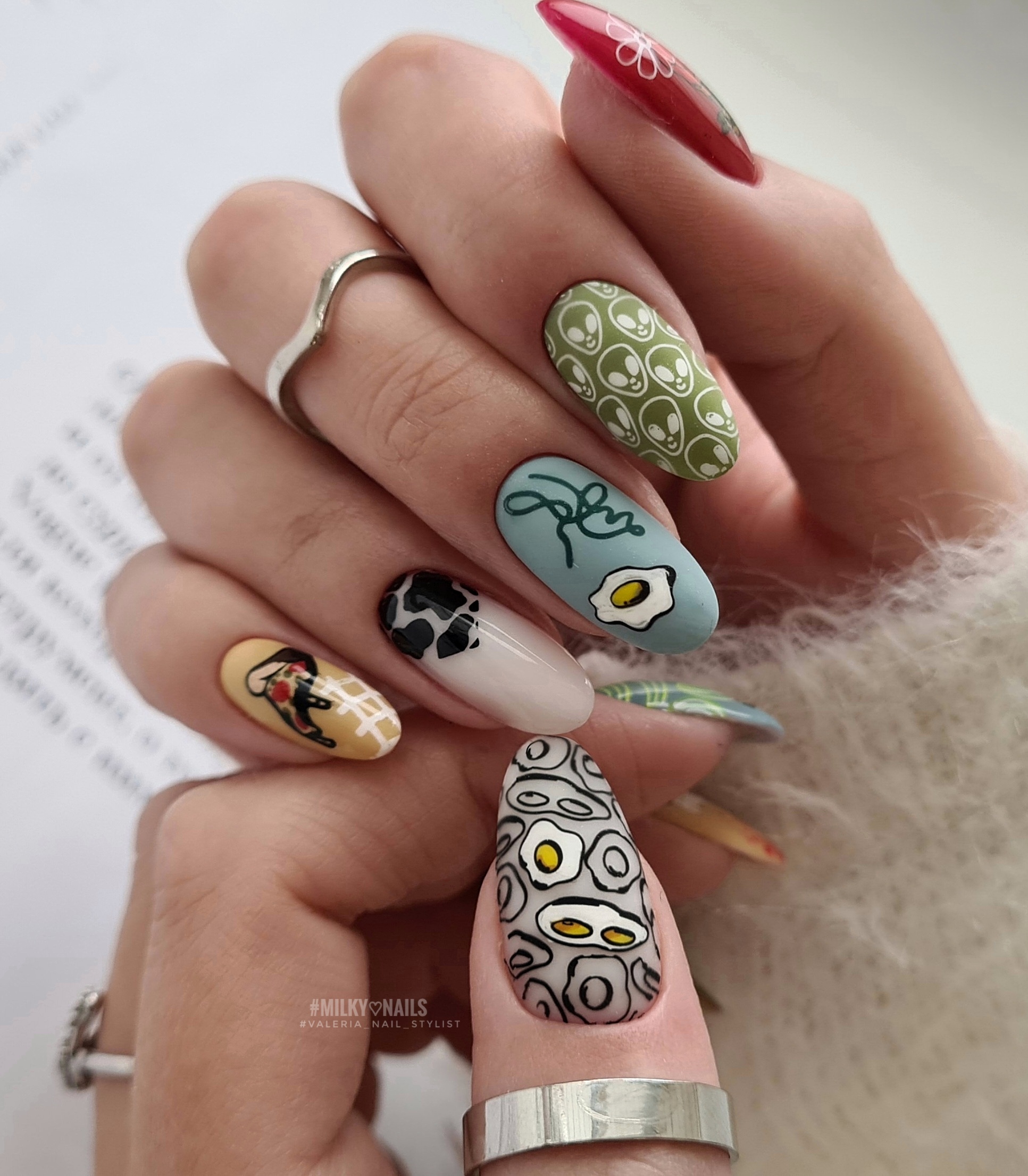 Хотите чего-то необычного и даже игривого? Май — самое время для того, чтобы сделать маникюр в стиле разные руки. Этот прием появился не так давно, но сразу завоевал популярность среди модниц. Идея в том, чтобы оформить руки в разном стиле. Например, ногти на одной выполнить в однотонном варианте, а на ногти второй нанести рисунок. Другой вариант — рисунки на всех ноготках, но никакой симметрии и порядка.
