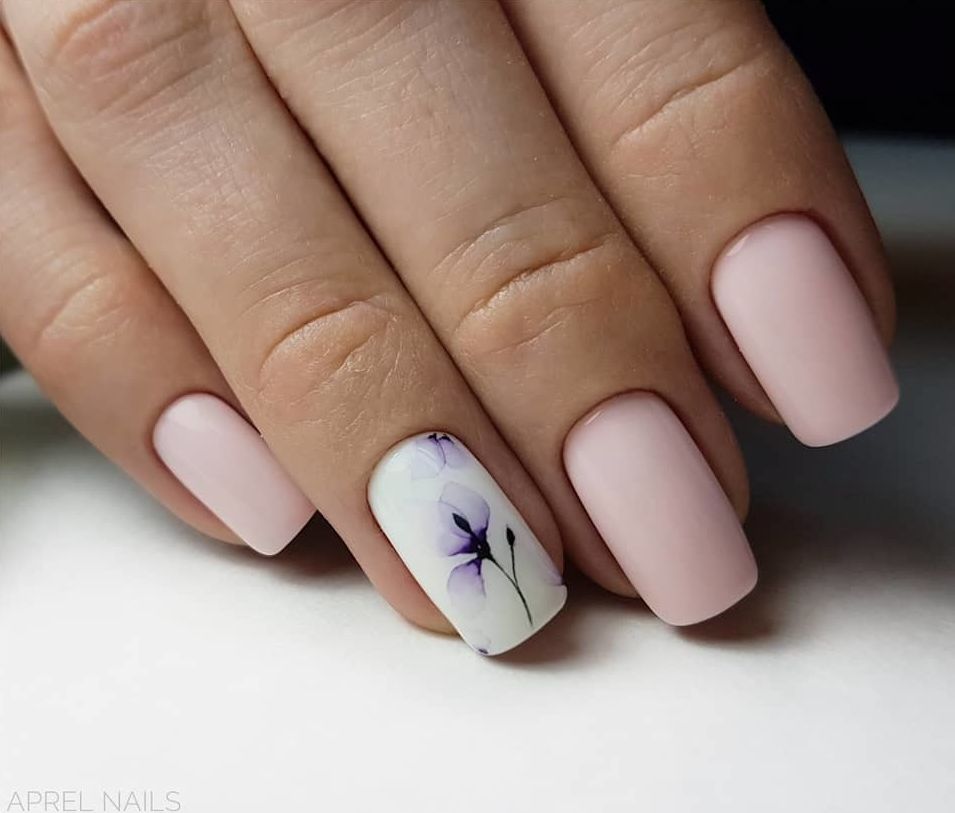 Глянцевые ноготки актуальны всегда, но в мае мы рекомендуем обратить внимание на нежные пастельные оттенки в матовом исполнении. Такую базу можно оставить нетронутой. Все дело в том, что бархатистое покрытие само по себе выглядит стильно и дорого. Но при желании вы можете дополнить его стемпингом, наклейками. рисунком или фольгированными акцентами.