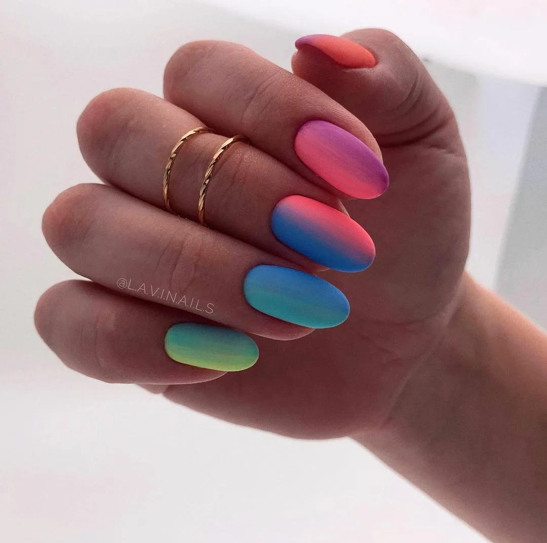 Весной, особенно в мае, природа предлагает нам буйство красок. Почему бы не повторить этот прием в маникюре? Кстати, а вы знаете чем отличается дизайн с названием омбре от градиента? Фактически, это один и тот же вариант дизайна. Только градиент — это более общее понятие. Омбре имеет более плавные переходы. Обратите внимание на то, что трендовый маникюр омбре в мае лучше сделать вертикальным или растянуть цвет по пальцам руки. Хотя и классическое исполнение имеет место в трендах.