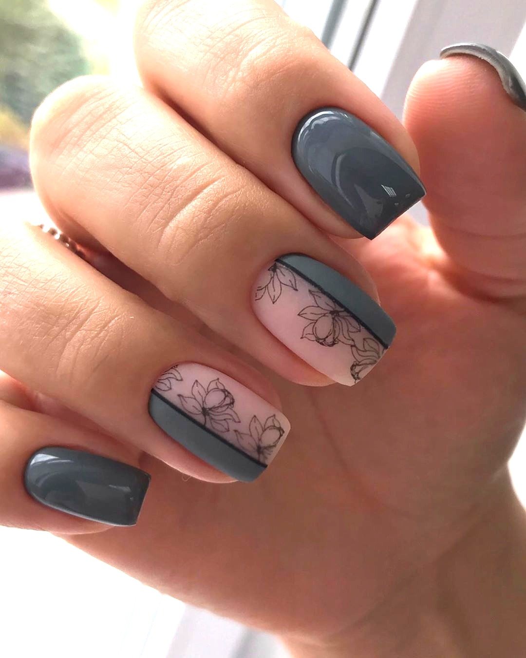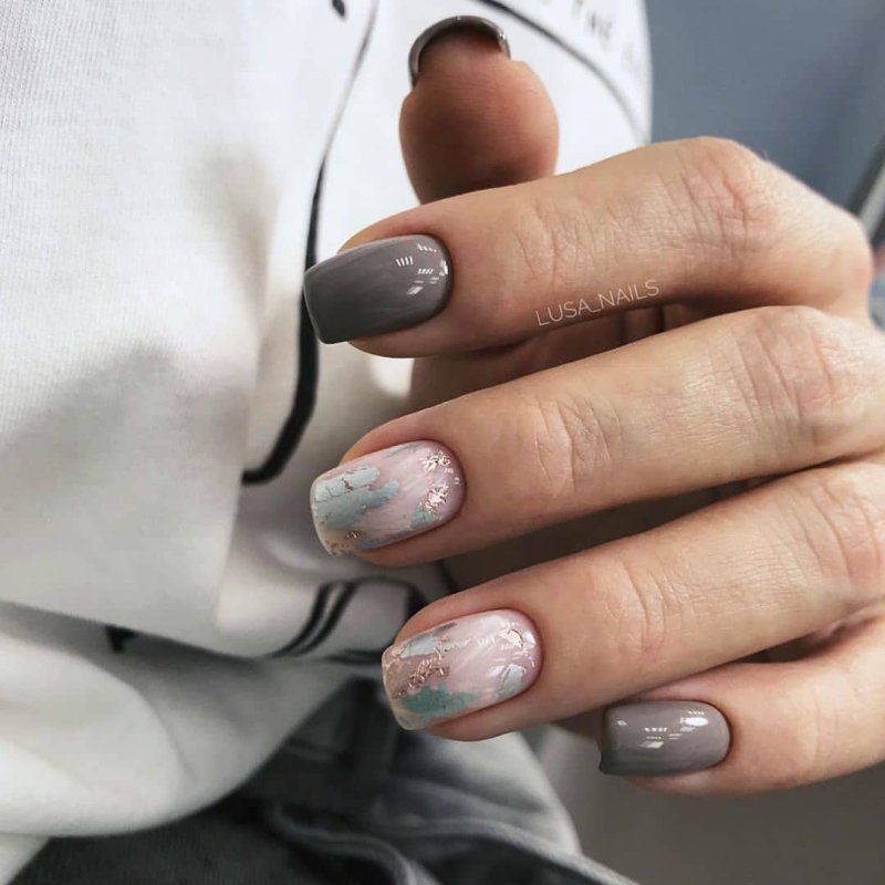 Не стоит думать, что серый оттенок не подходит для весны. В мае мы рекомендуем обратить внимание на серые тона с розовым, сиреневым, голубым подтоном. При выборе особое внимание обратите на свой цветотип. С серым отлично смотрится серебристый дизайн и нежные рисунки.
