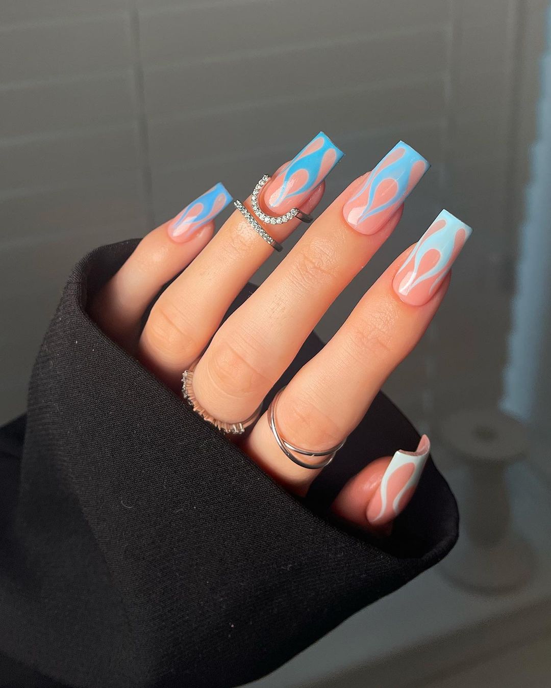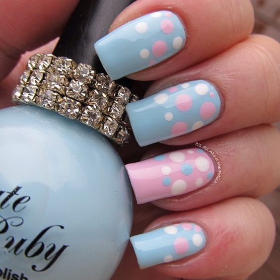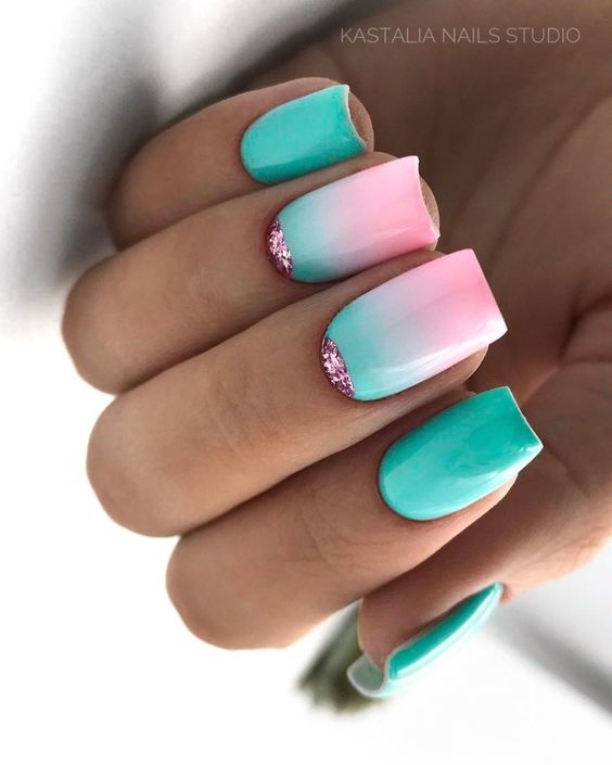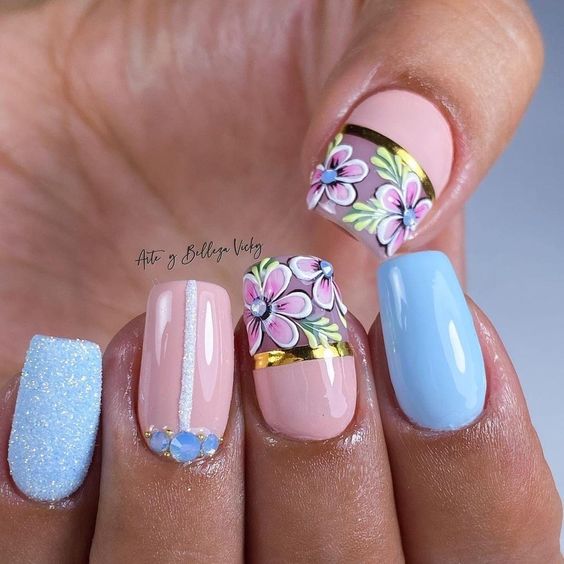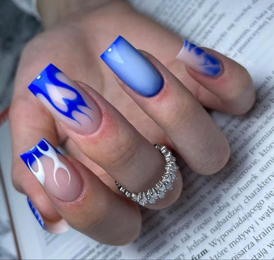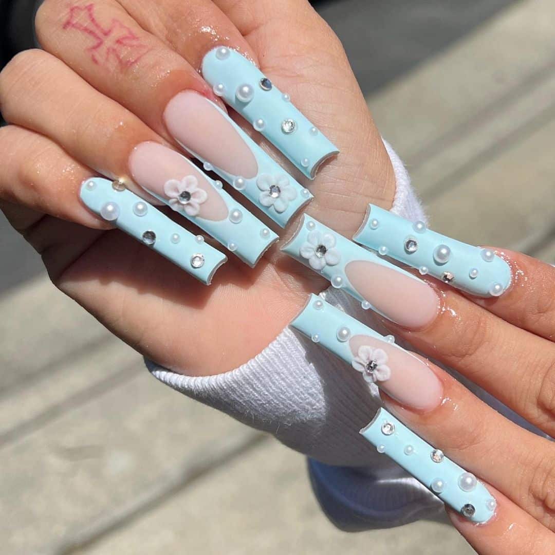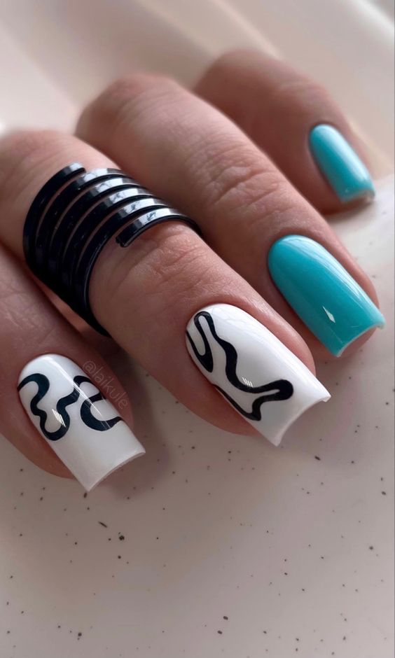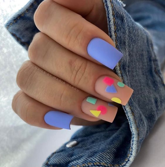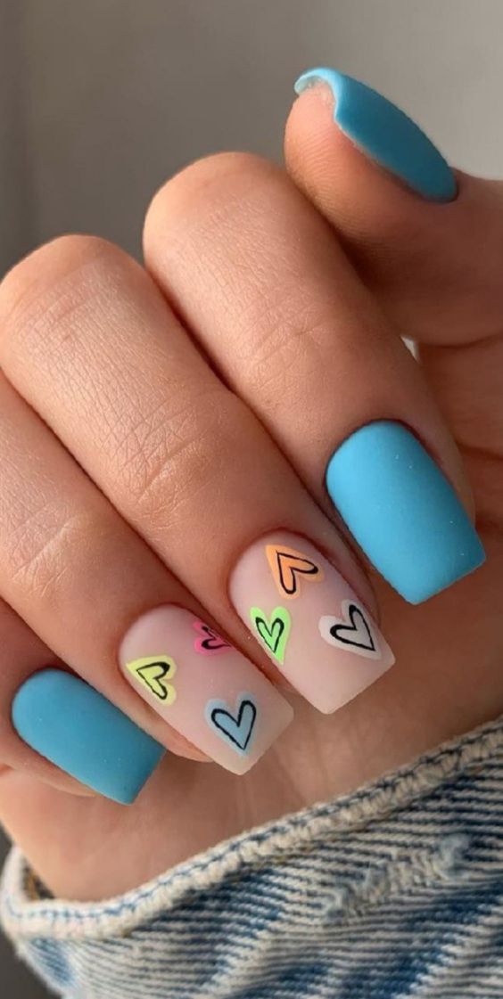 Голубой — это очень нежный маникюр, который подойдет обладательницам холодного цветотипа. Хотя в богатой палитре этого оттенка вы найдете и тот, который подойдет брюнеткам или рыжим модницам. Для мягкого квадрата подходят практически все варианты дизайна. Ограничением здесь будет только ваша фантазия.