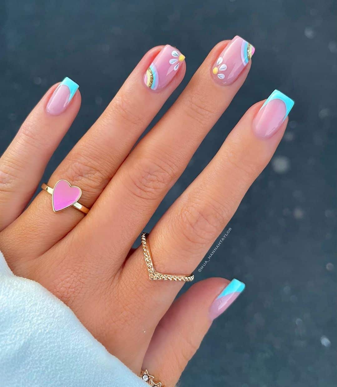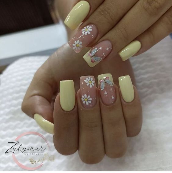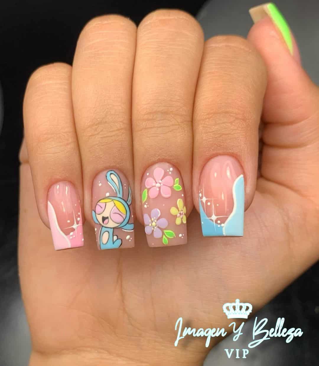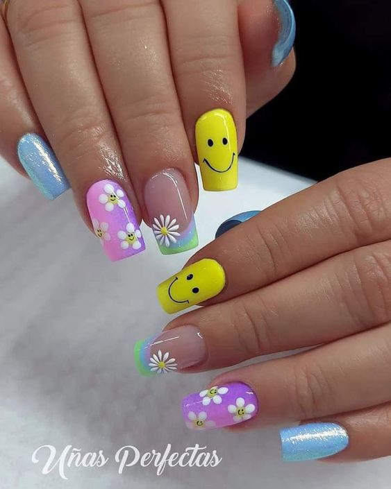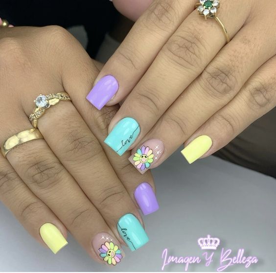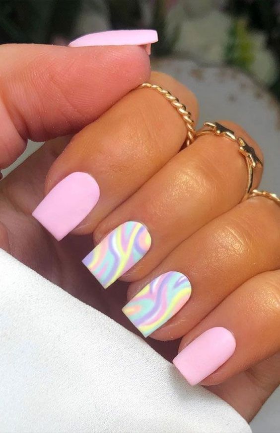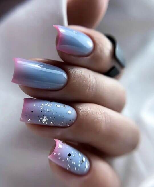 Голубой — это очень нежный маникюр, который подойдет обладательницам холодного цветотипа. Хотя в богатой палитре этого оттенка вы найдете и тот, который подойдет брюнеткам или рыжим модницам. Для мягкого квадрата подходят практически все варианты дизайна. Ограничением здесь будет только ваша фантазия.