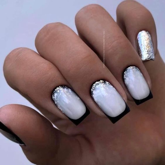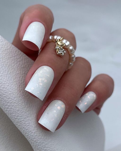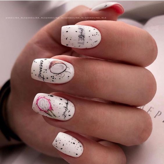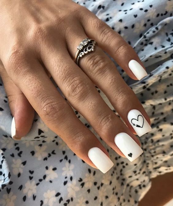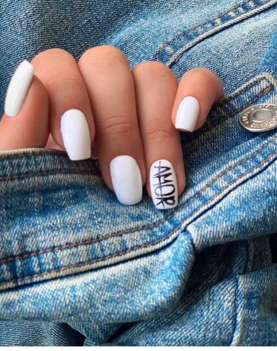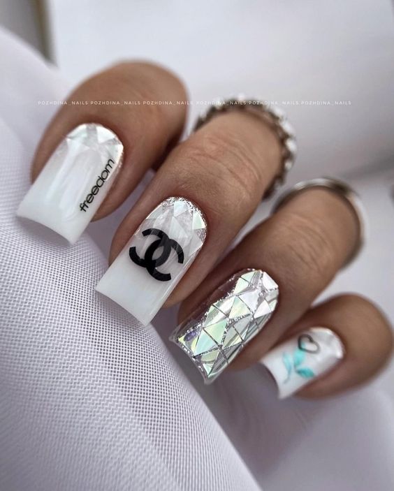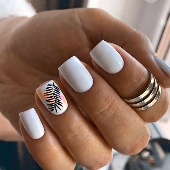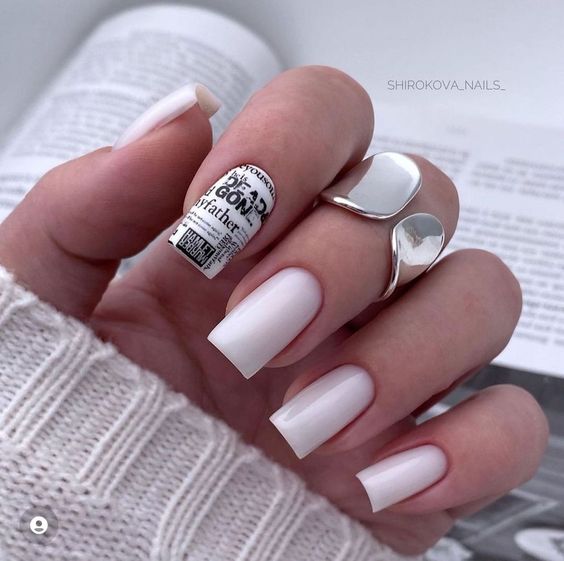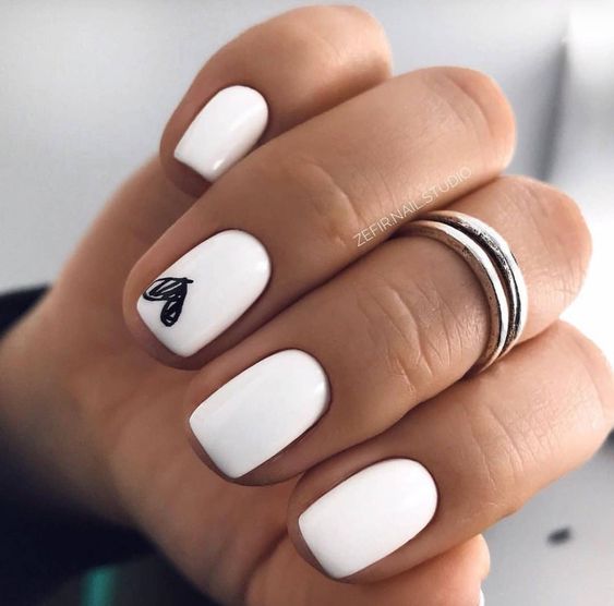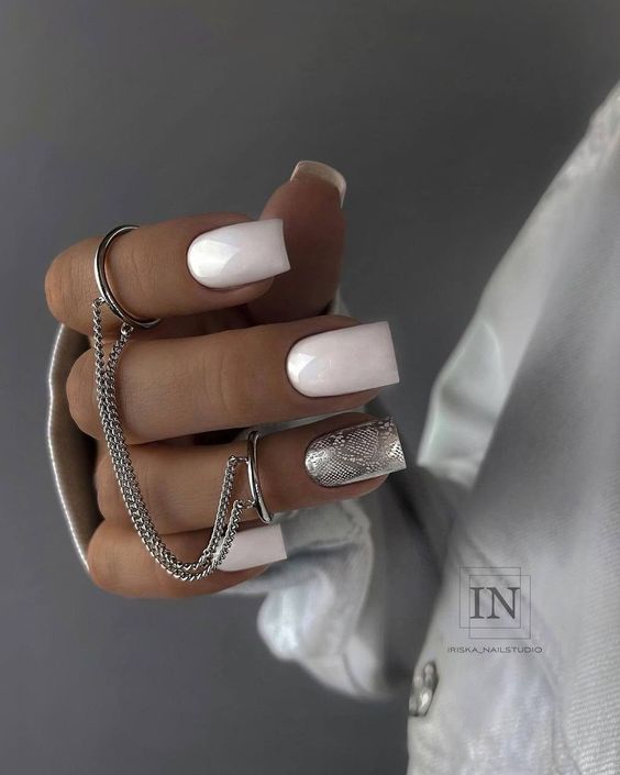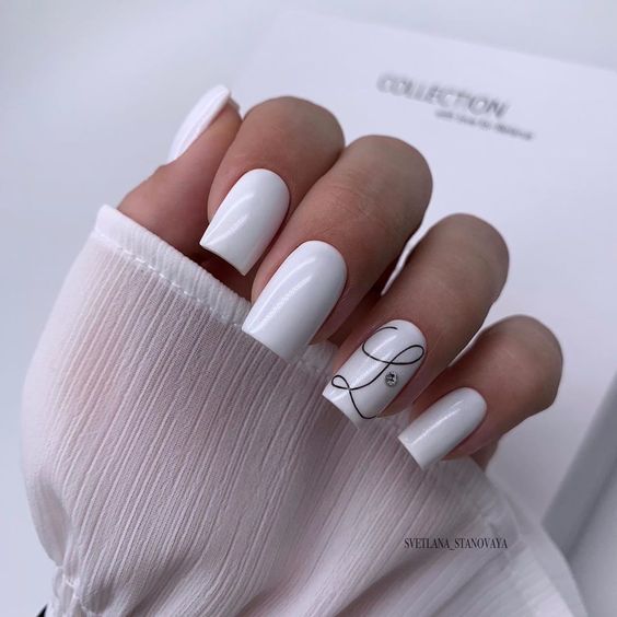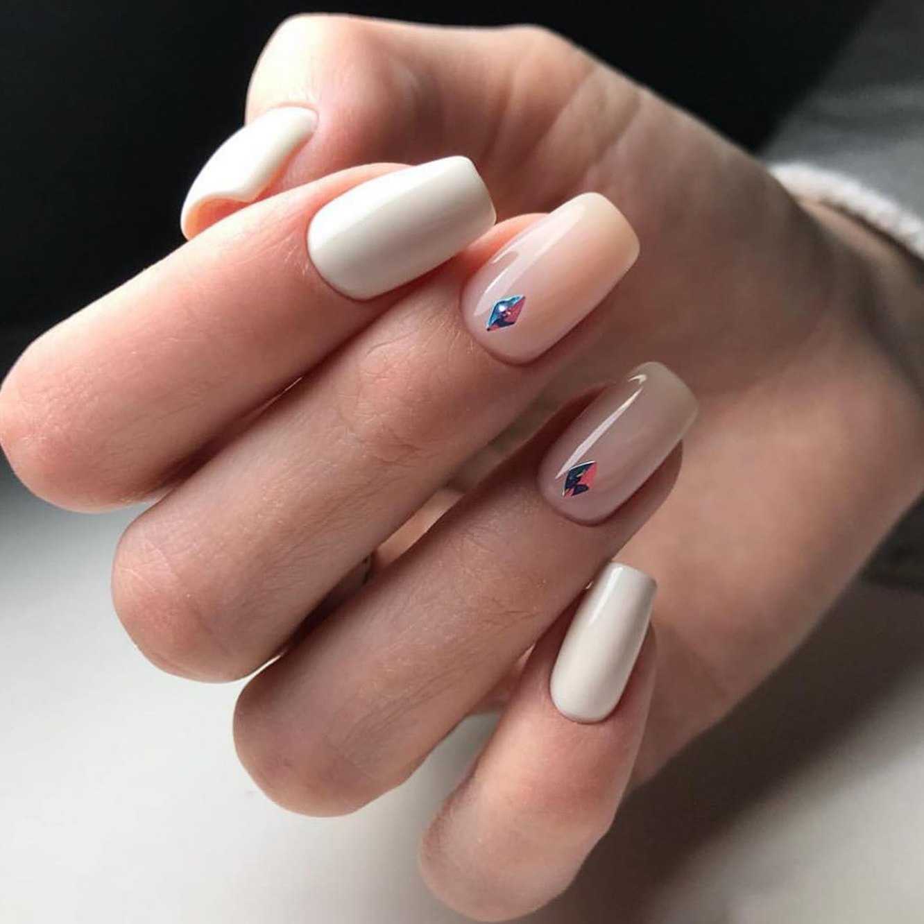 Белый оттенок отлично подходит форме мягкий квадрат. Его можно сделать в однотонном варианте или добавить несколько красивых акцентов, контрастных или блестящих.