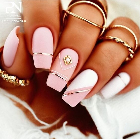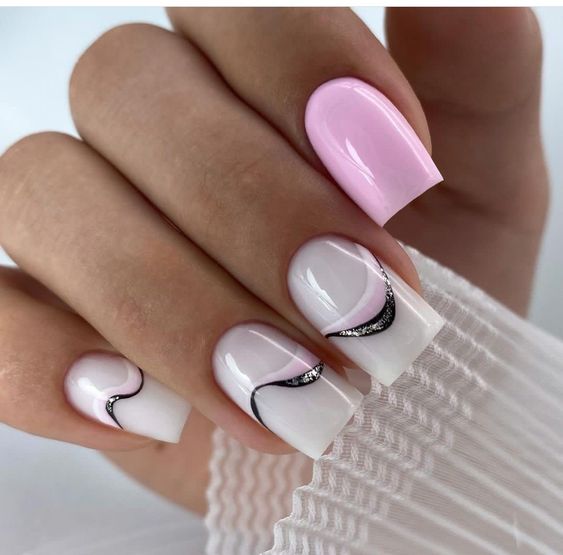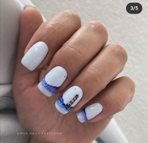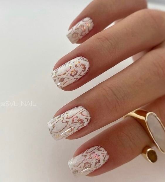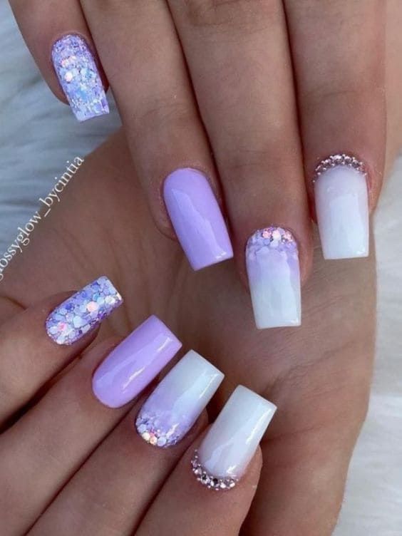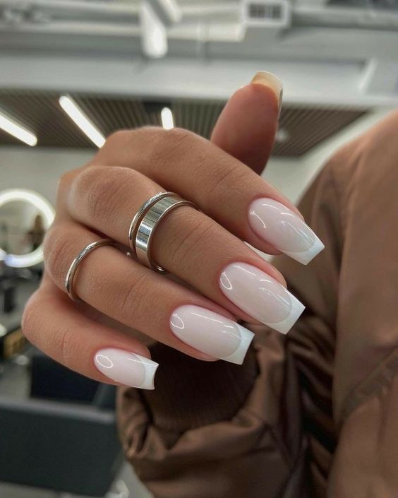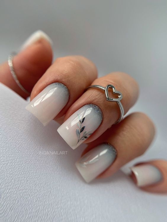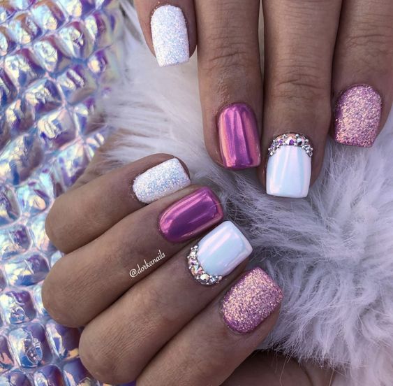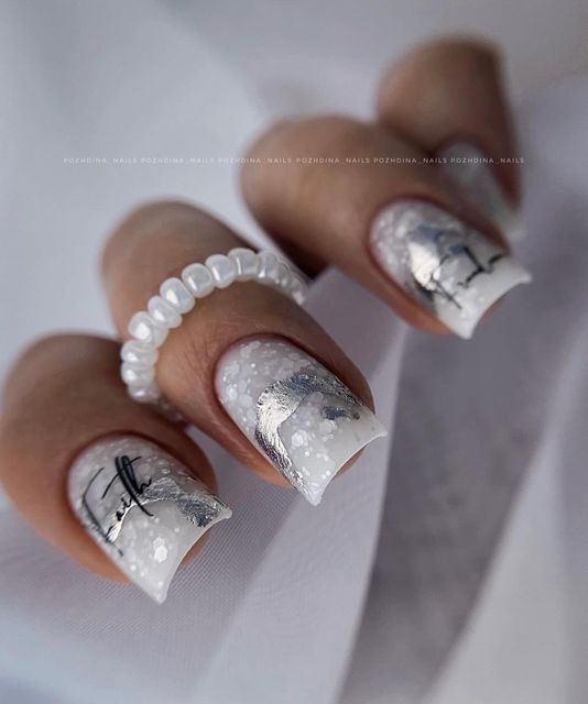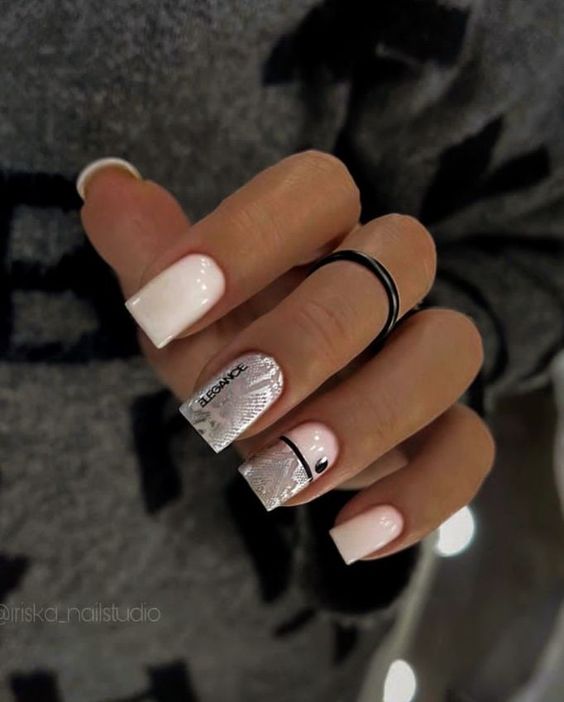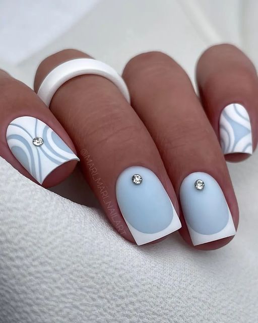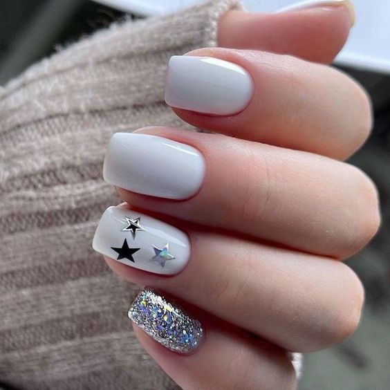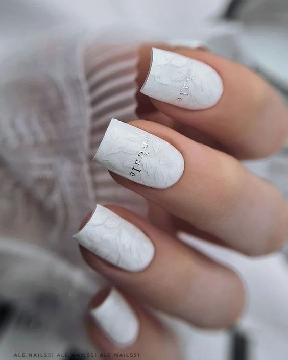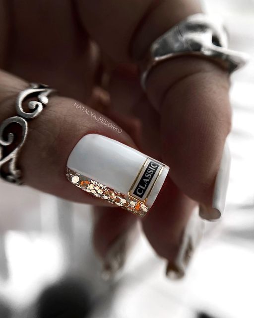 Белый оттенок отлично подходит форме мягкий квадрат. Его можно сделать в однотонном варианте или добавить несколько красивых акцентов, контрастных или блестящих.