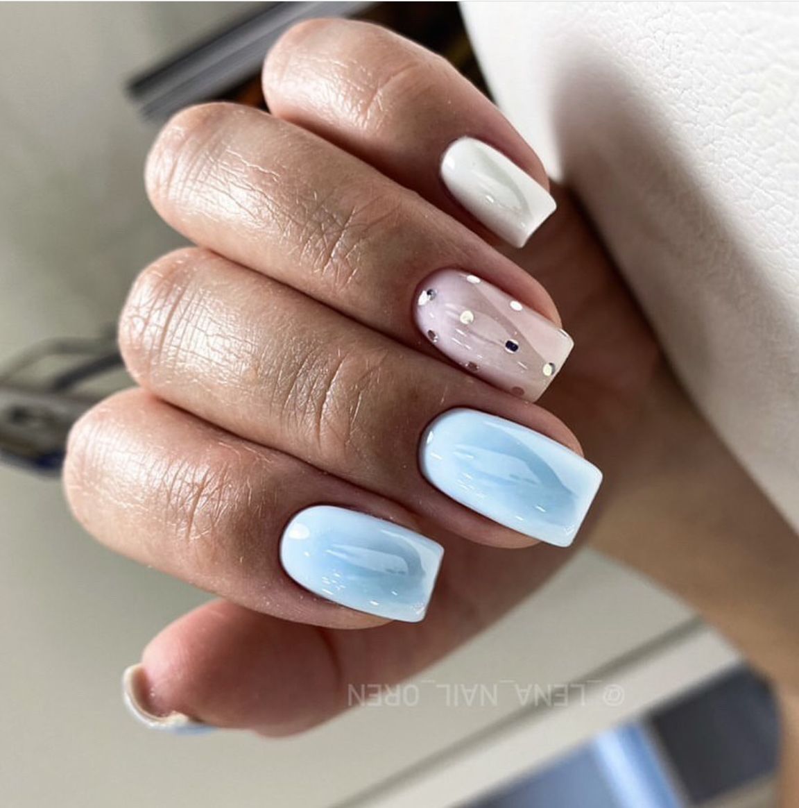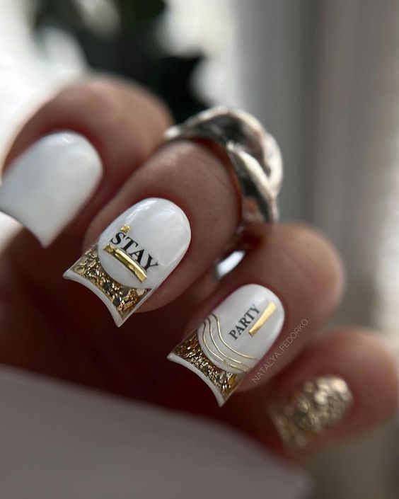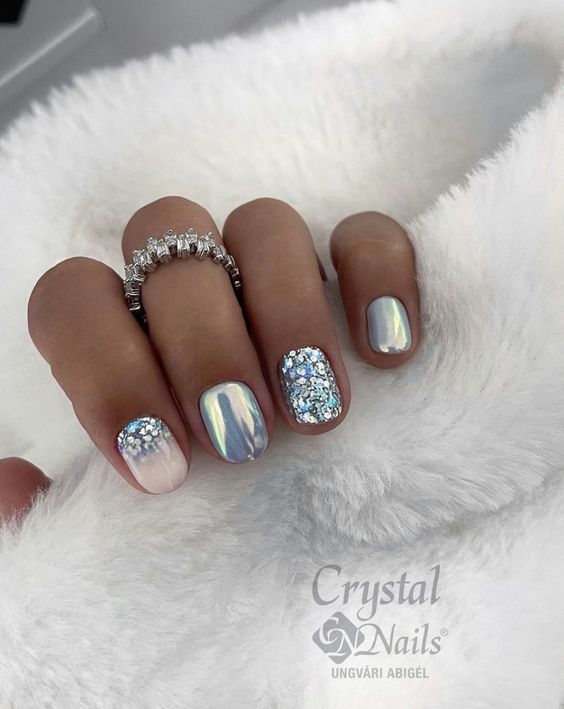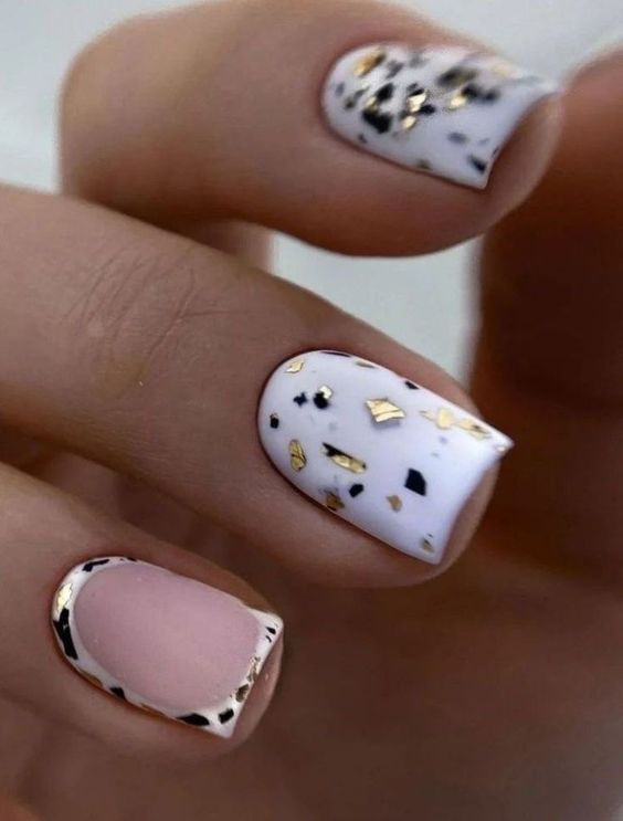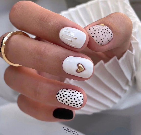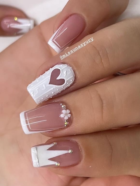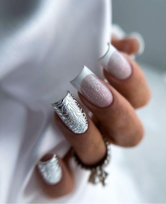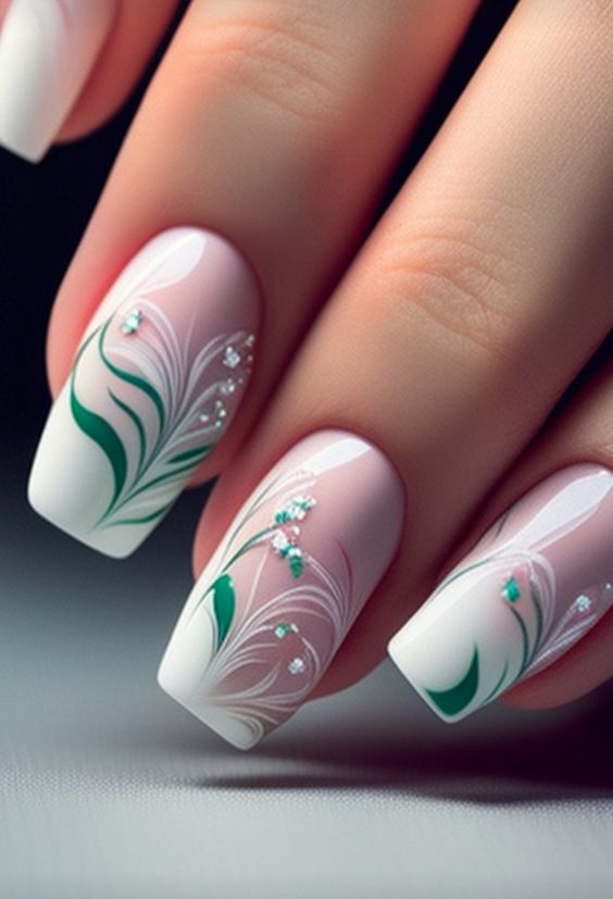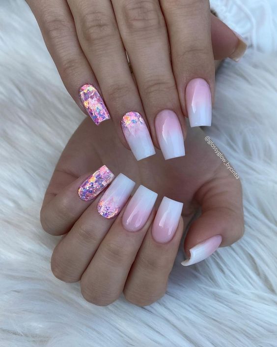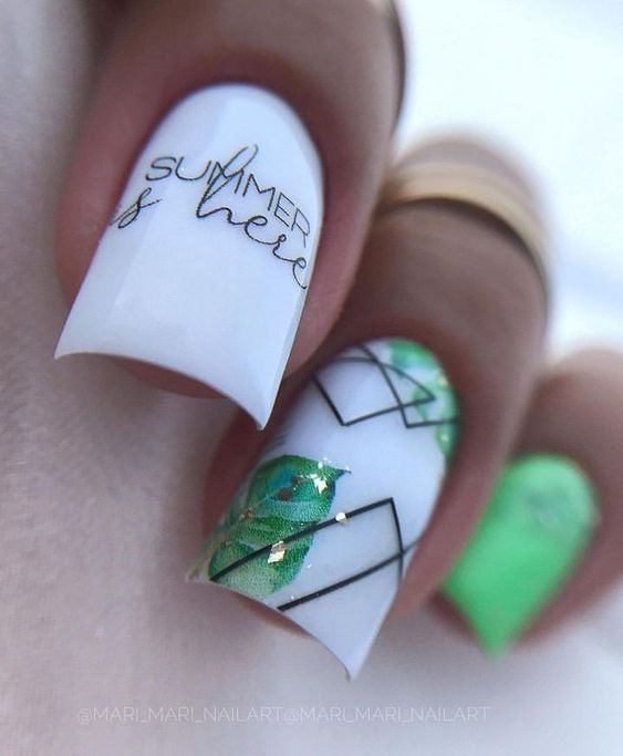 Белый оттенок отлично подходит форме мягкий квадрат. Его можно сделать в однотонном варианте или добавить несколько красивых акцентов, контрастных или блестящих.