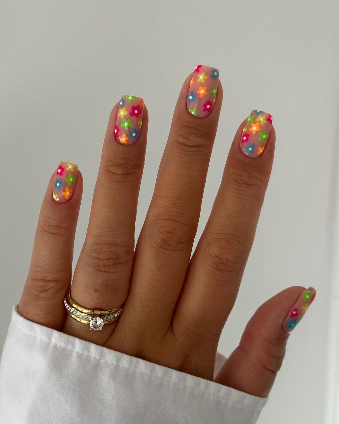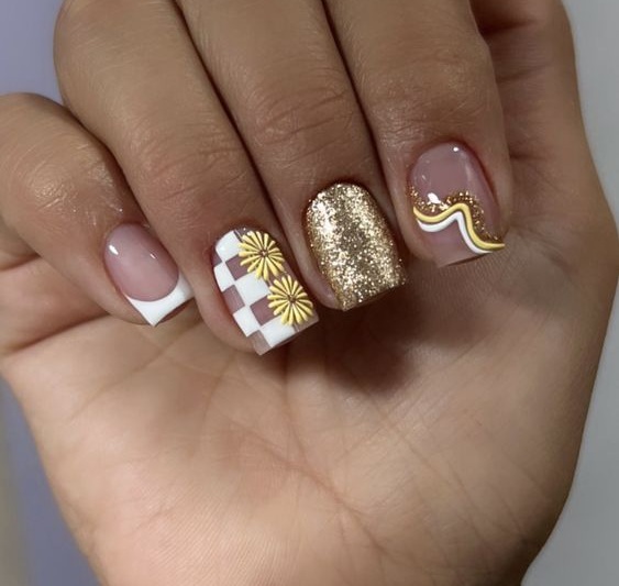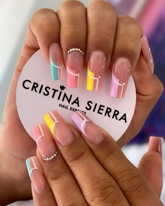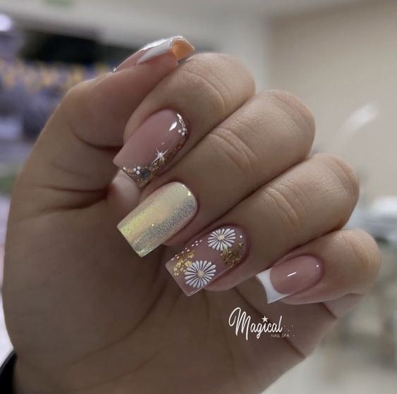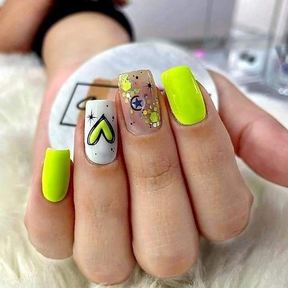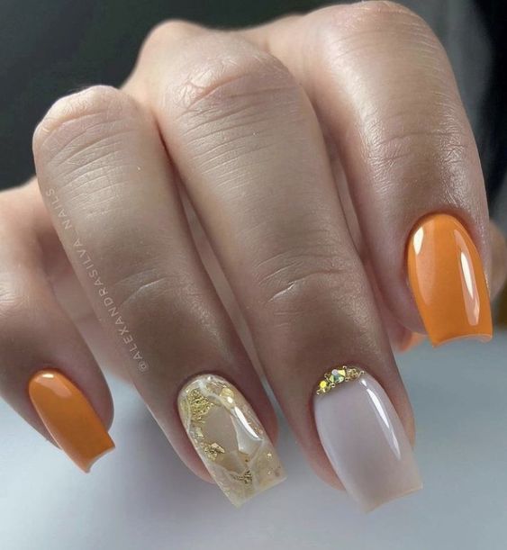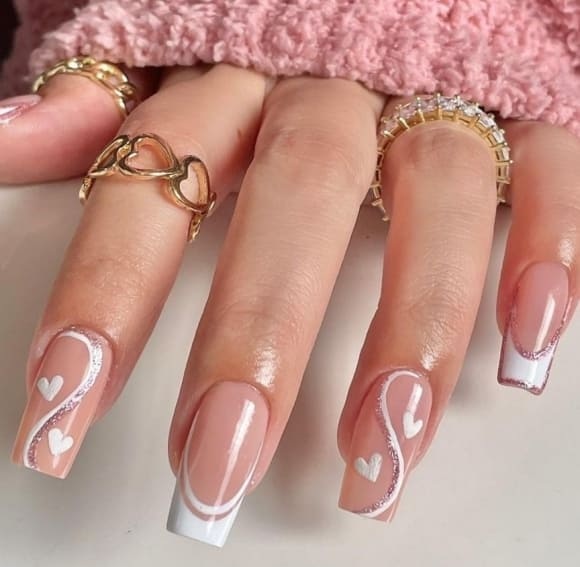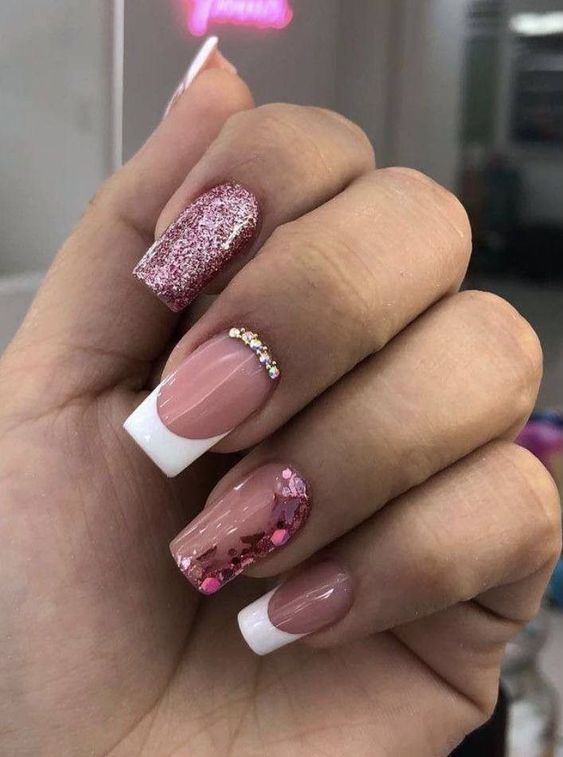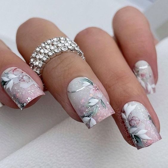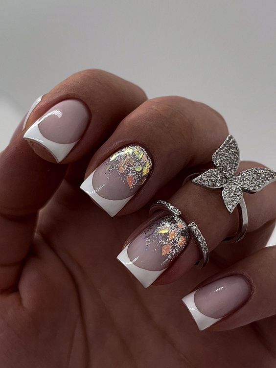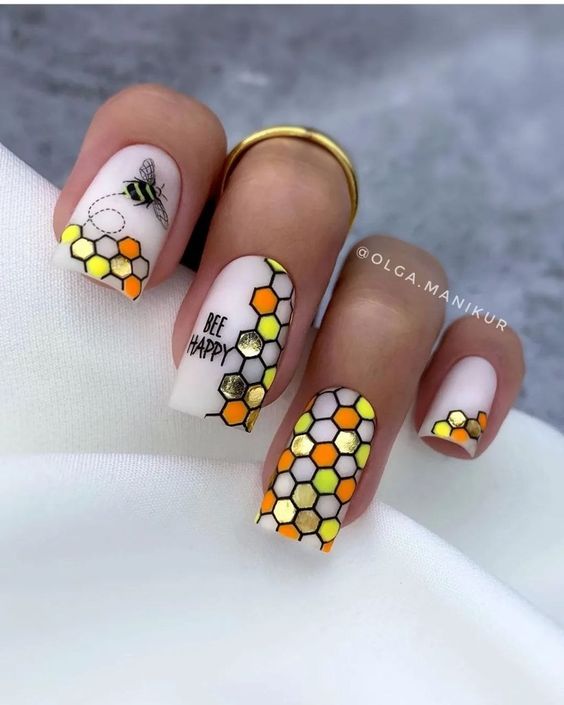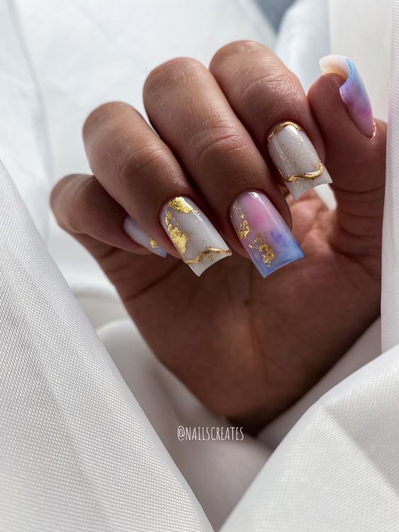 Белый оттенок отлично подходит форме мягкий квадрат. Его можно сделать в однотонном варианте или добавить несколько красивых акцентов, контрастных или блестящих.